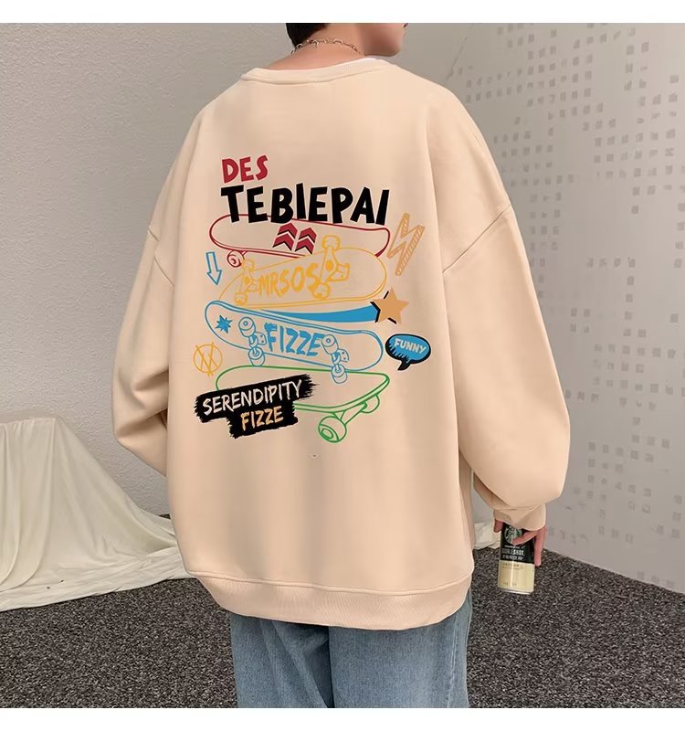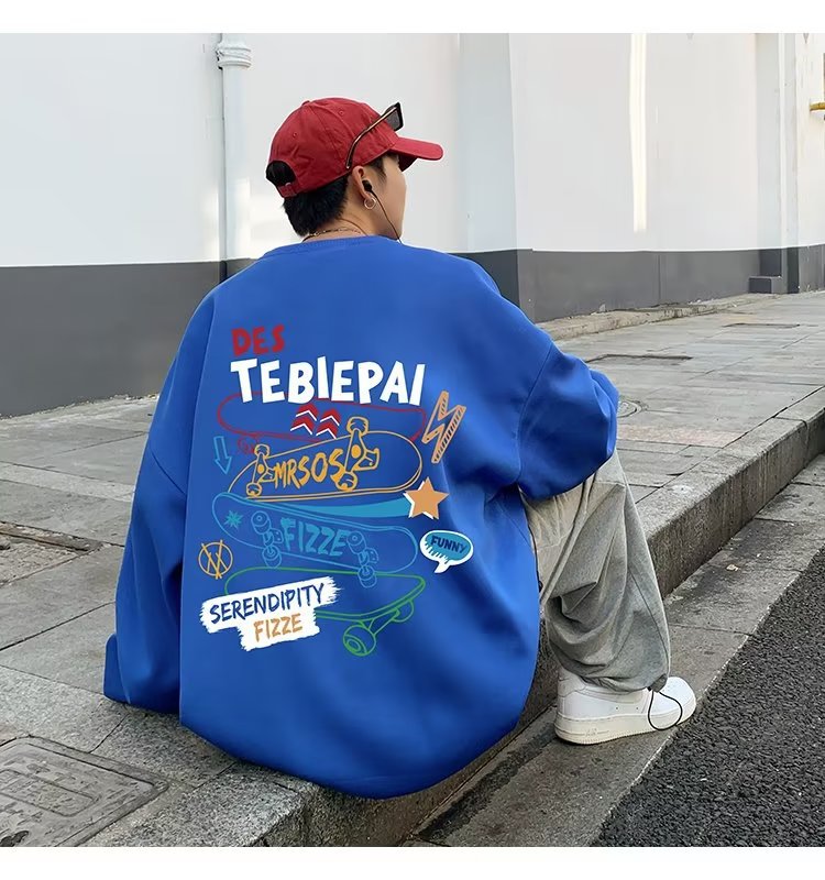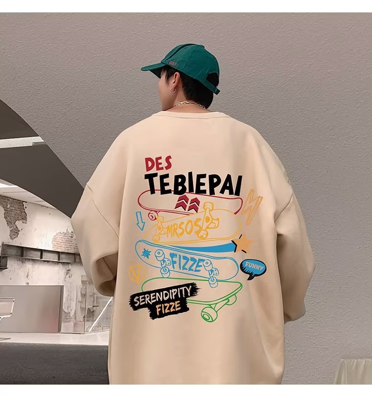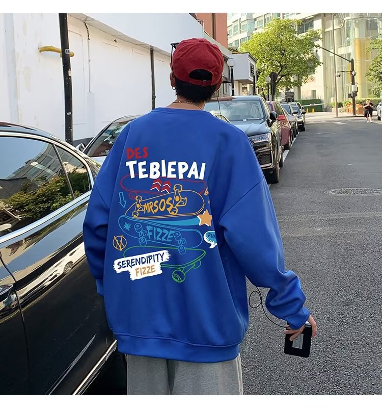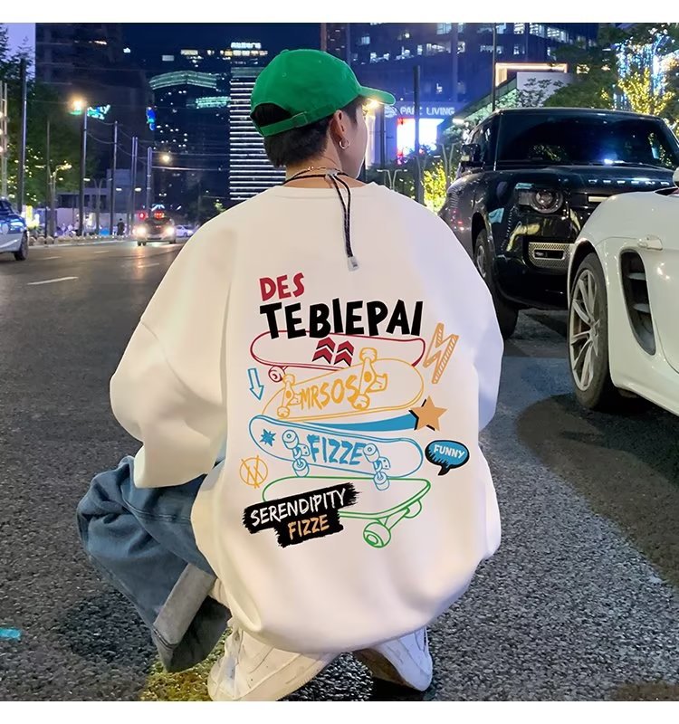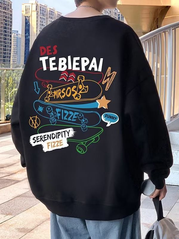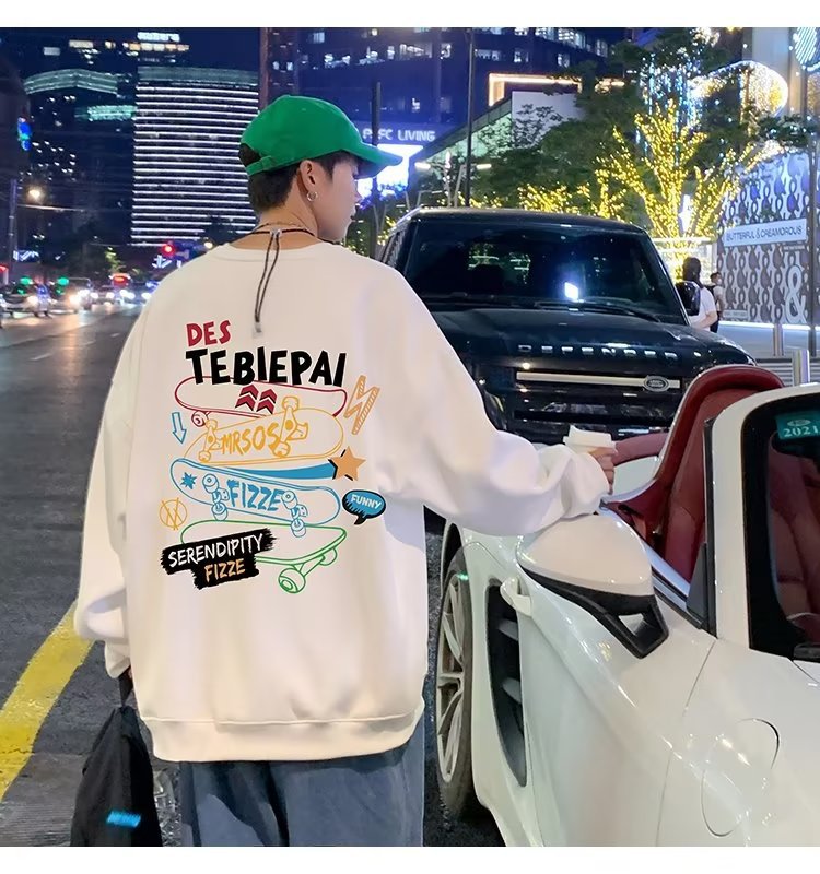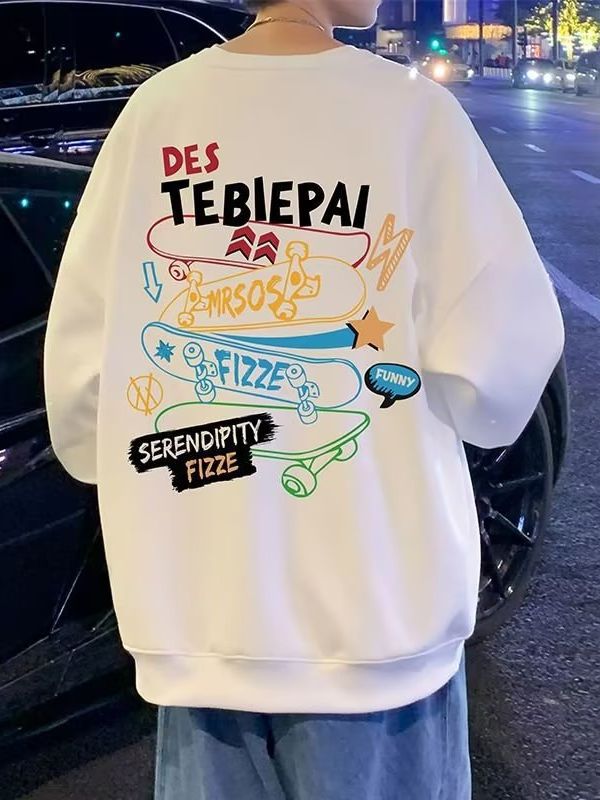 스웨터 남자의 봄과 가을 얇은 스케이트 보드 인쇄 후드리스 재킷 트렌디 브랜드 느슨한 라운드 넥 베이스 셔츠 풀오버 탑 의류