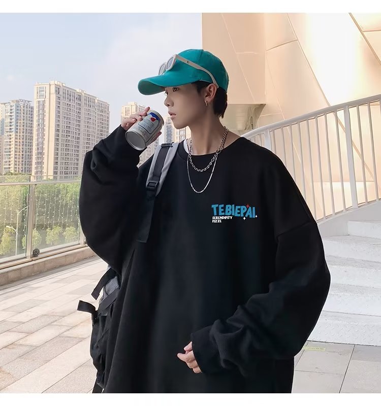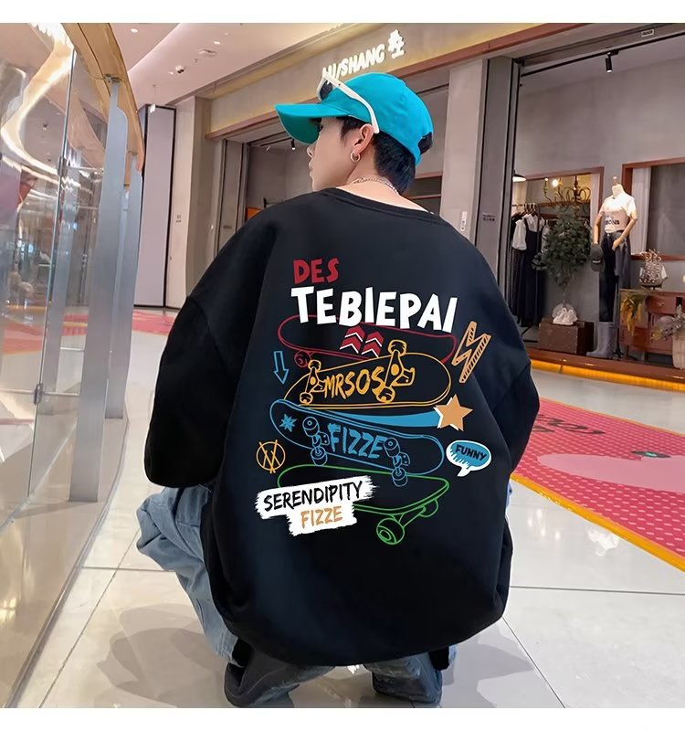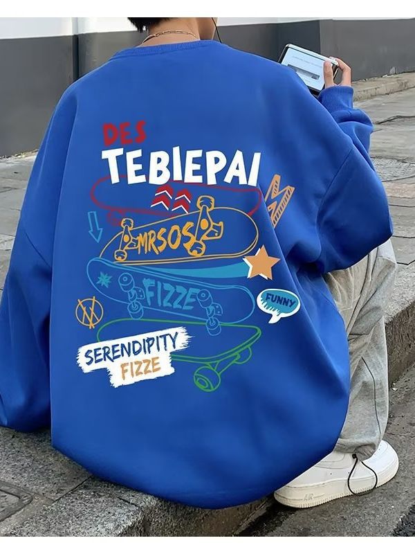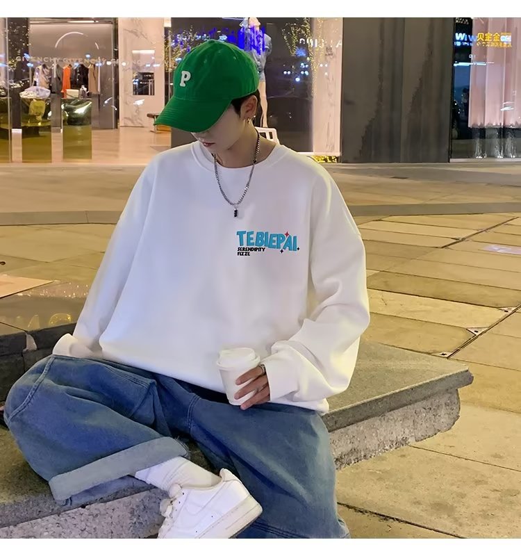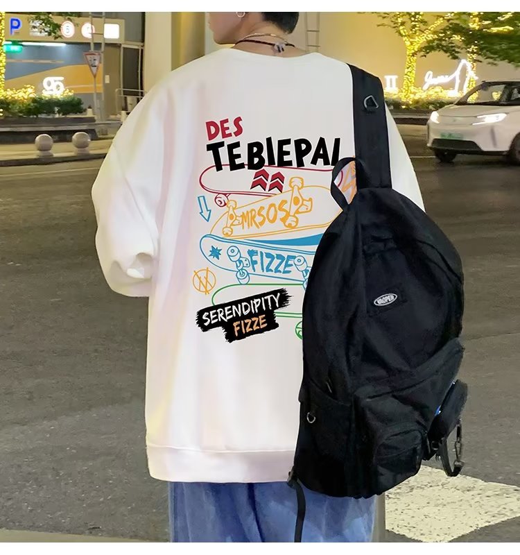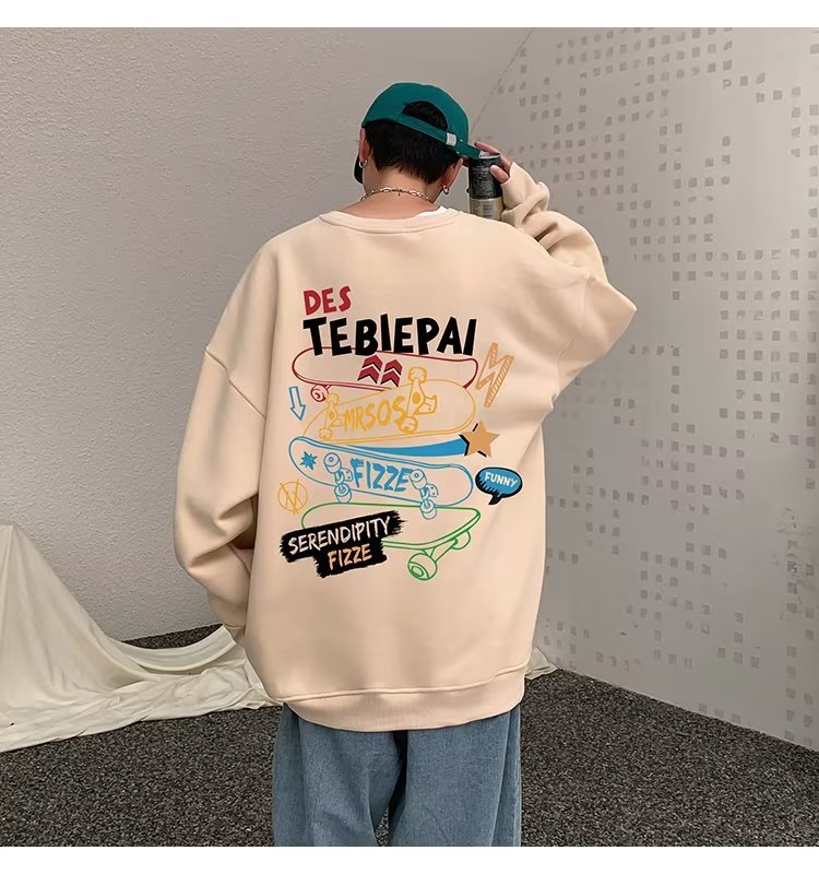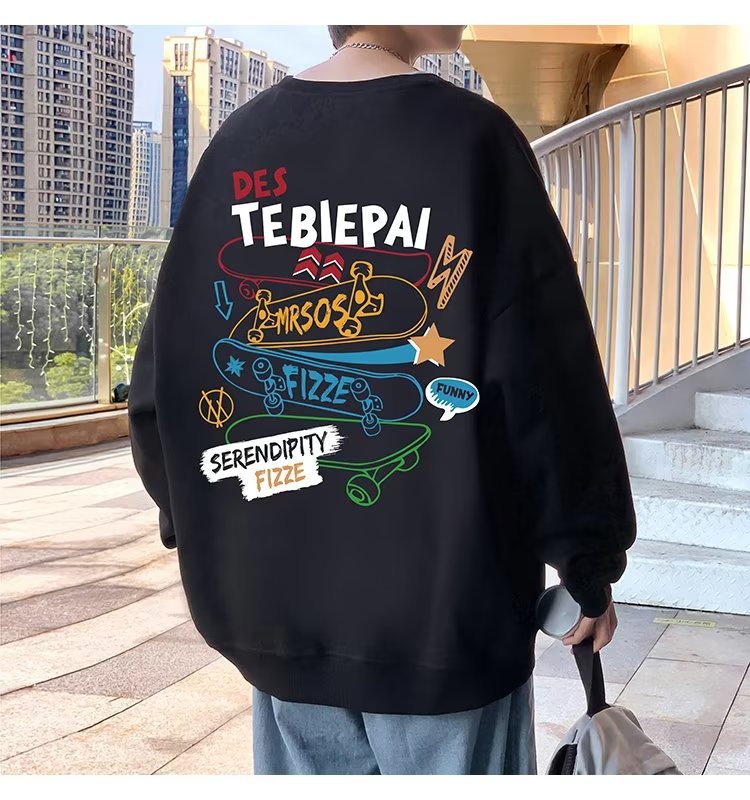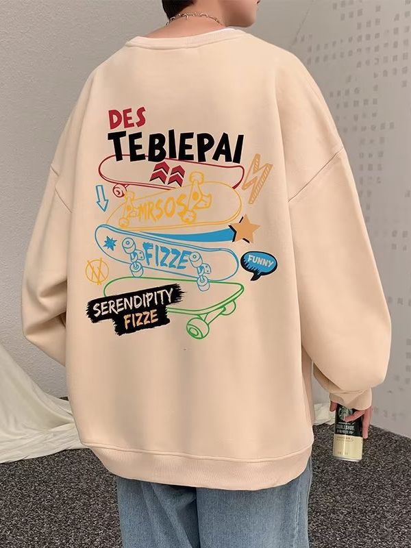 스웨터 남자의 봄과 가을 얇은 스케이트 보드 인쇄 후드리스 재킷 트렌디 브랜드 느슨한 라운드 넥 베이스 셔츠 풀오버 탑 의류