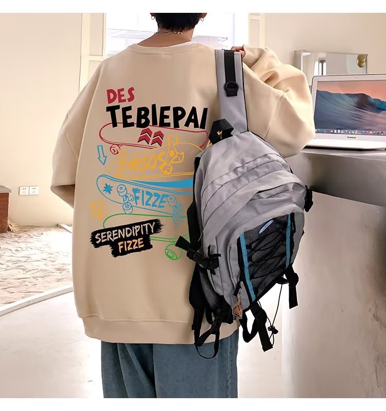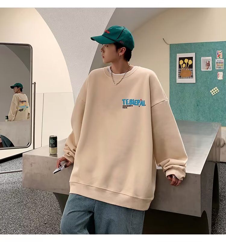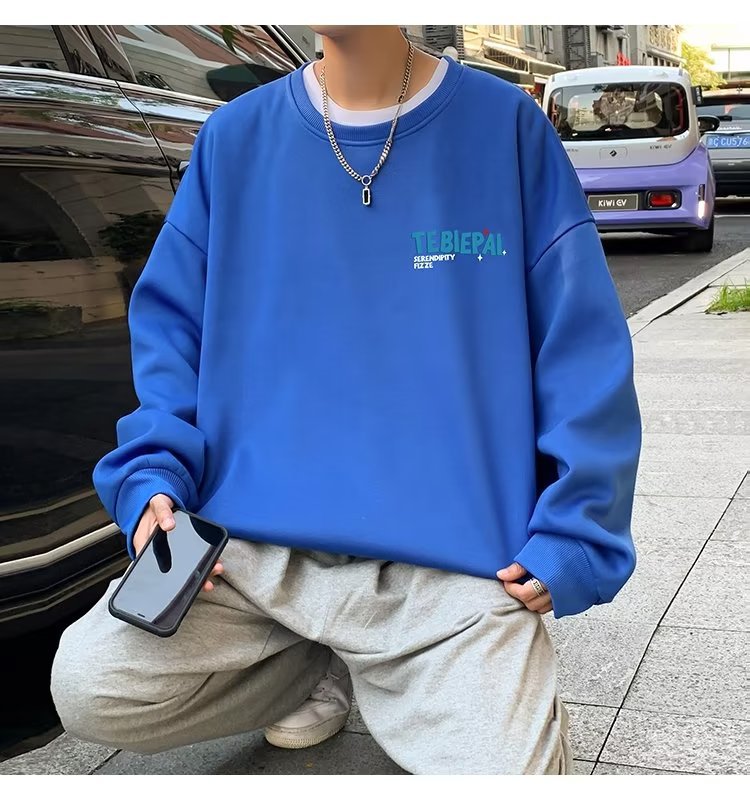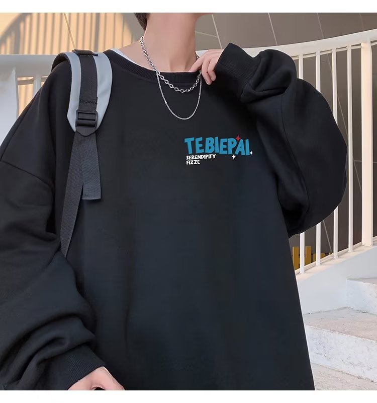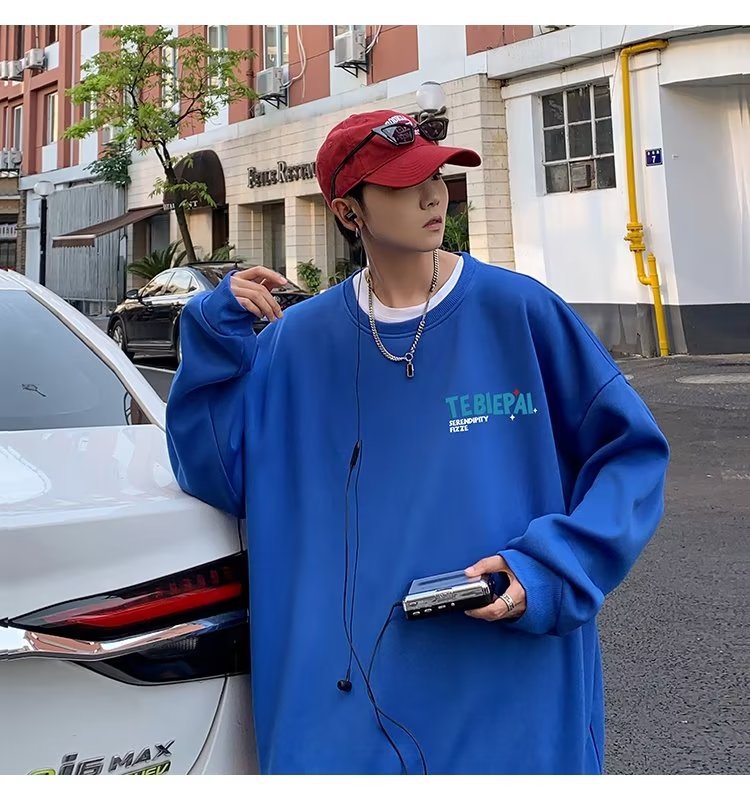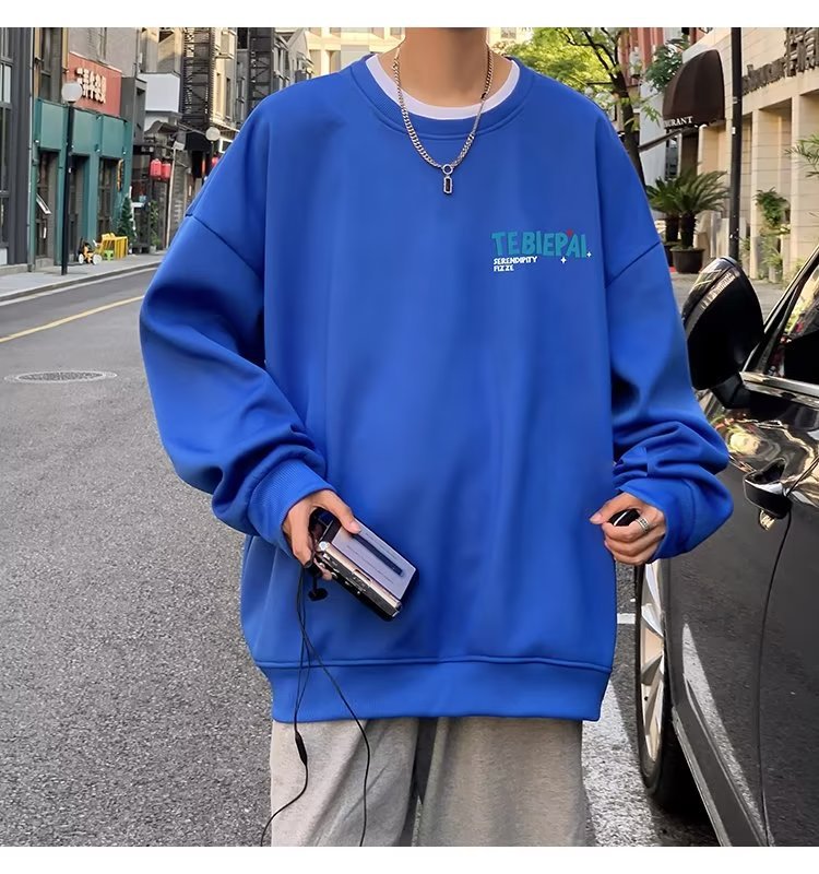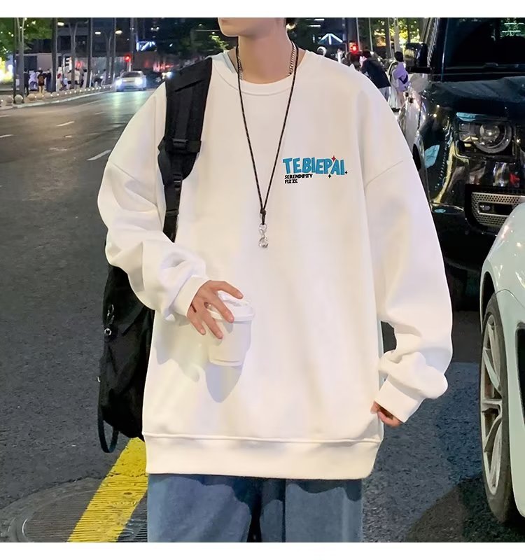 스웨터 남자의 봄과 가을 얇은 스케이트 보드 인쇄 후드리스 재킷 트렌디 브랜드 느슨한 라운드 넥 베이스 셔츠 풀오버 탑 의류