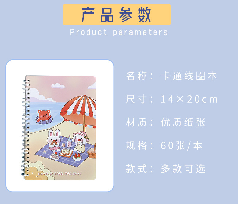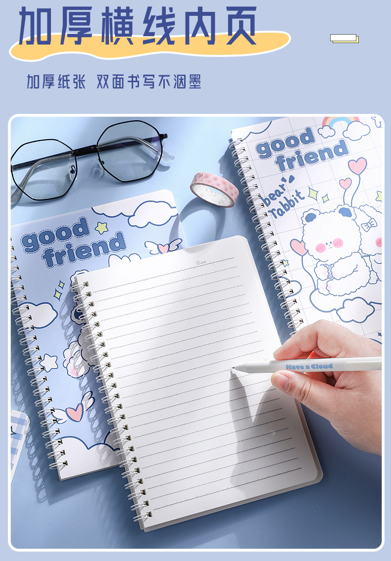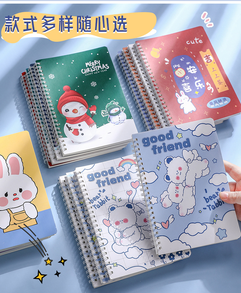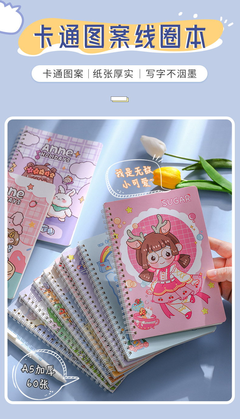 귀여운 만화 A5 코일 북 두꺼운 수평선 만화 학생 수첩 사무실 문구 메모장 도매