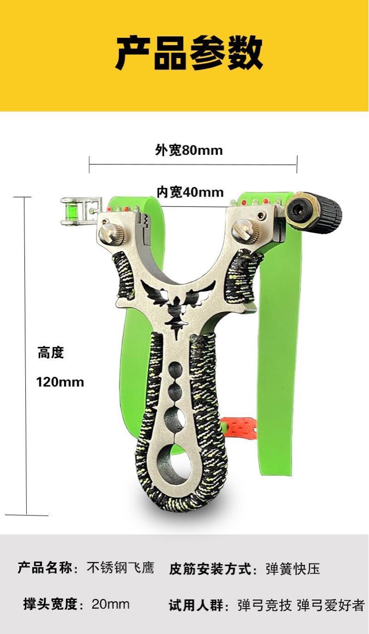 새로운 Feiyan 스테인리스 금속 야외 성인 전투 daweili 고정밀 레이저 조준 평면 고무 밴드 Slingshot