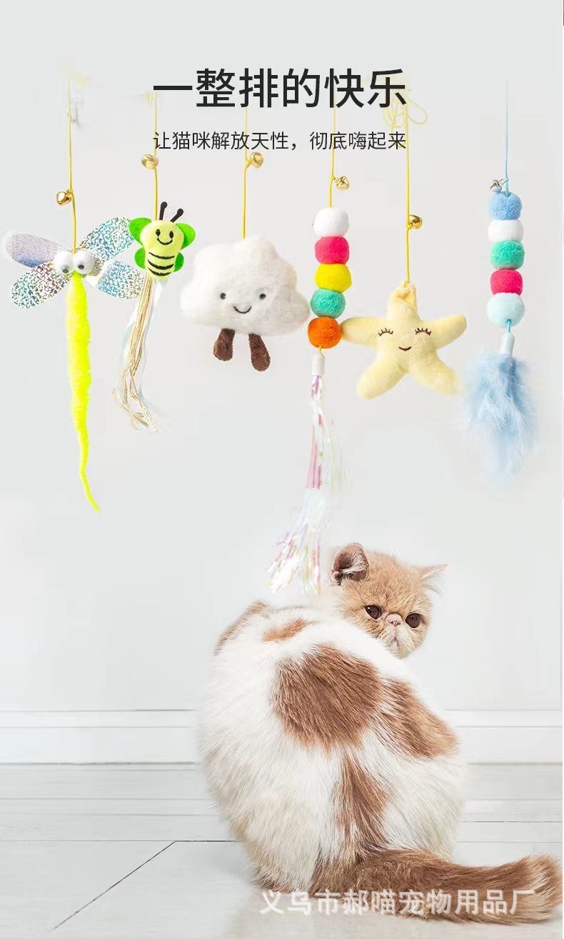 고양이 장난감, 도어걸이형 그네형 고양이 장난감, 흔적없는 셀프 놀이용 탄성줄, 깃털과 종이 달린 애완동물 장난감