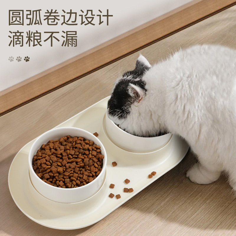 고양이 그릇 고양이 먹이 분지 더블 그릇 세라믹 개 그릇 보호 경추 고양이 음식 분지 마시는 그릇 개 분지 전복 방지 애완 동물 용품
