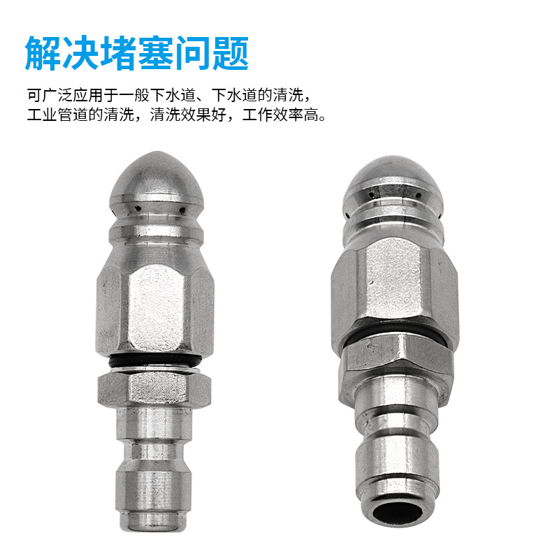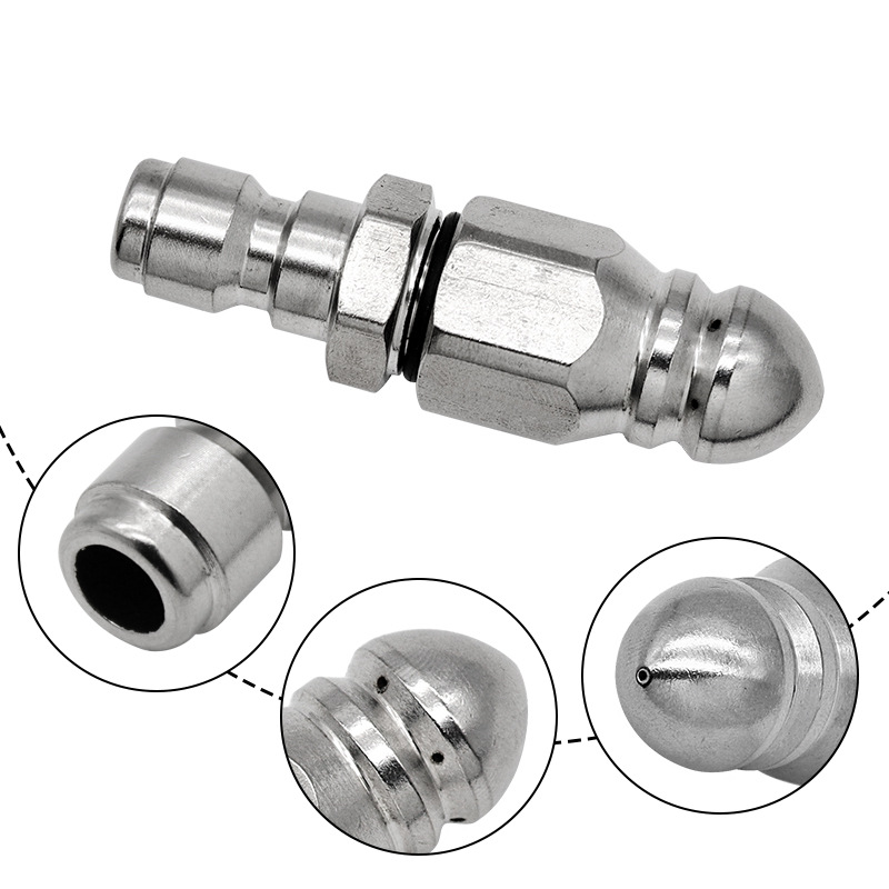 스테인레스 스틸 고압 노즐 1/4 앞뒤 6 개의 물 쥐 머리 하수구 청소 파이프라인 준설 노즐