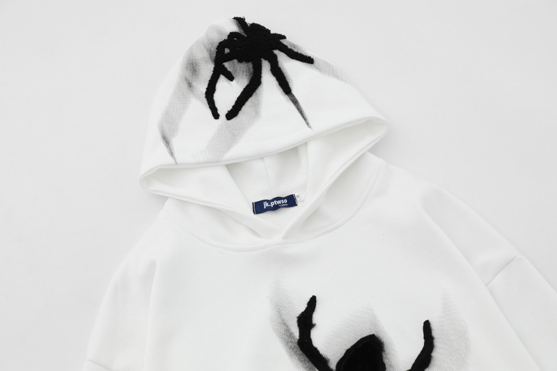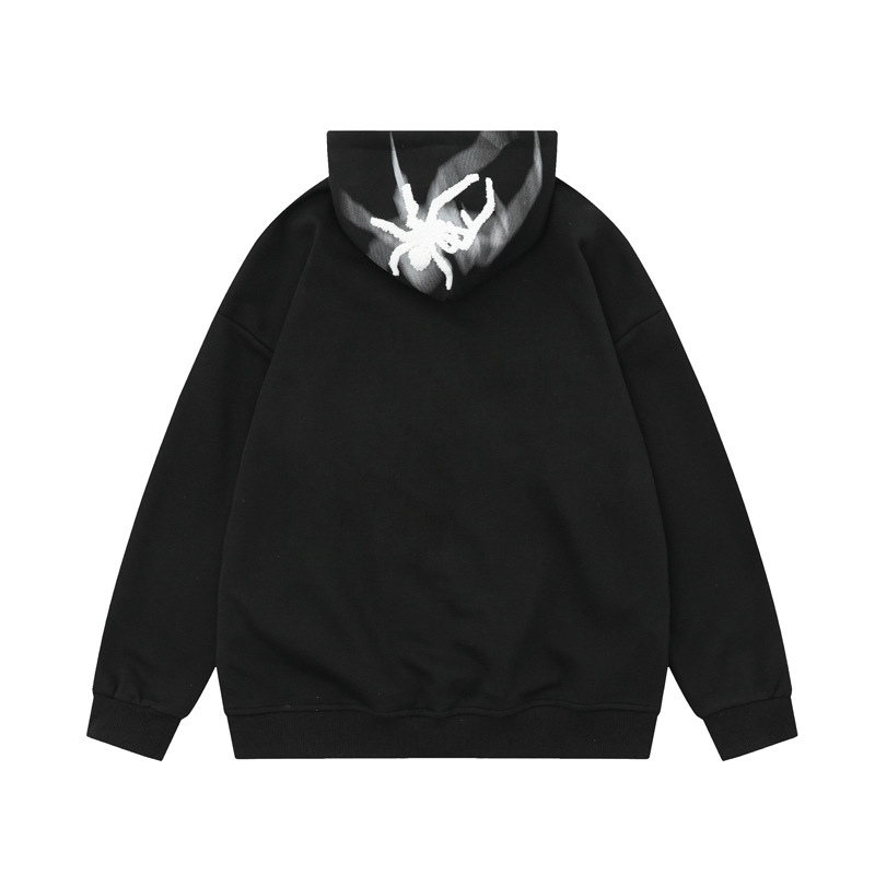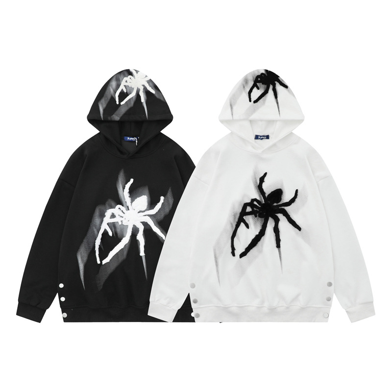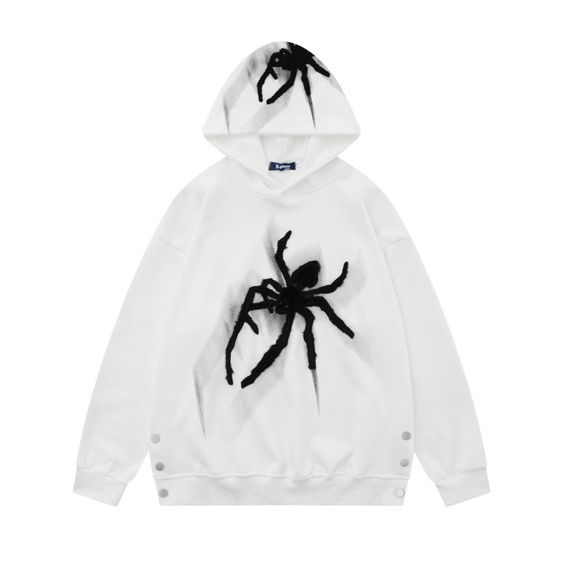 하이 스트리트 패션 브랜드 디자인 잠금 스파이더 후드 스웨터 남성 봄과 가을 패션 Hem 버튼 분할 힙합 후드