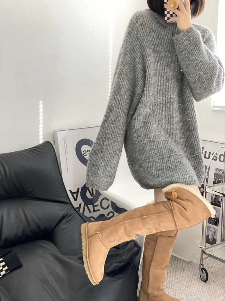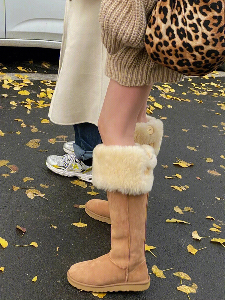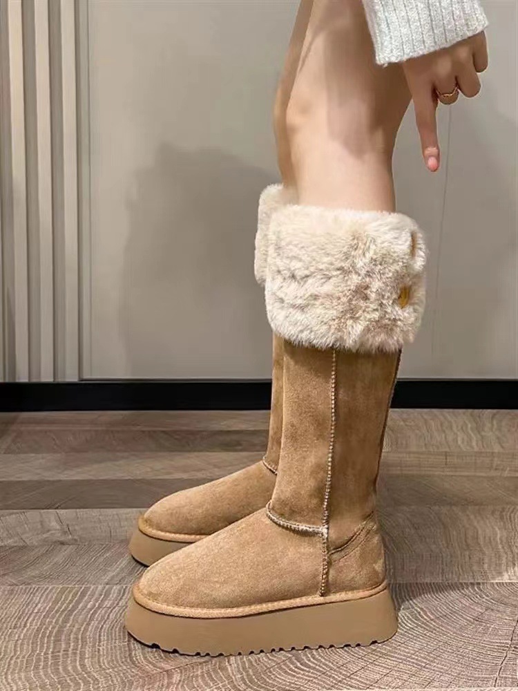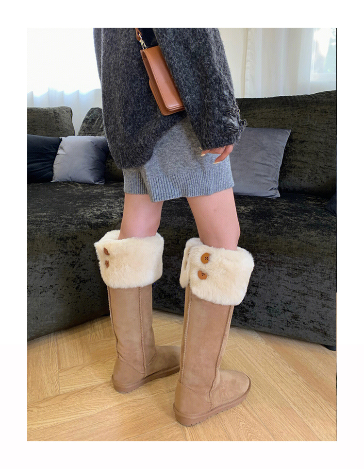 2023 가을과 겨울 두꺼운 버튼을 기모 튜브 따뜻한 스노우 부츠의 새로운 한국어 버전 조커 플러시 여성 신발