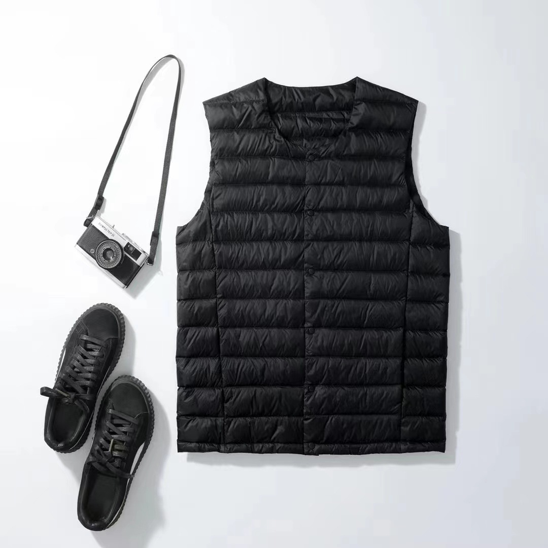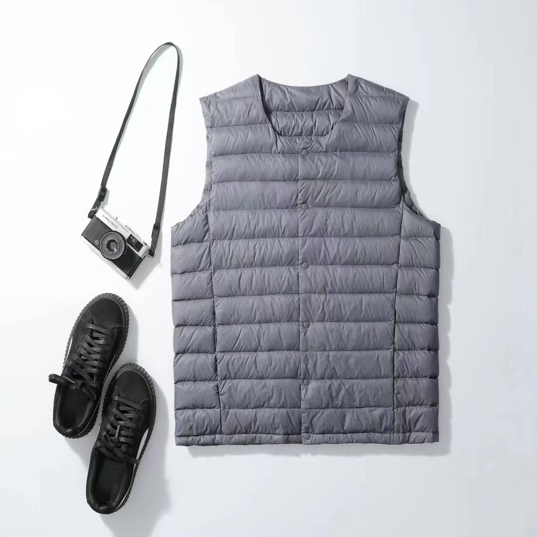 다운 조끼 남자의 칼라없는 내부 탱크 착용 가을과 겨울 경량 다운 재킷 조끼 청소년 플러스 사이즈 조끼 크루넥 V-넥