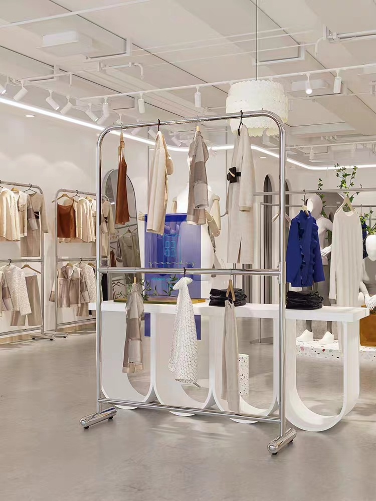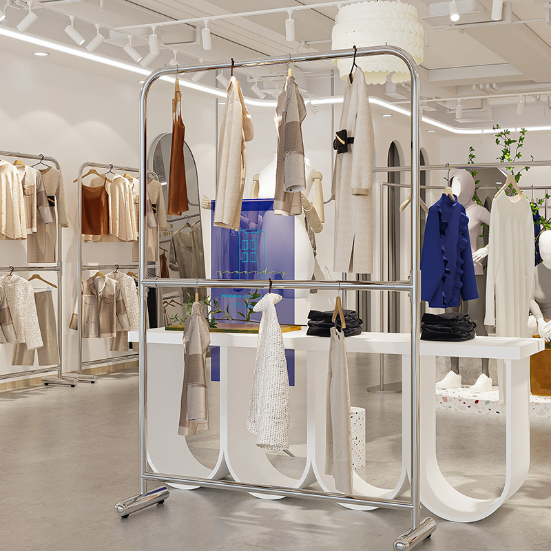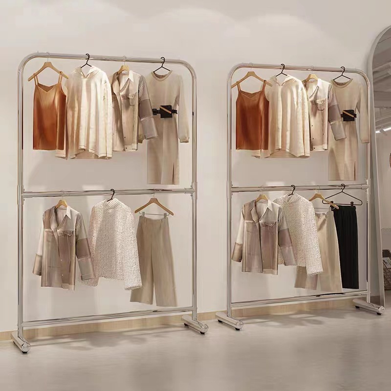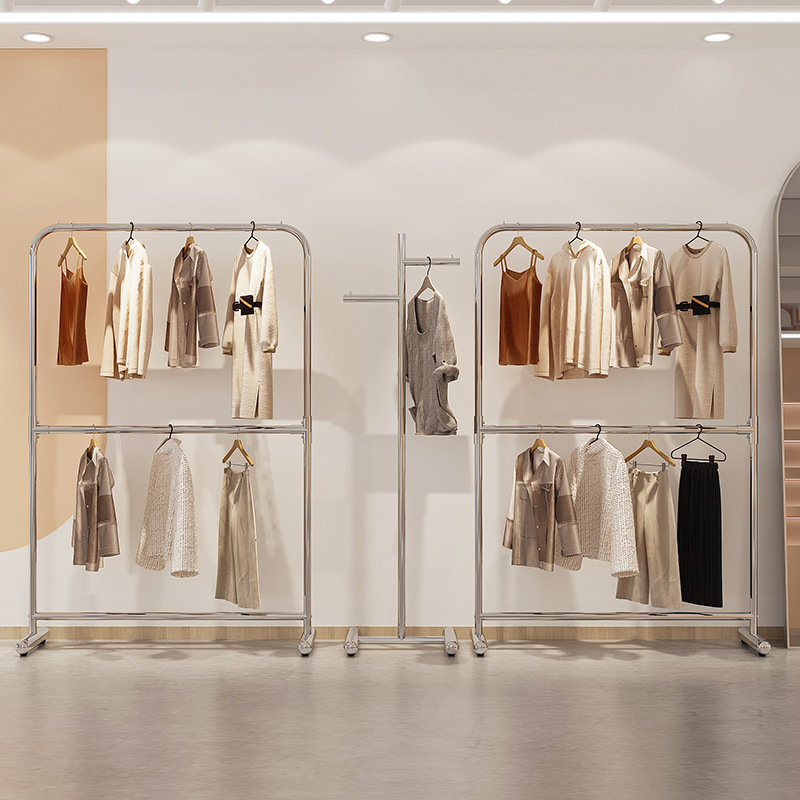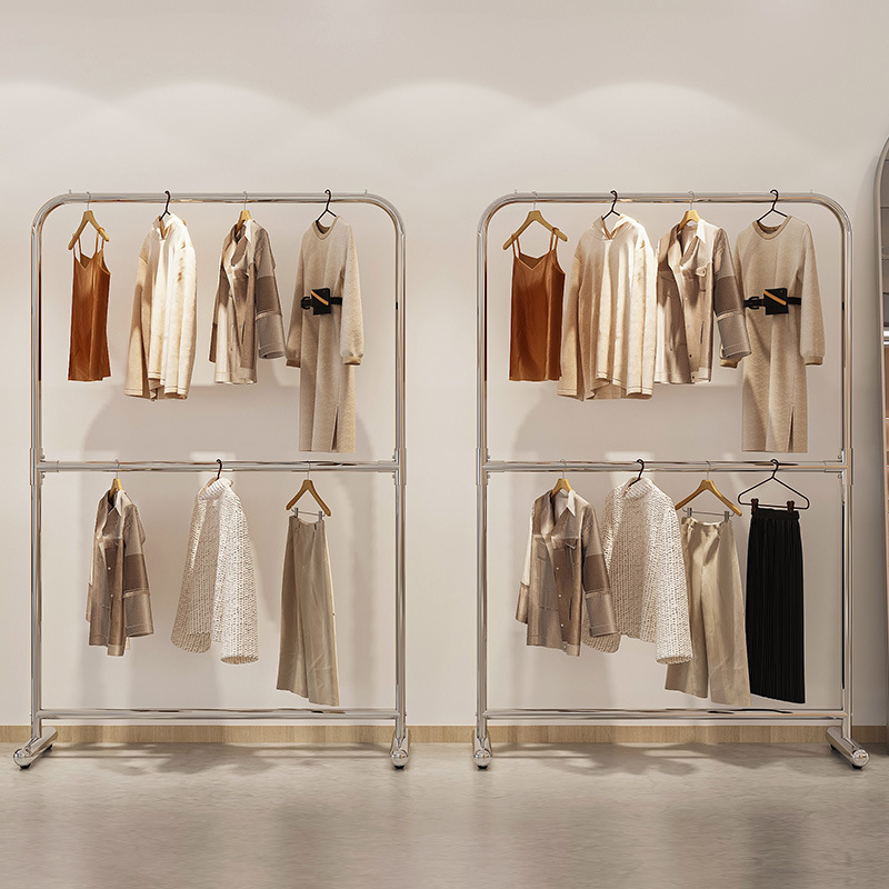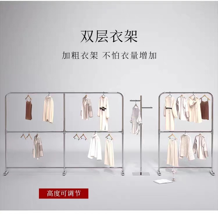 더블 레이어 옷걸이 의류 매장 디스플레이 랙 디스플레이 랙 바닥-바닥 나카지마 랙 남성 및 여성 의류 매장 스테인레스 스틸 옷걸이