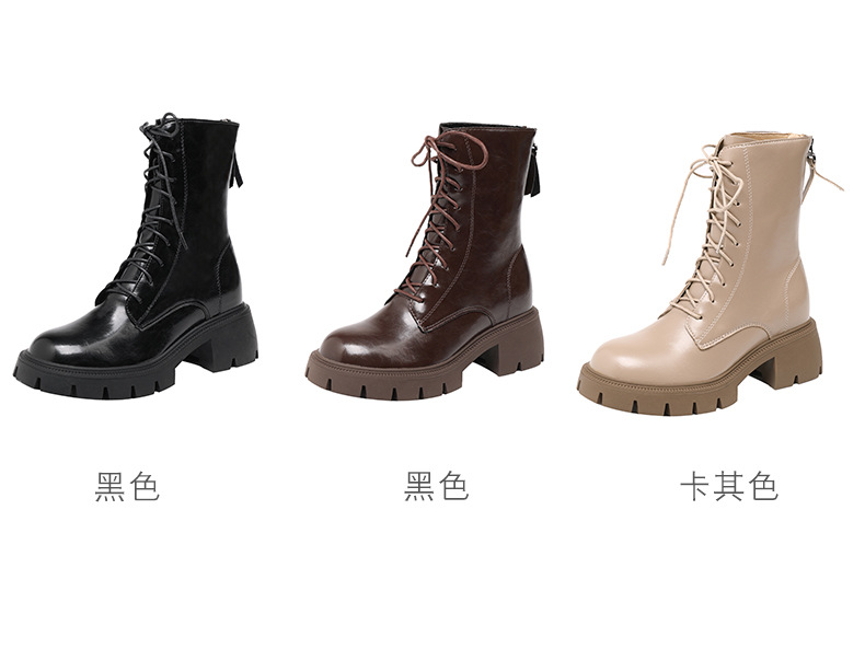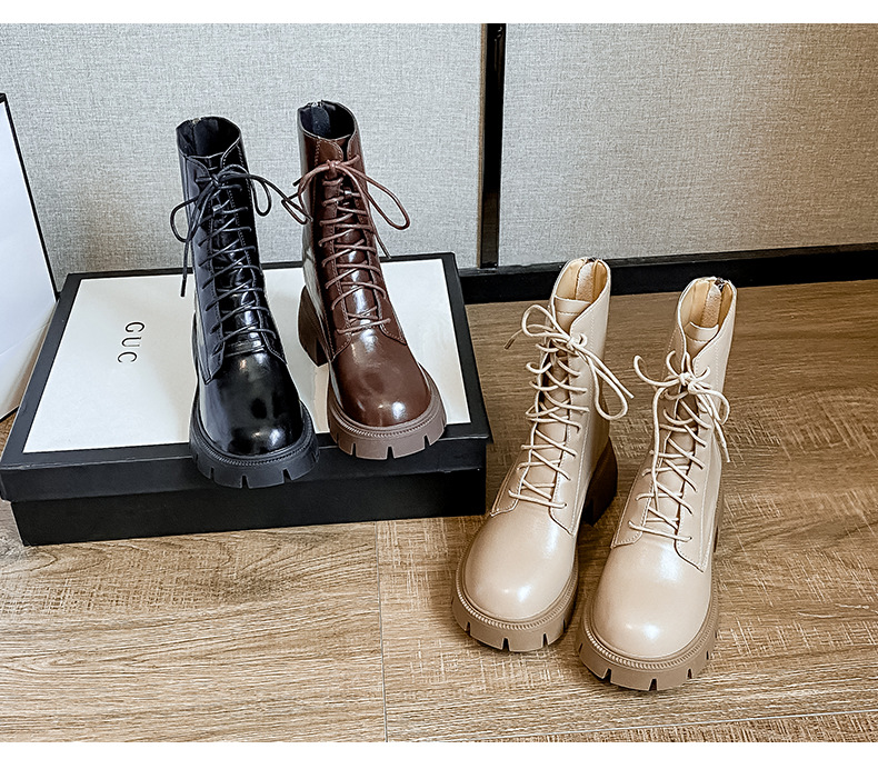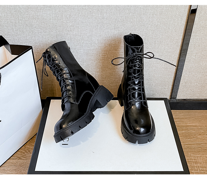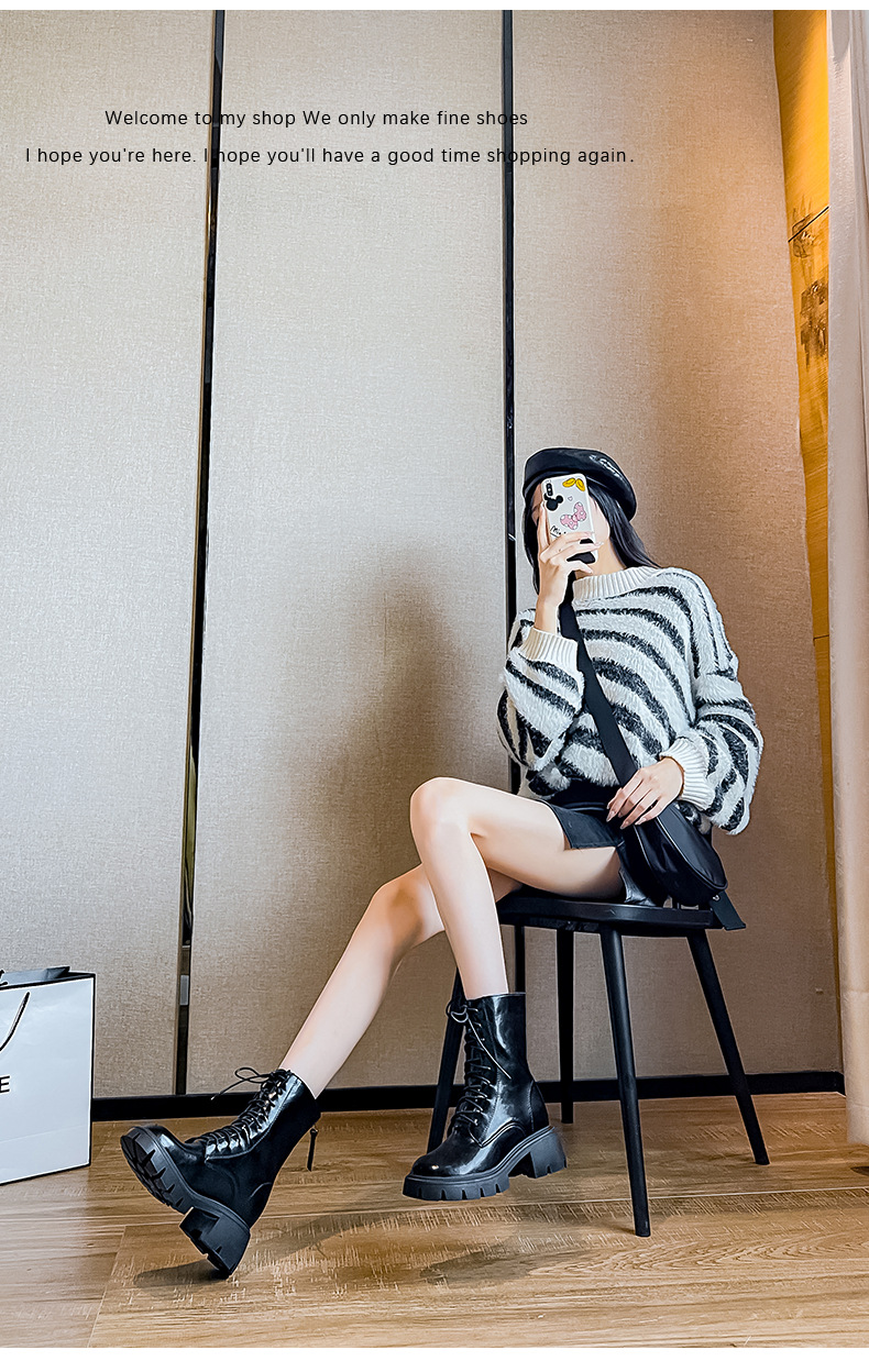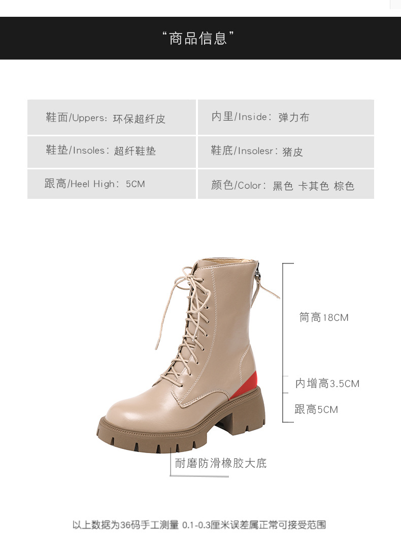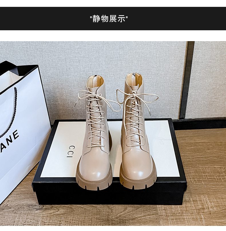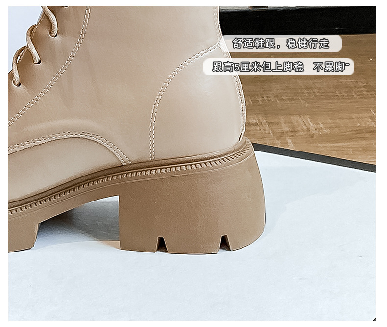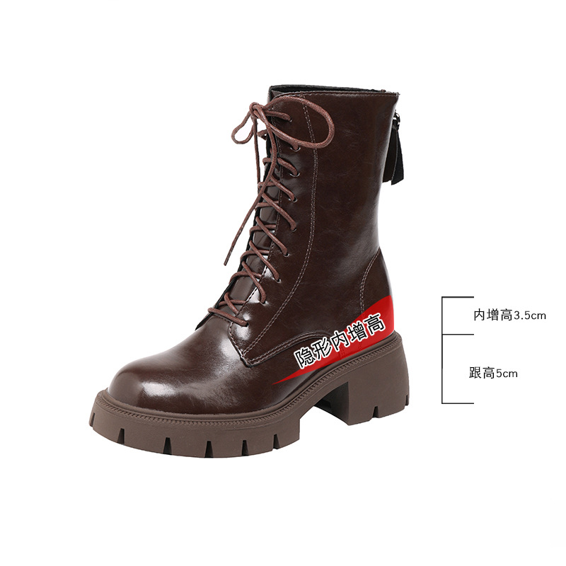 내부 키높이 마틴 부츠 여성용 2025 봄 영국풍 바이커 두꺼운 밑창 짧은 부츠 굵은 굽 신축성 있는 끈 부츠