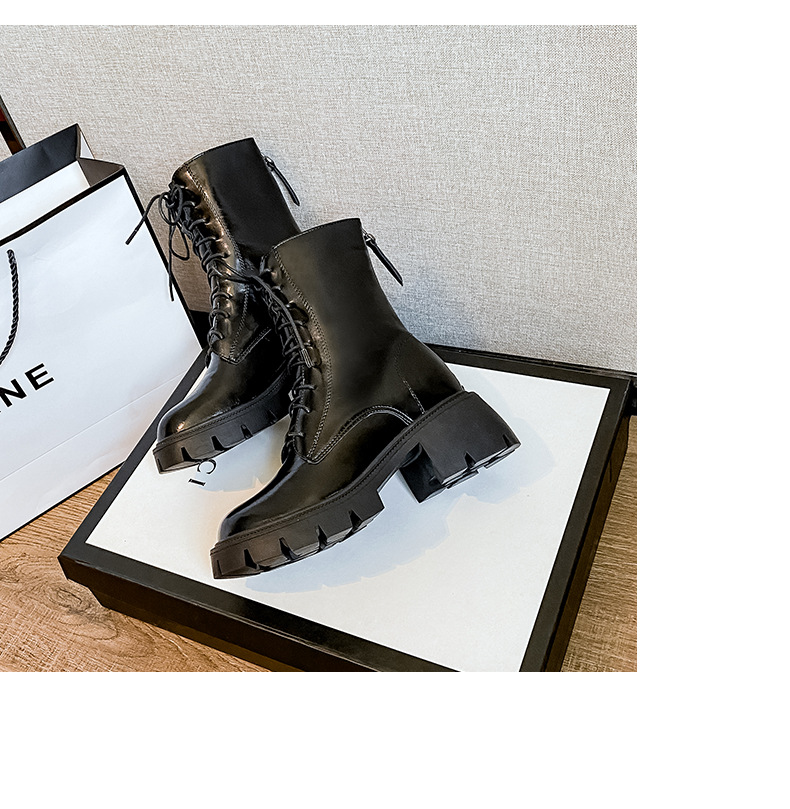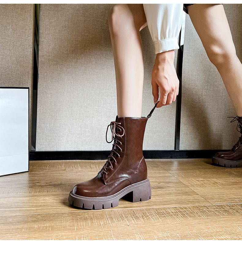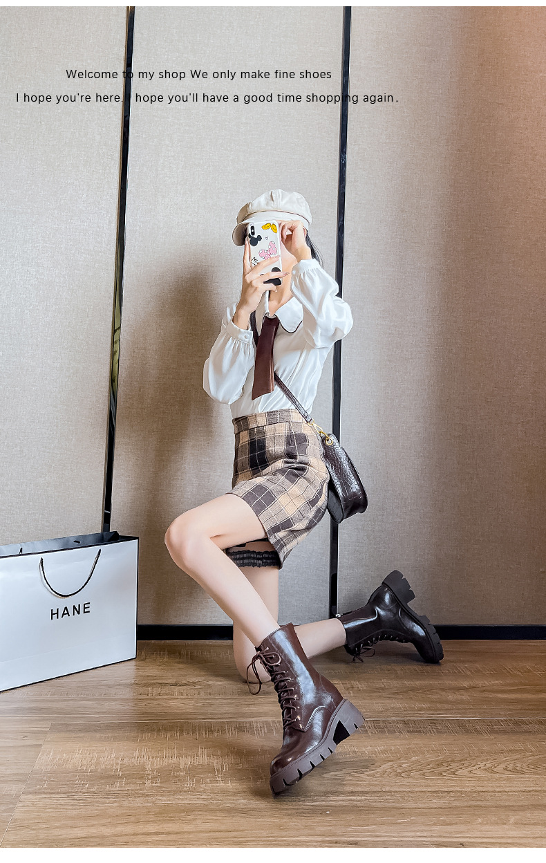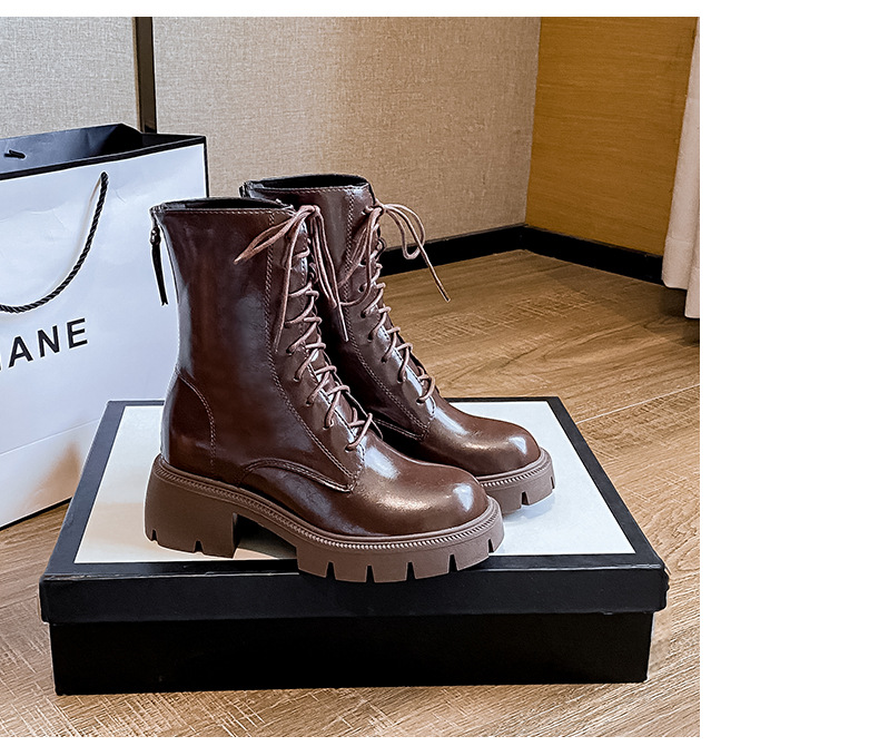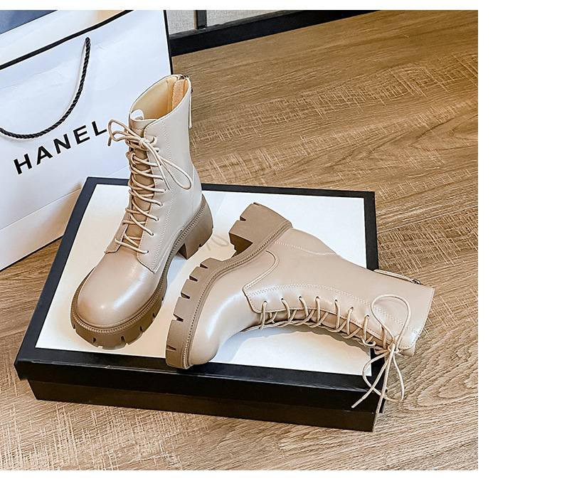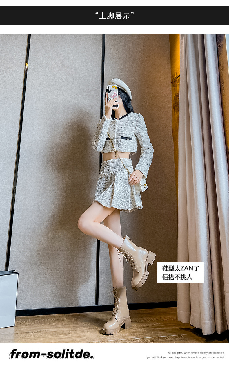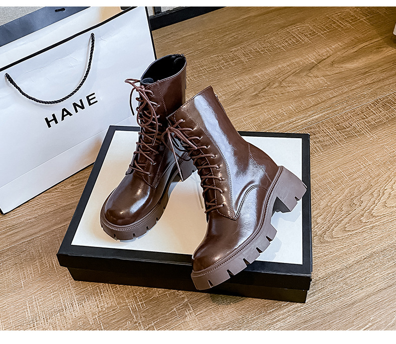 내부 키높이 마틴 부츠 여성용 2025 봄 영국풍 바이커 두꺼운 밑창 짧은 부츠 굵은 굽 신축성 있는 끈 부츠
