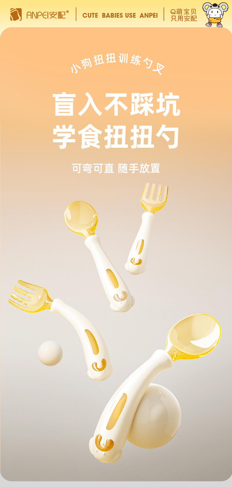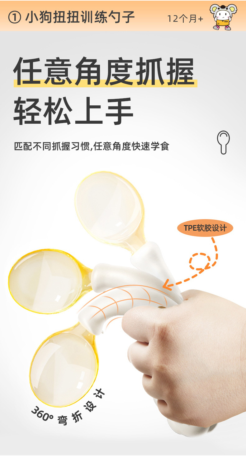 아기 숟가락 먹는 학습 훈련 독립 식사 구부릴 수 있는 1 세 이상 학습 스푼 아기 보완 식품 어린이 식기