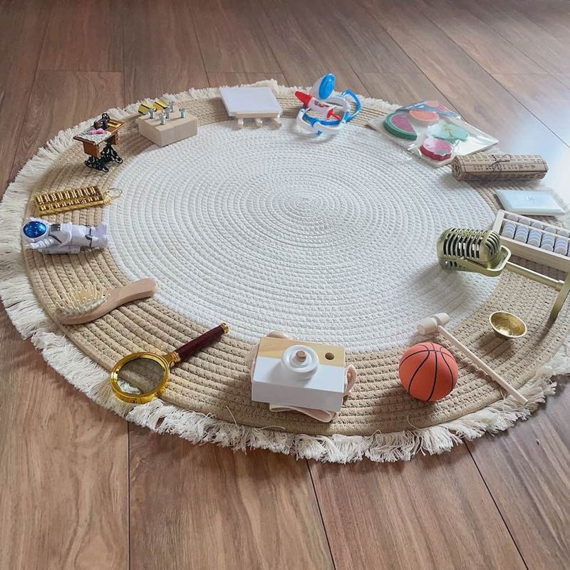 복고풍 짜임새 있는 프린지 카펫, 티 테이블 매트, 침실 침대 옆 담요, 거실 소파 원형 매트, 수제 공예품