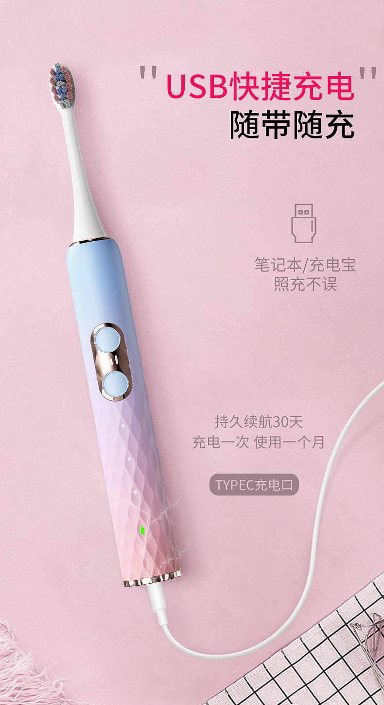성인 커플 음파 전동 칫솔 휴대 편리한 충전 부드러운 칫솔 다단계 조정 선물 칫솔 크로스 보더