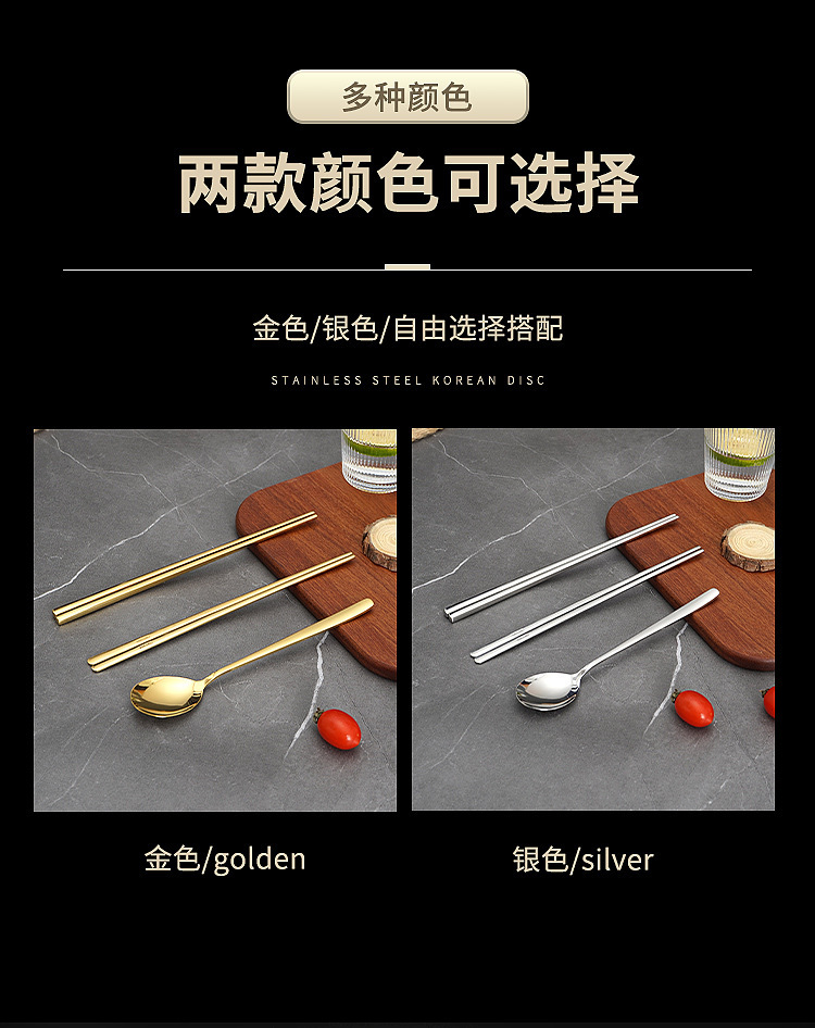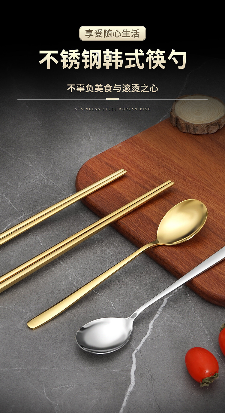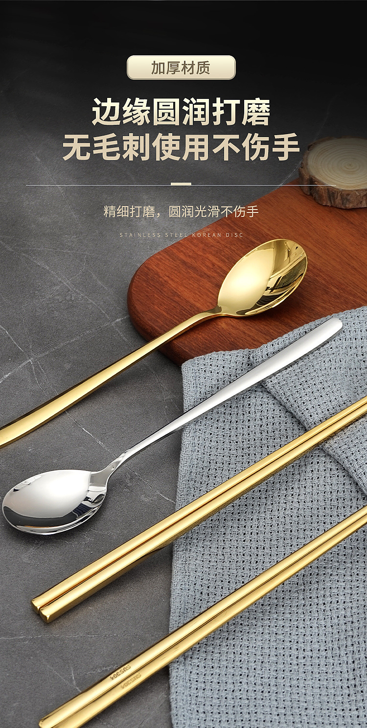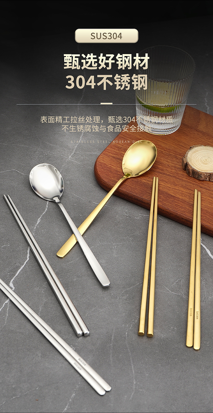 304 골드 (정사각형 중공 젓가락 + 숟가락)