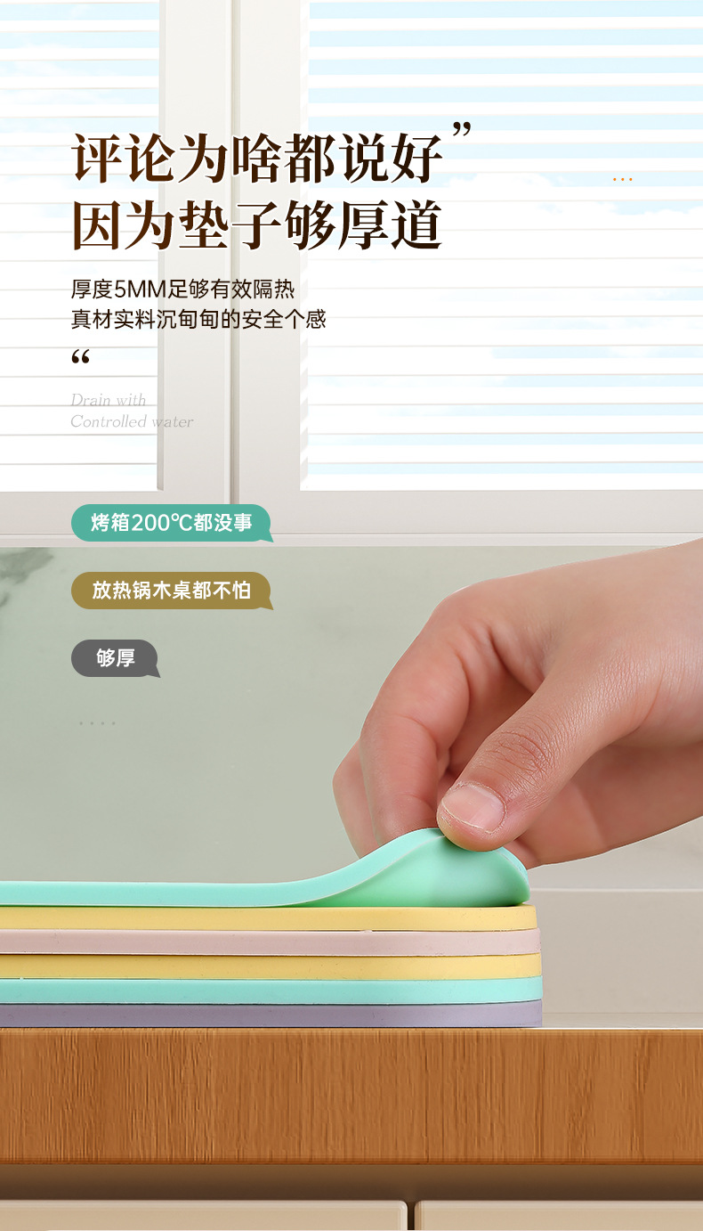 주방 단열 매트 화상 방지 고온 냄비 매트 어린이 식탁 매트 식탁 실리콘 매트 코스터 미끄럼 방지 실리콘 배수 매트