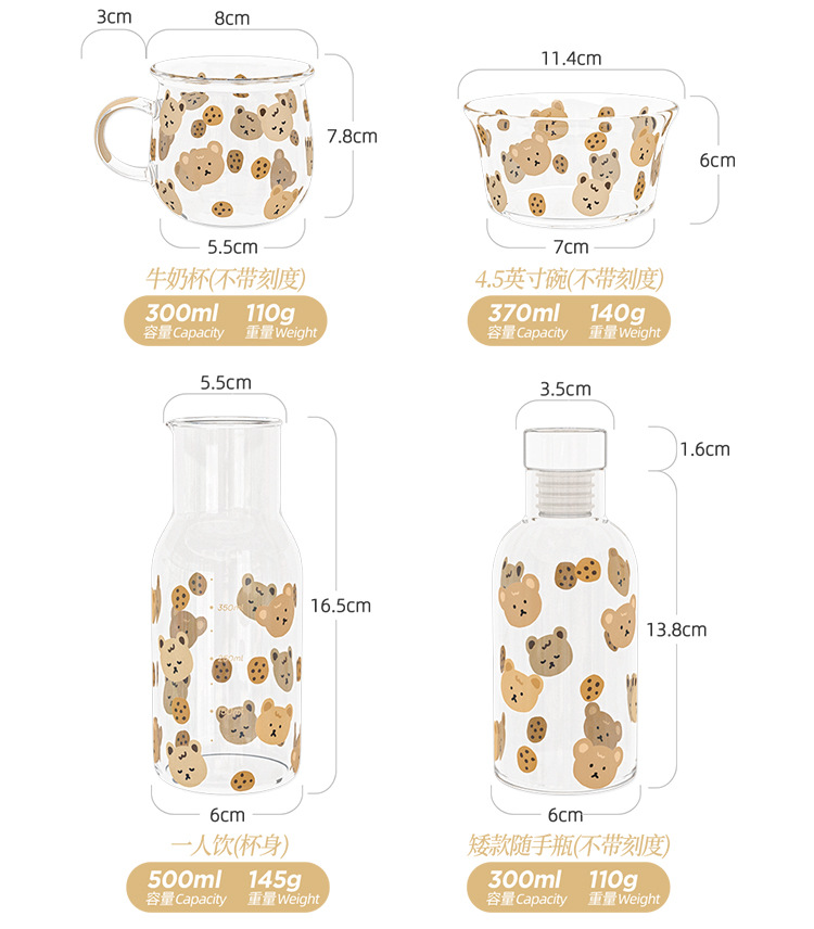 曲奇小熊刻度杯39元、曲奇小熊4.5寸碗36元