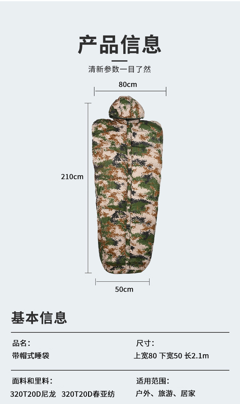 야외 캠핑용 후드 달린 다용도 다기능 침낭, 사계절 휴대용 두꺼운 성인용 엄마용 대형 위장 침낭
