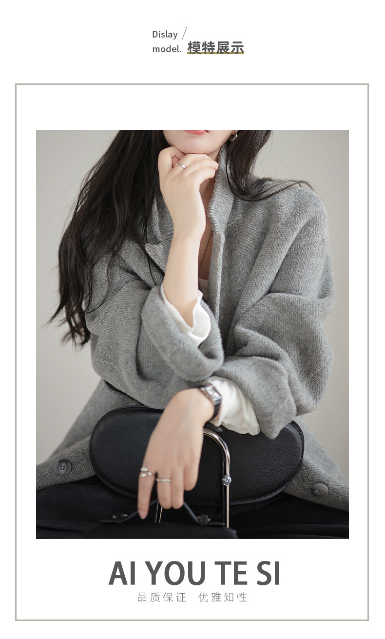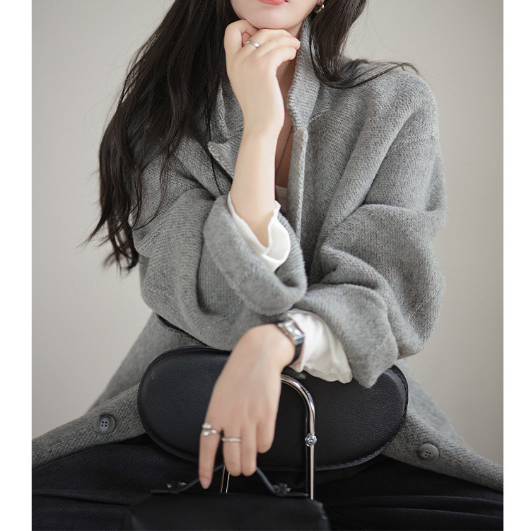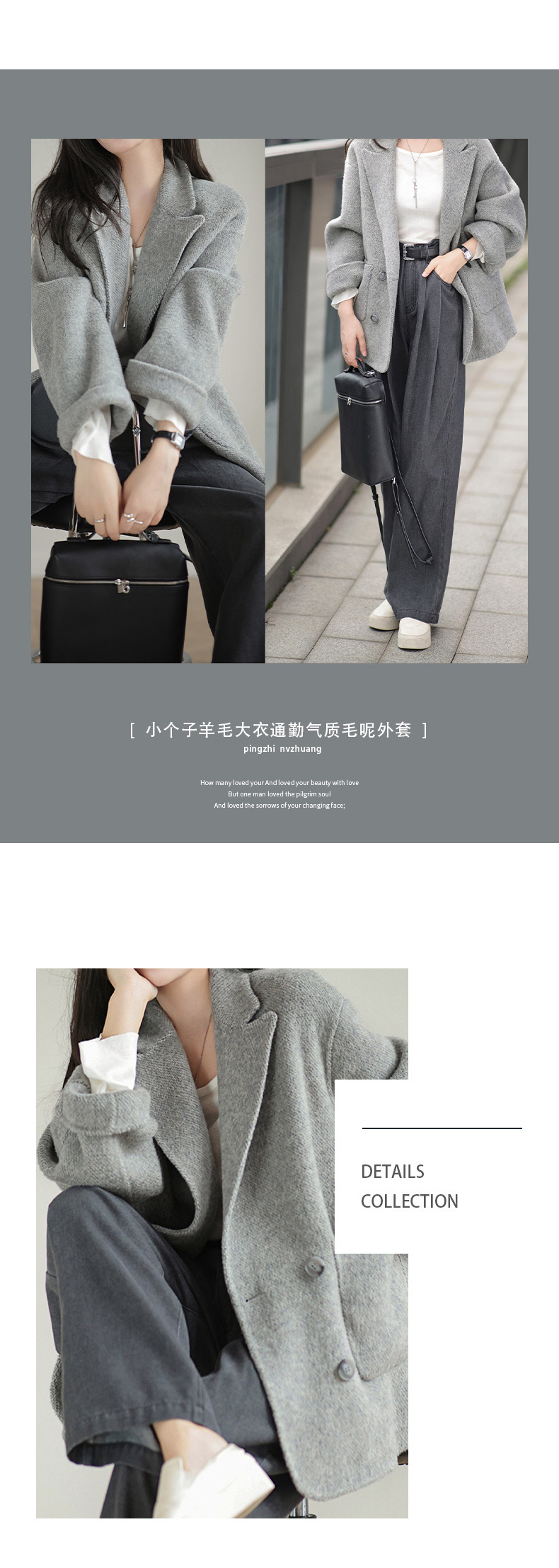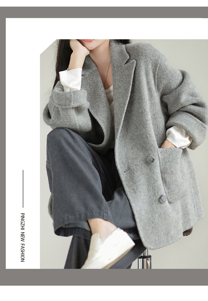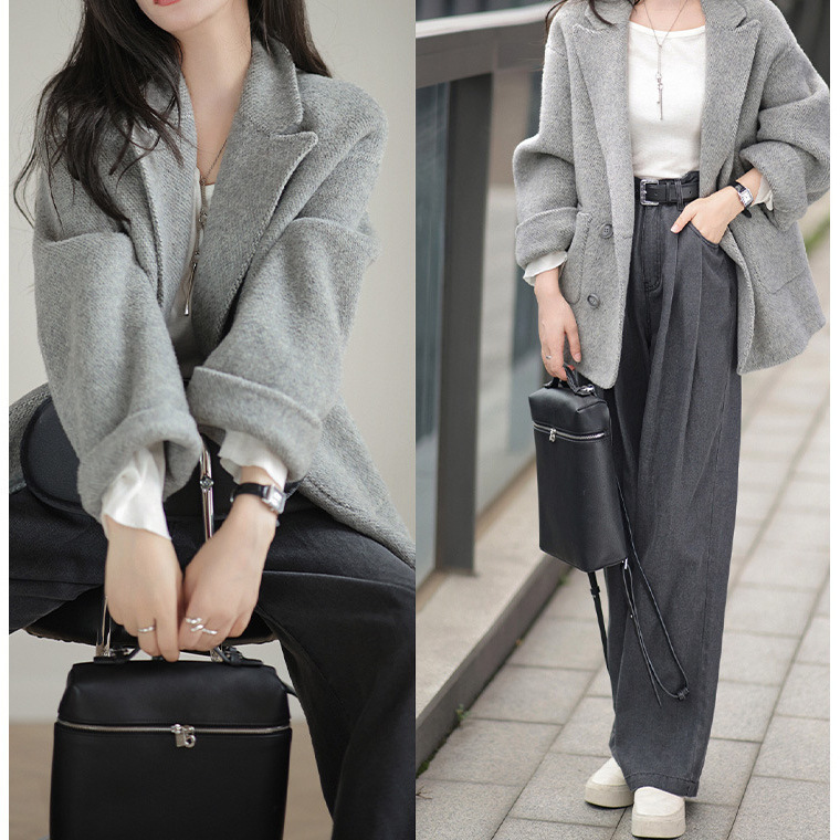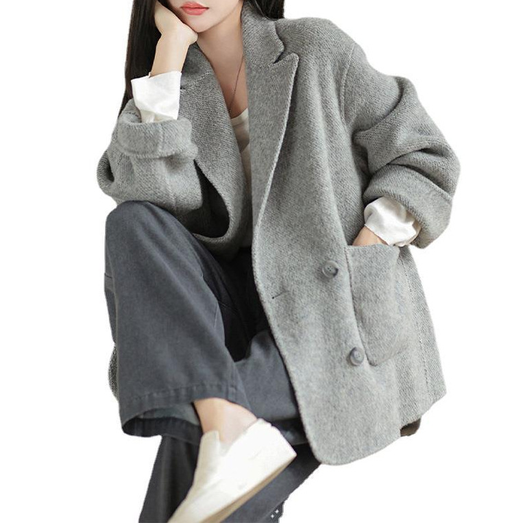 하이 엔드 센스 그레이 울 코트 여성용 하이 엔드 루즈한 세트 울 코트 우아한 여성용 양면 캐시미어