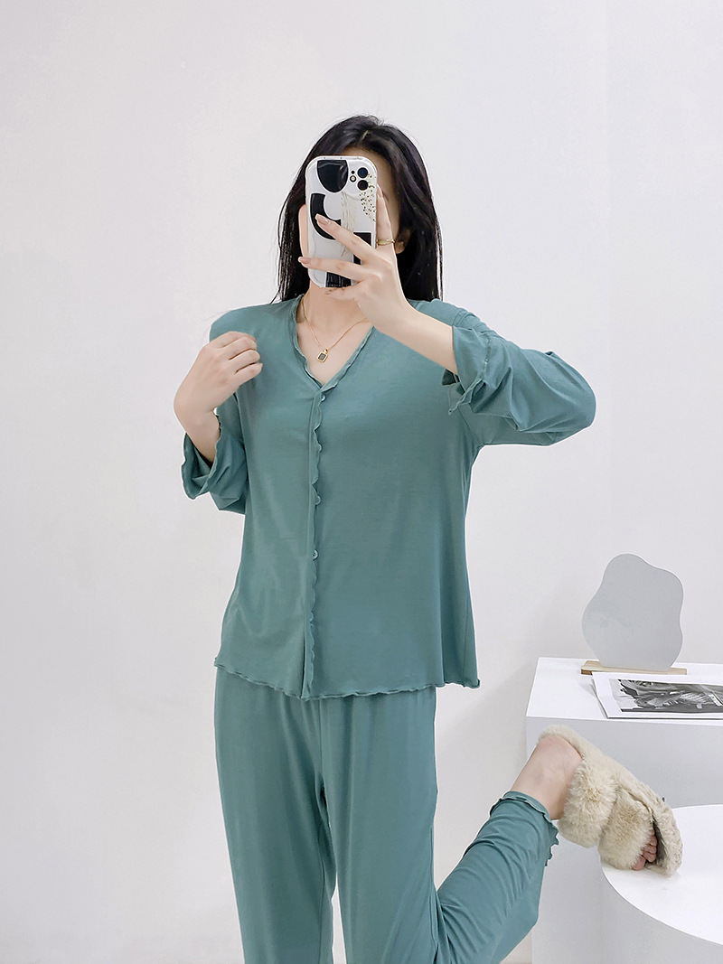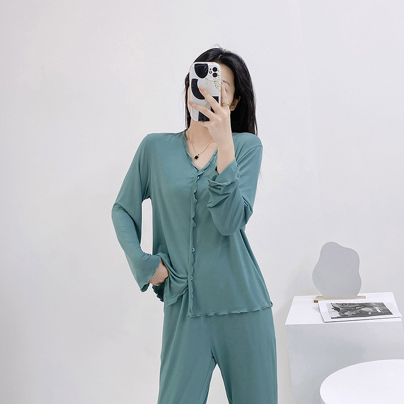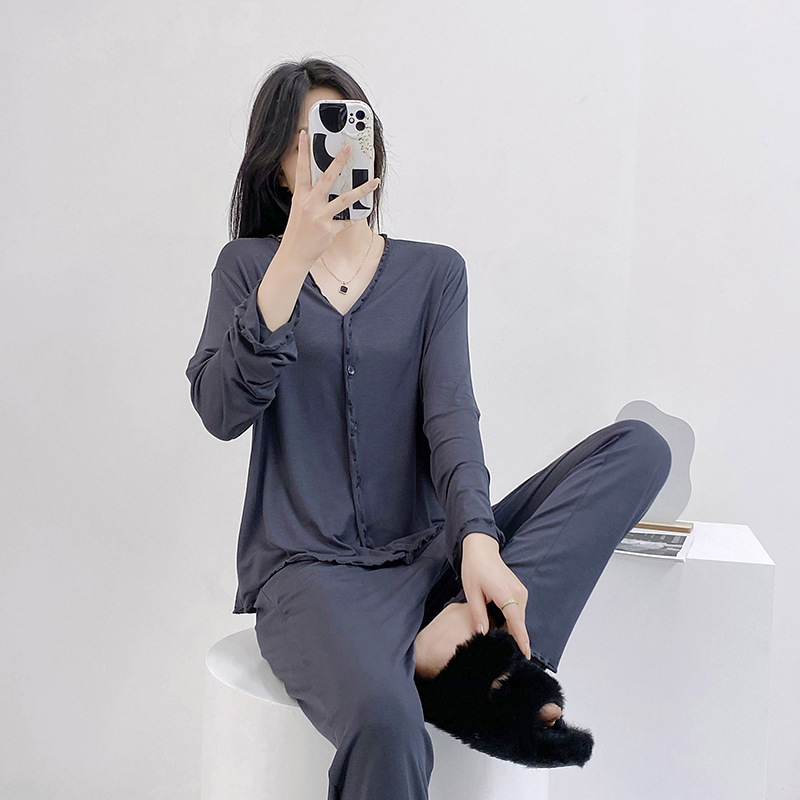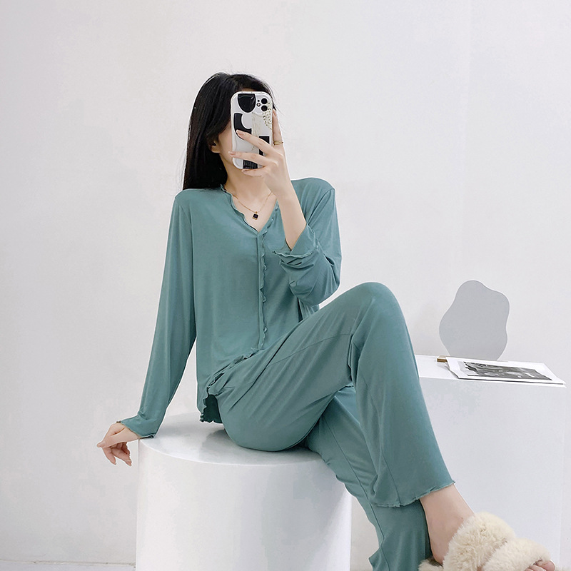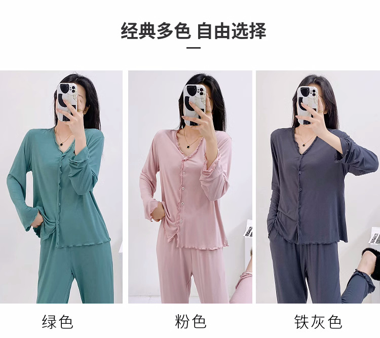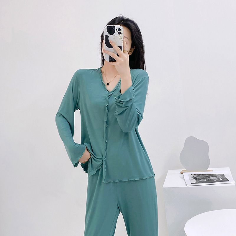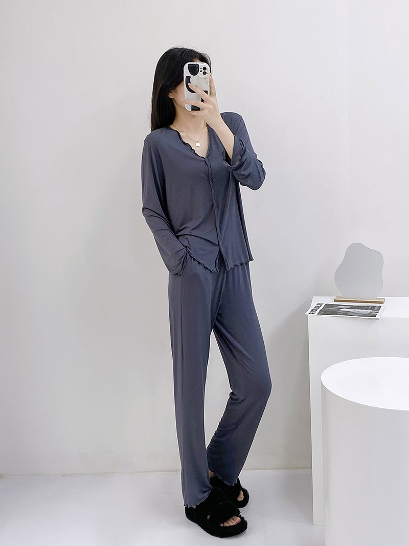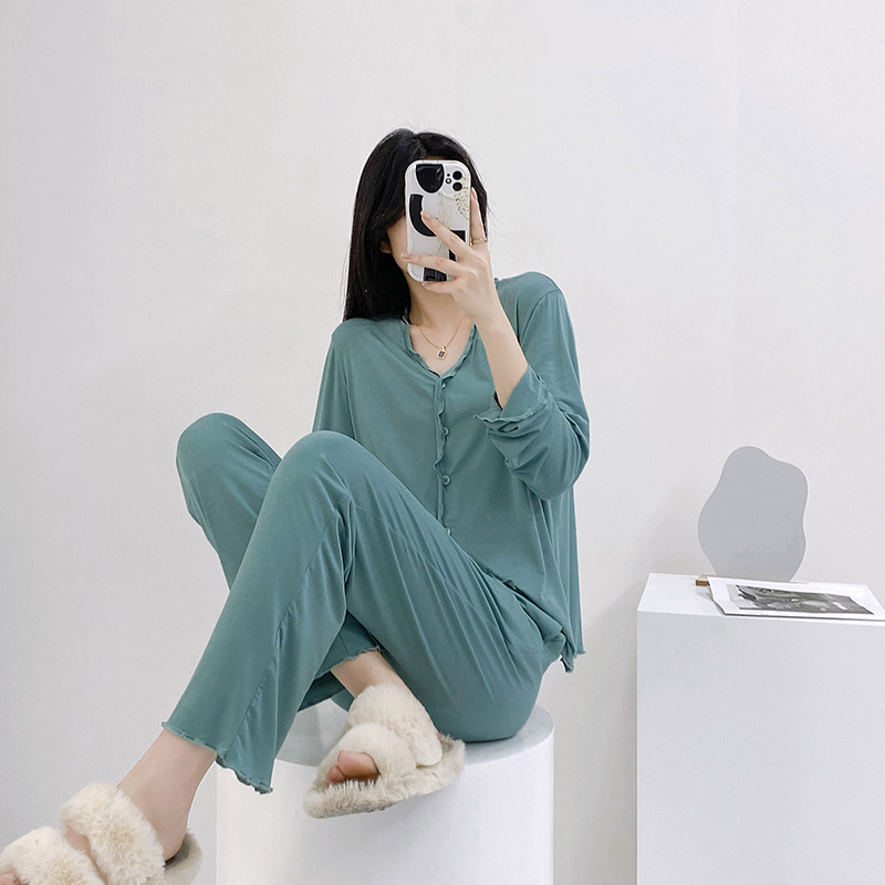 2023 가을과 겨울 새로운 모달 긴 소매 나무 귀 잠옷 세트 카디건 플러스 사이즈 얇은 가정 옷 사계절