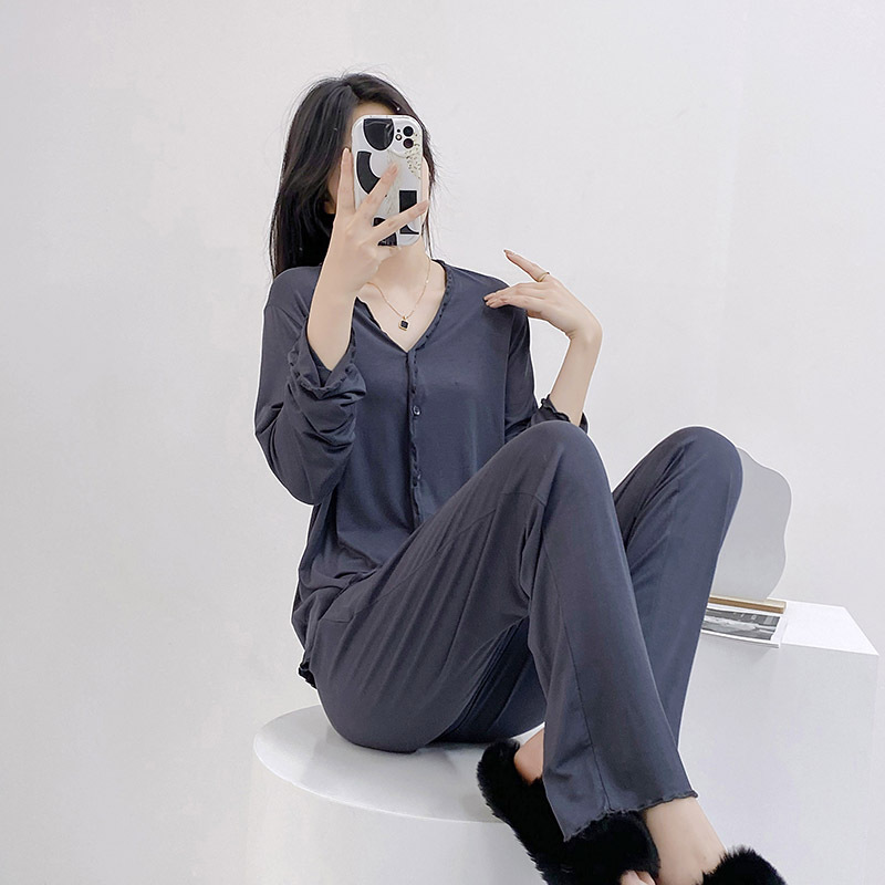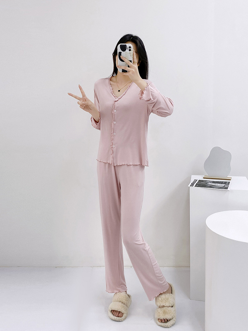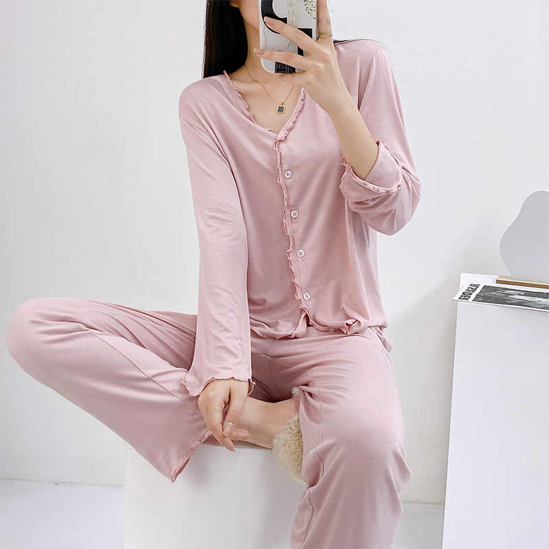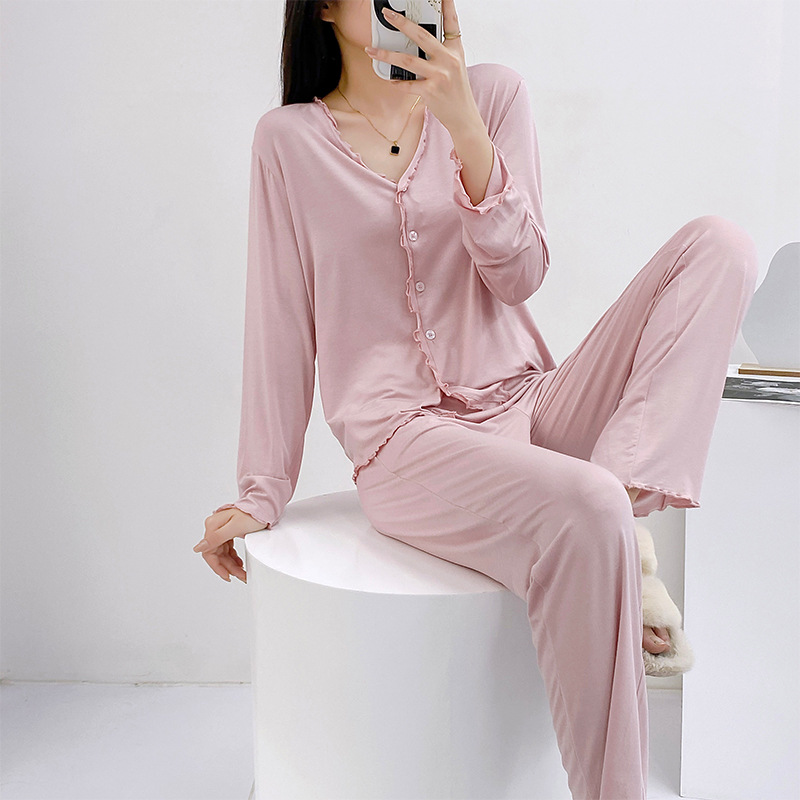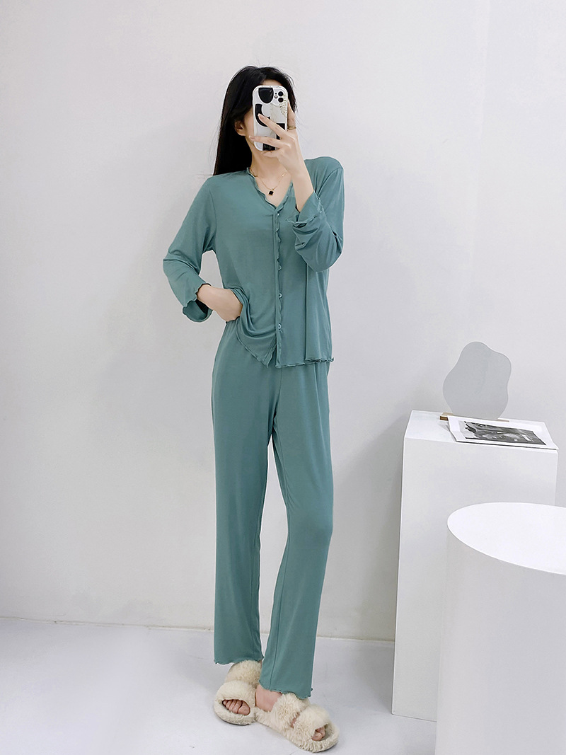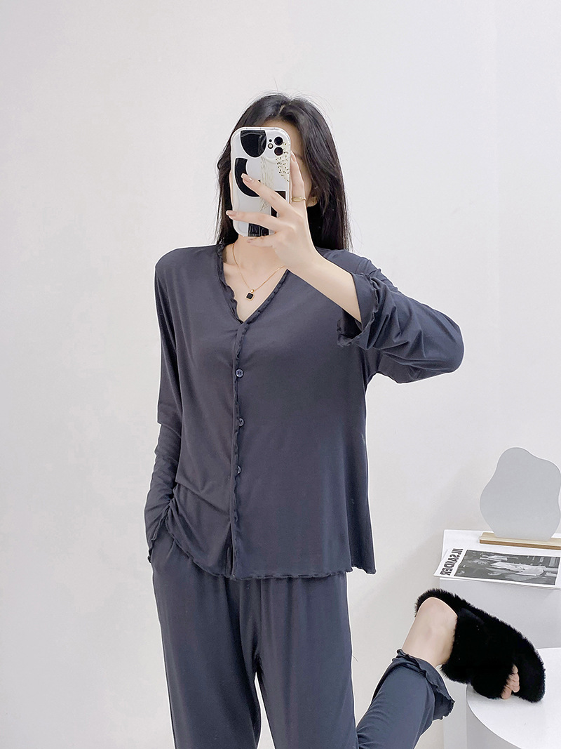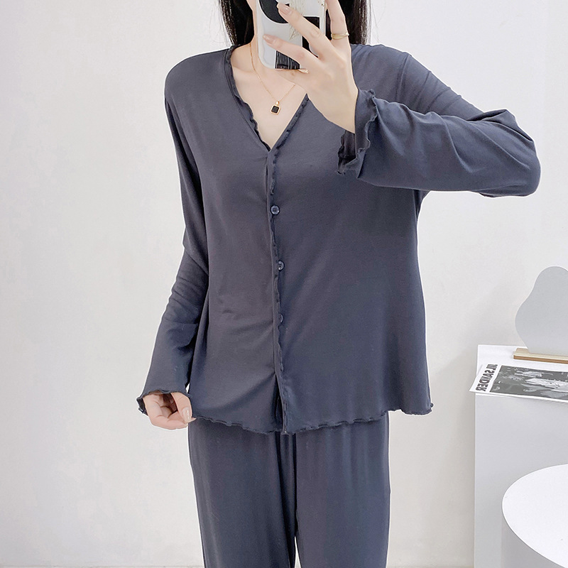 2023 가을과 겨울 새로운 모달 긴 소매 나무 귀 잠옷 세트 카디건 플러스 사이즈 얇은 가정 옷 사계절
