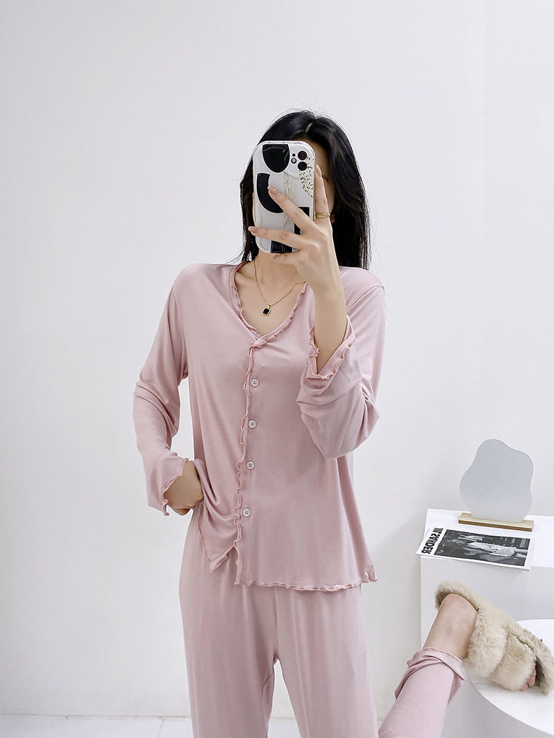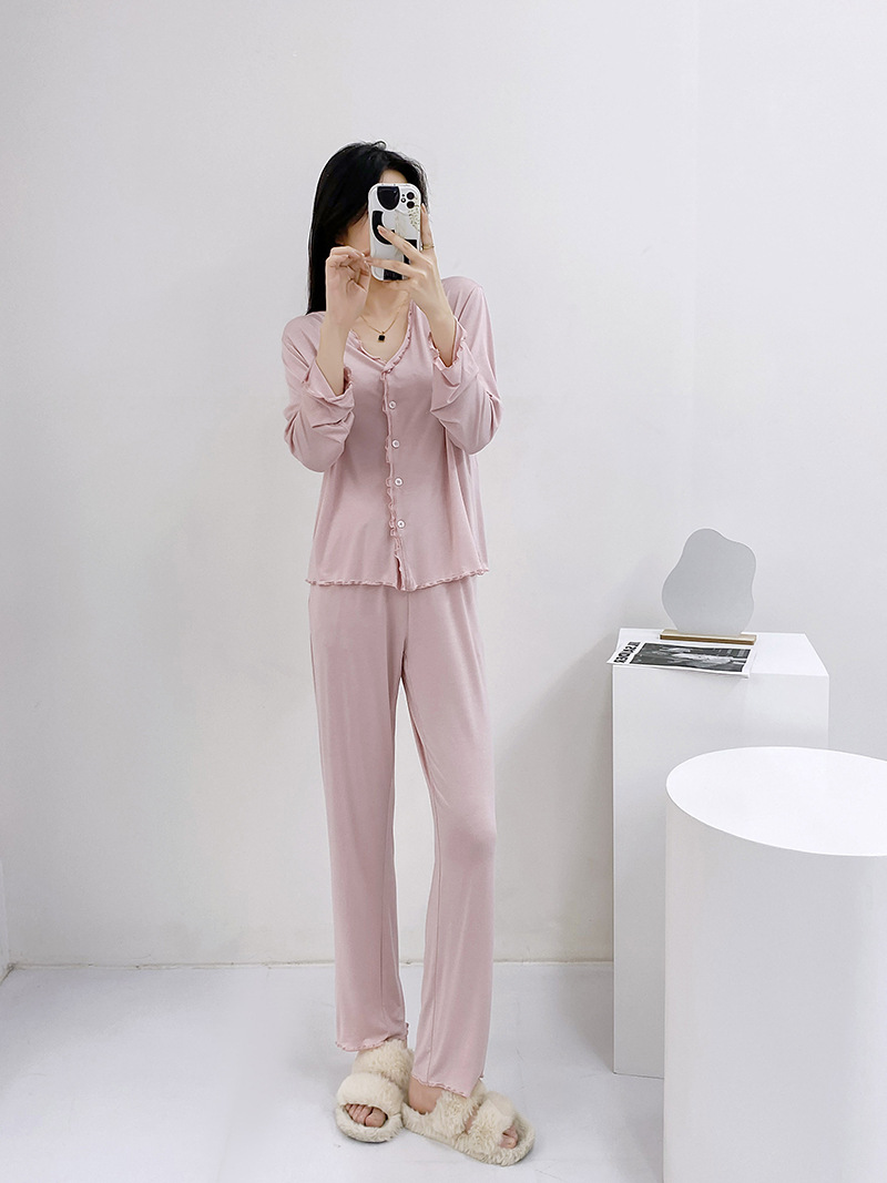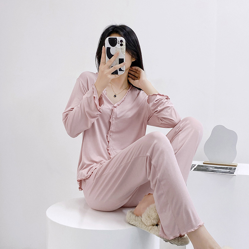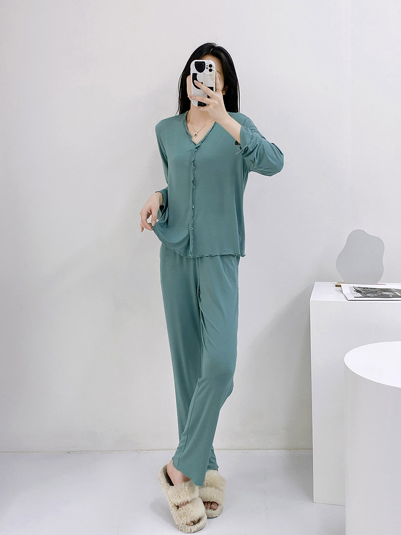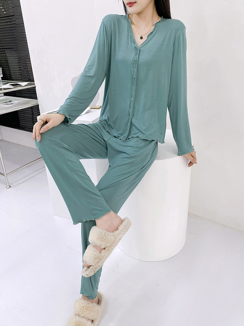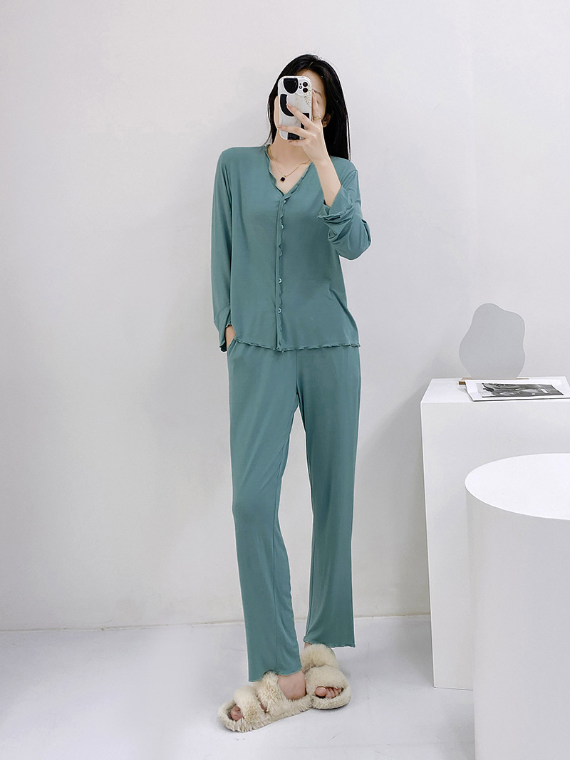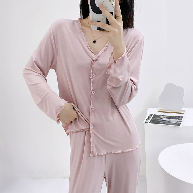 2023 가을과 겨울 새로운 모달 긴 소매 나무 귀 잠옷 세트 카디건 플러스 사이즈 얇은 가정 옷 사계절