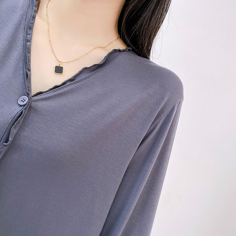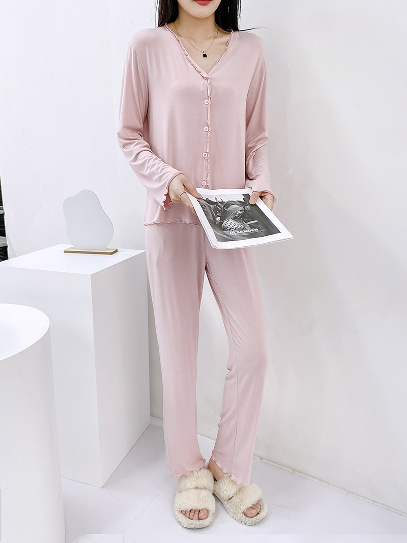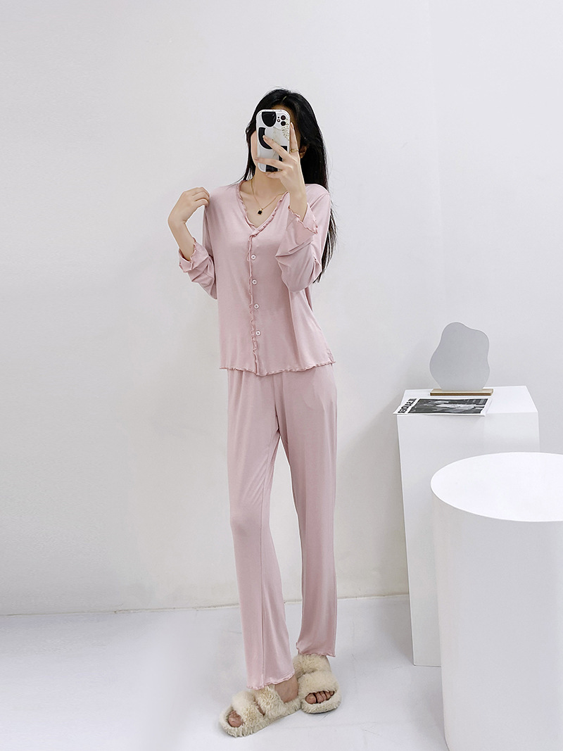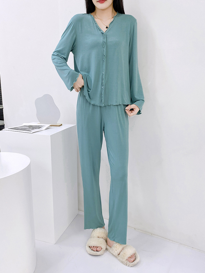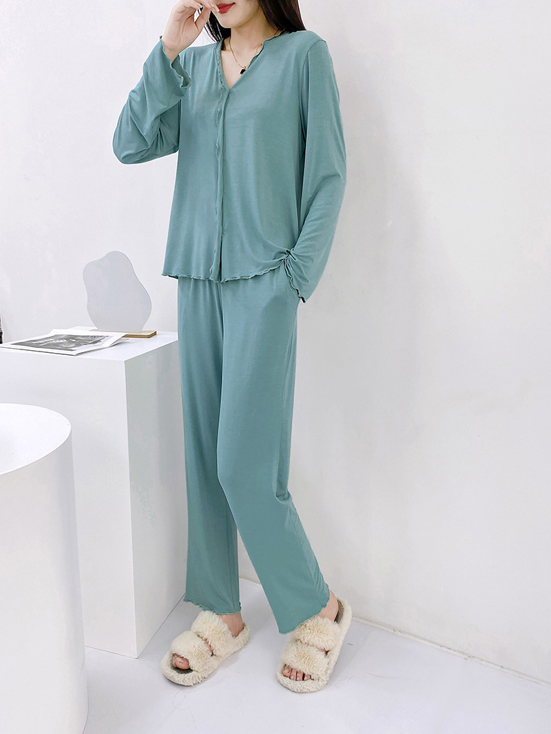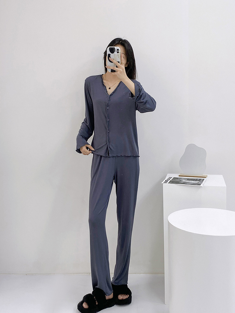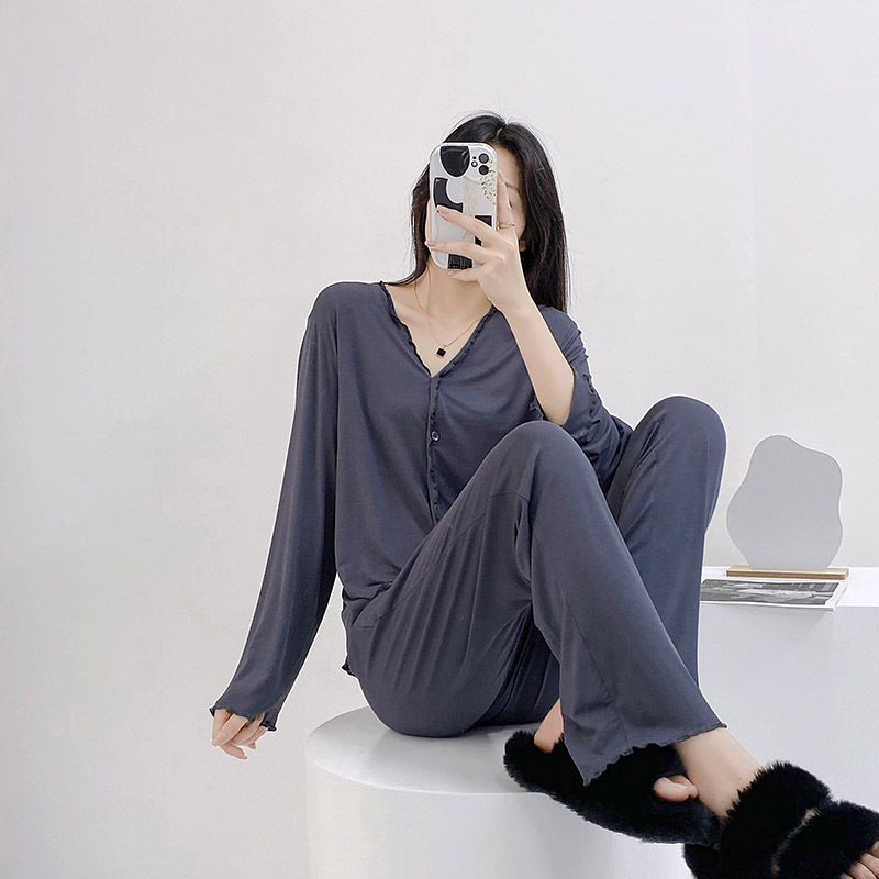 2023 가을과 겨울 새로운 모달 긴 소매 나무 귀 잠옷 세트 카디건 플러스 사이즈 얇은 가정 옷 사계절