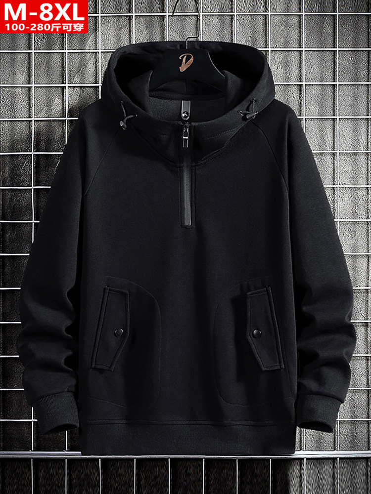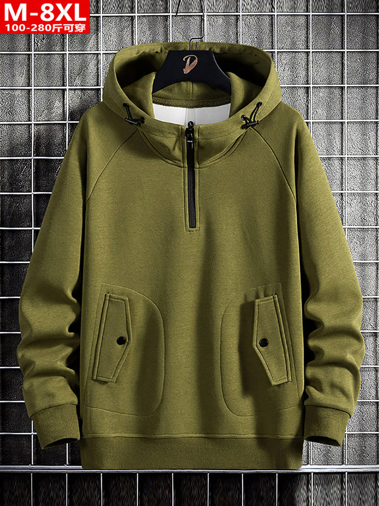 봄과 가을 유행 남자의 니트 면 후드 스웨터 통통한 남자의 플러스 사이즈 느슨한 코트 스포츠 캐주얼 탑