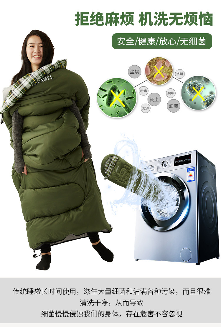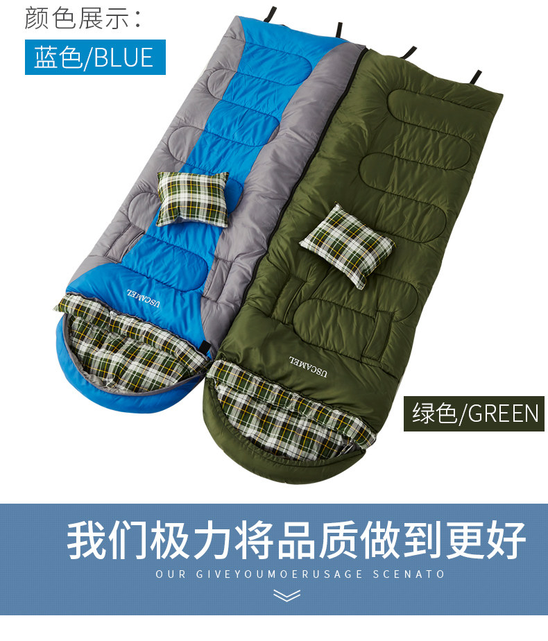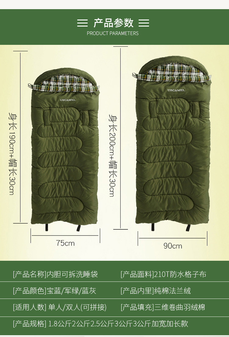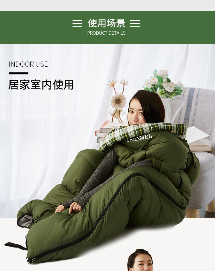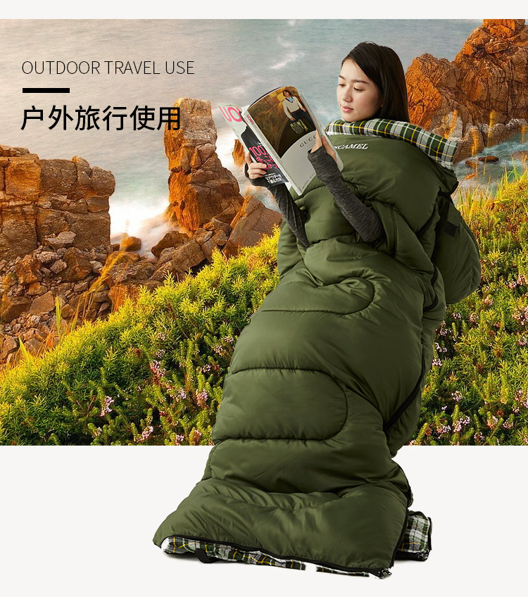 성인용 방한 침낭, 야외용 봄, 여름, 가을, 겨울용 두꺼운 보온 캠핑 침낭, 휴대 가능하고 세탁 가능