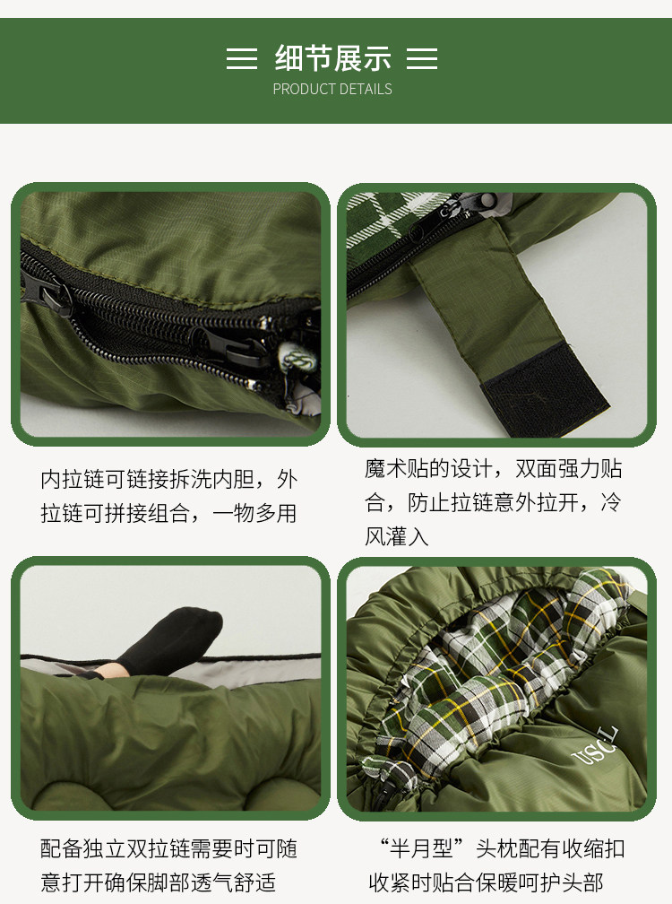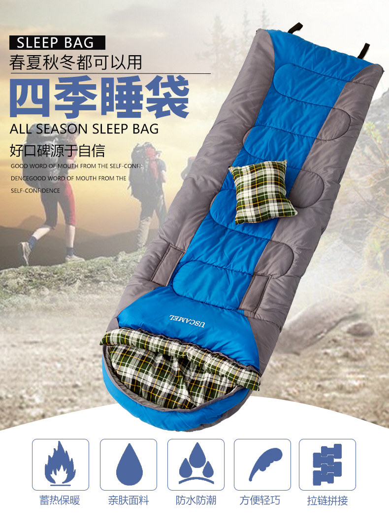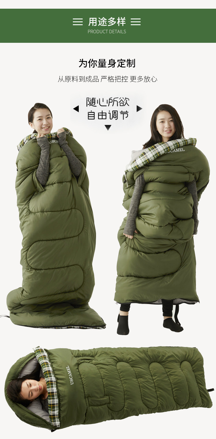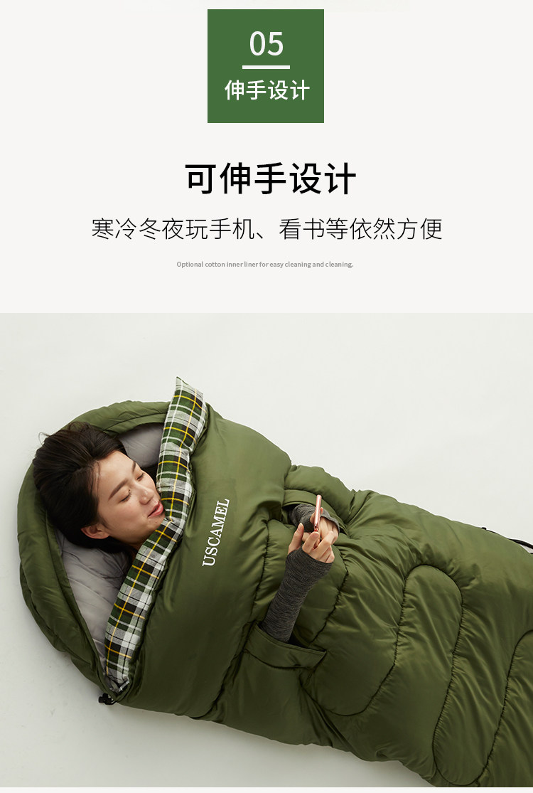 성인용 방한 침낭, 야외용 봄, 여름, 가을, 겨울용 두꺼운 보온 캠핑 침낭, 휴대 가능하고 세탁 가능