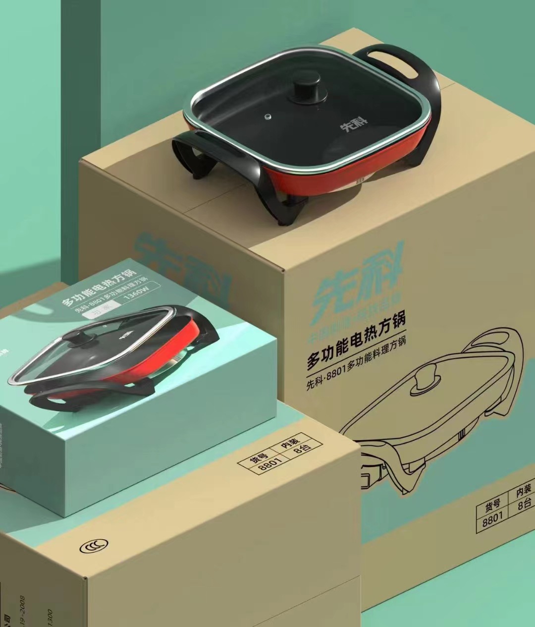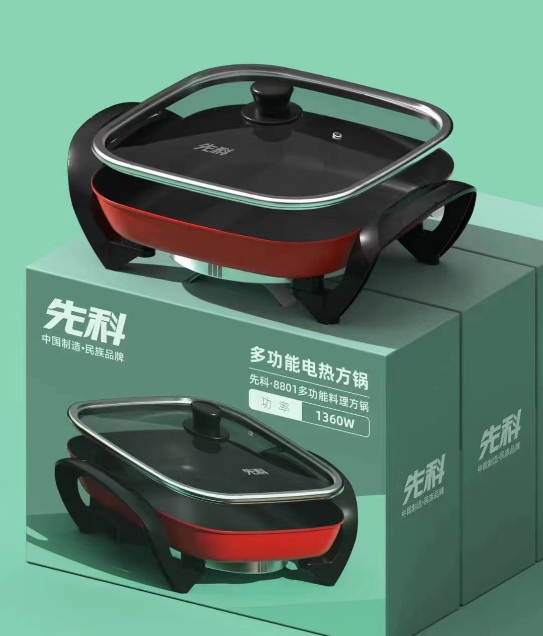 Xianke 냄비 4 칸 냄비 다기능 전기 냄비 한국식 사각 냄비 가정용 전기 냄비