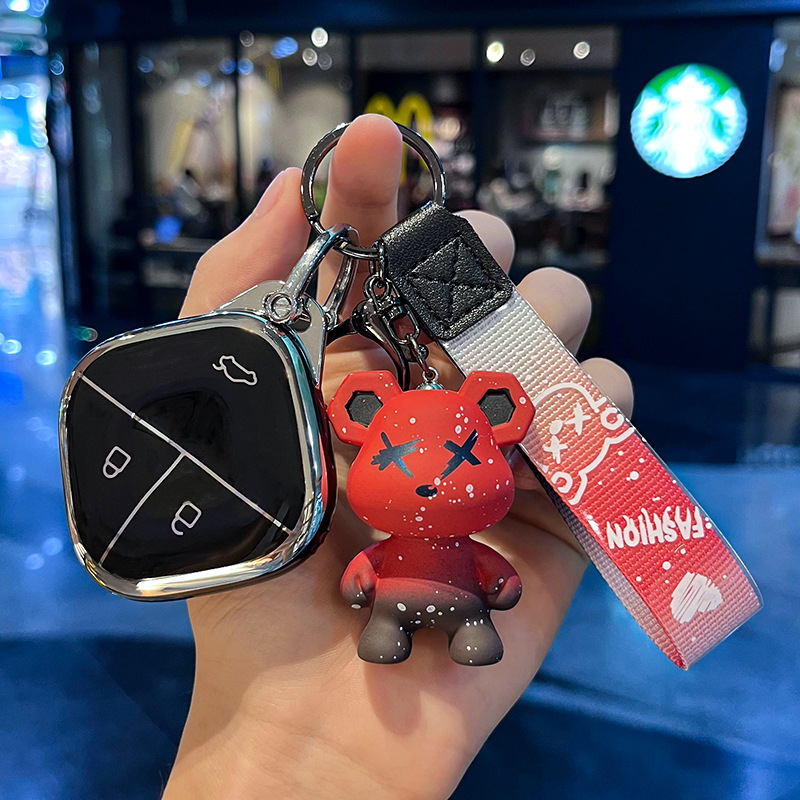 Wuling H-스마트 3 키 [싱글 쉘 블랙] + 레드 폭력 곰 펜던트