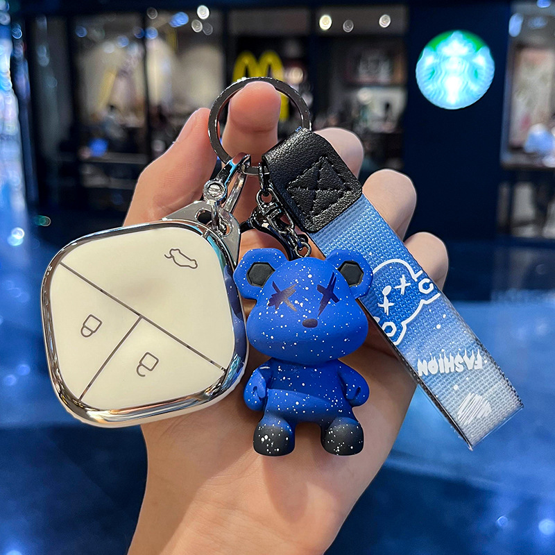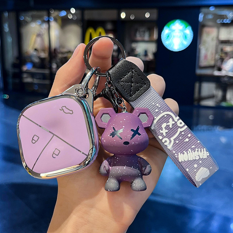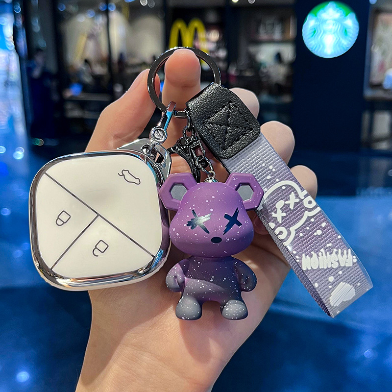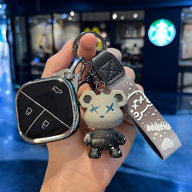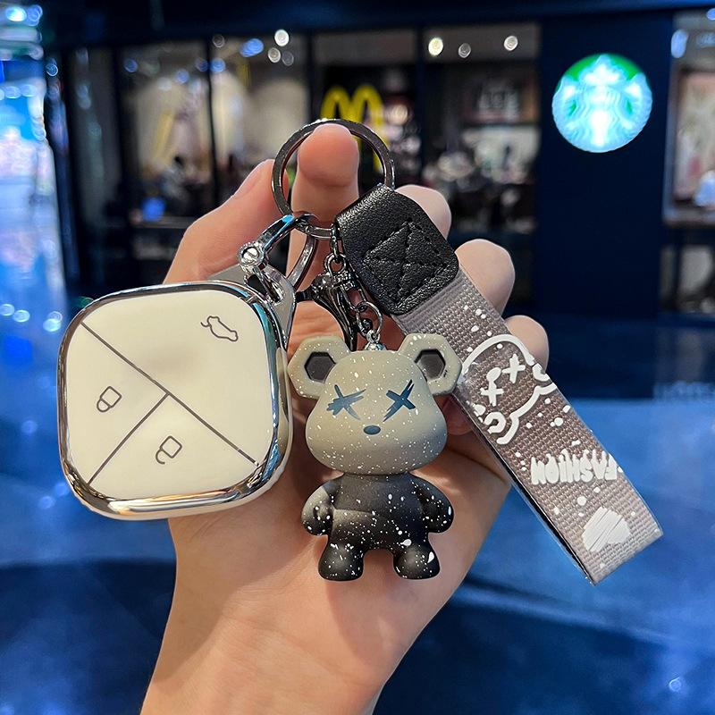 Wuling H-스마트 3 키 [싱글 쉘 화이트] + 그레이 폭력 곰 펜던트