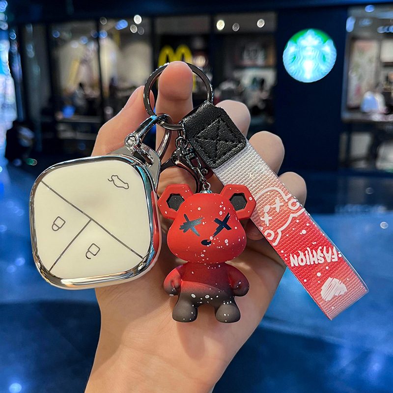 Wuling H-스마트 3 키 [싱글 쉘 화이트] + 레드 폭력 곰 펜던트