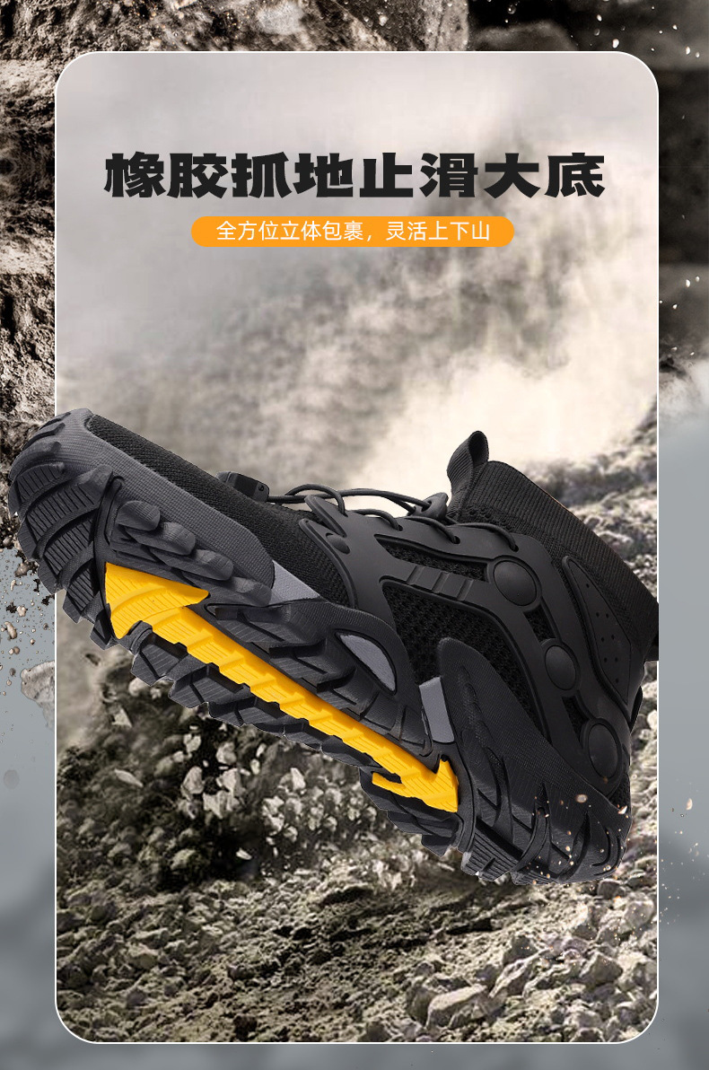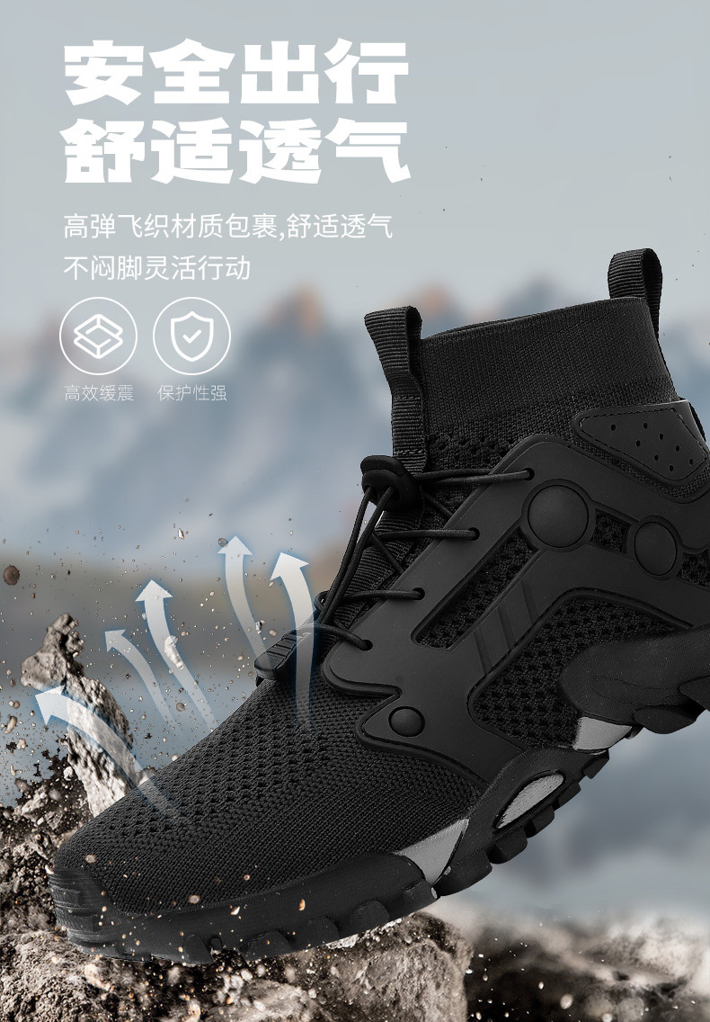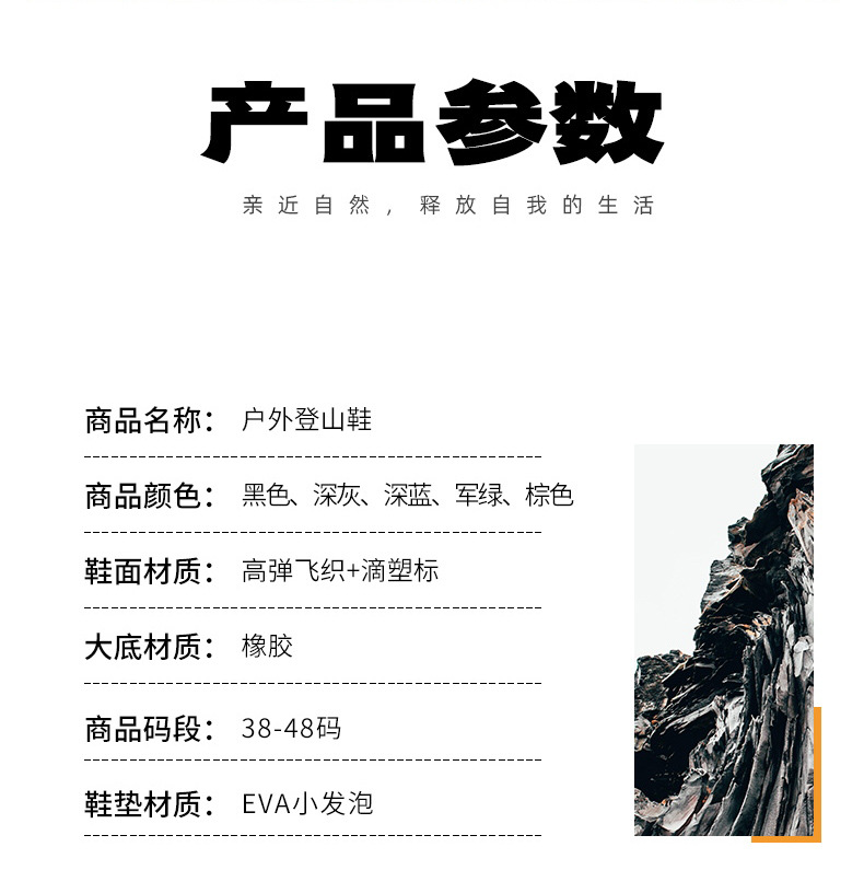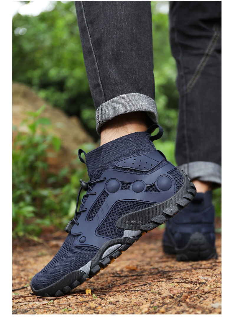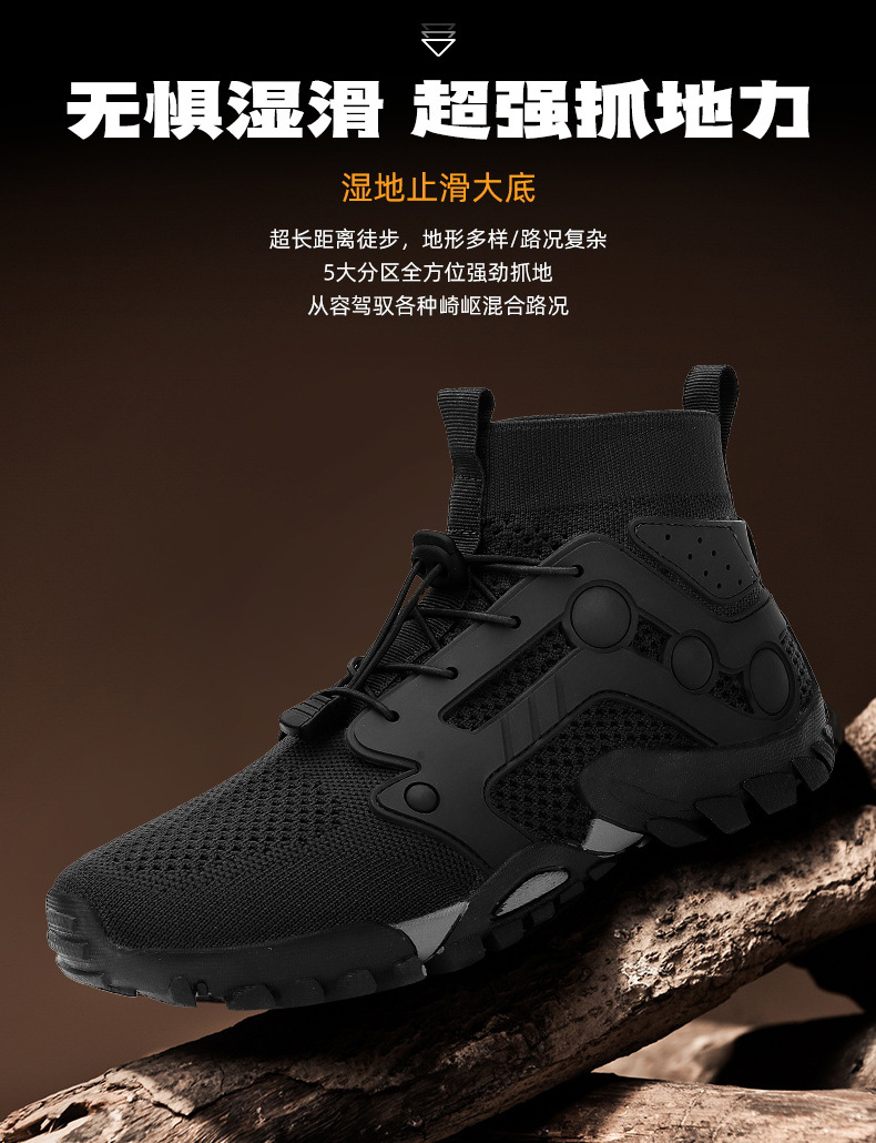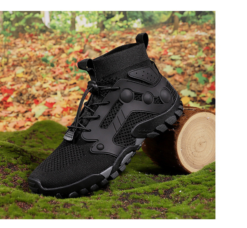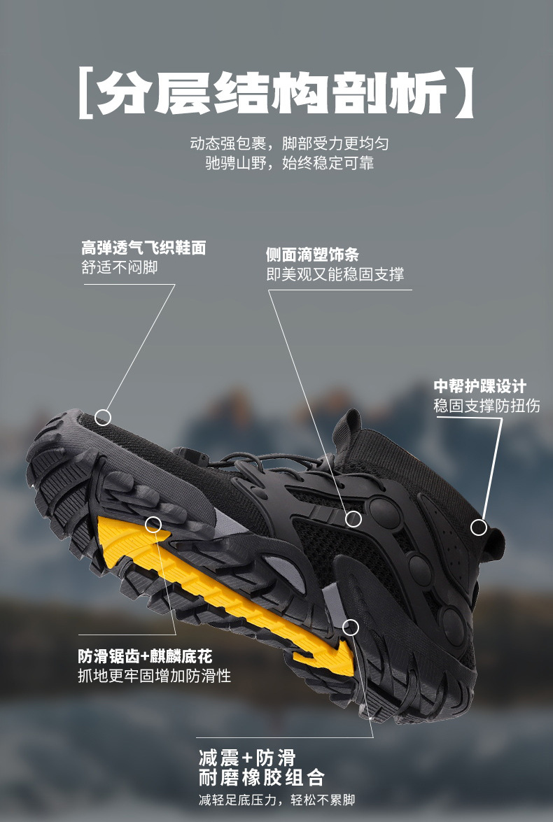 크로스보더 아웃도어 커플용 플라이니트 등산화 남성용 통기성 중간굽 트레킹화 여성용 도매 경량 속건성 신발 오프로드