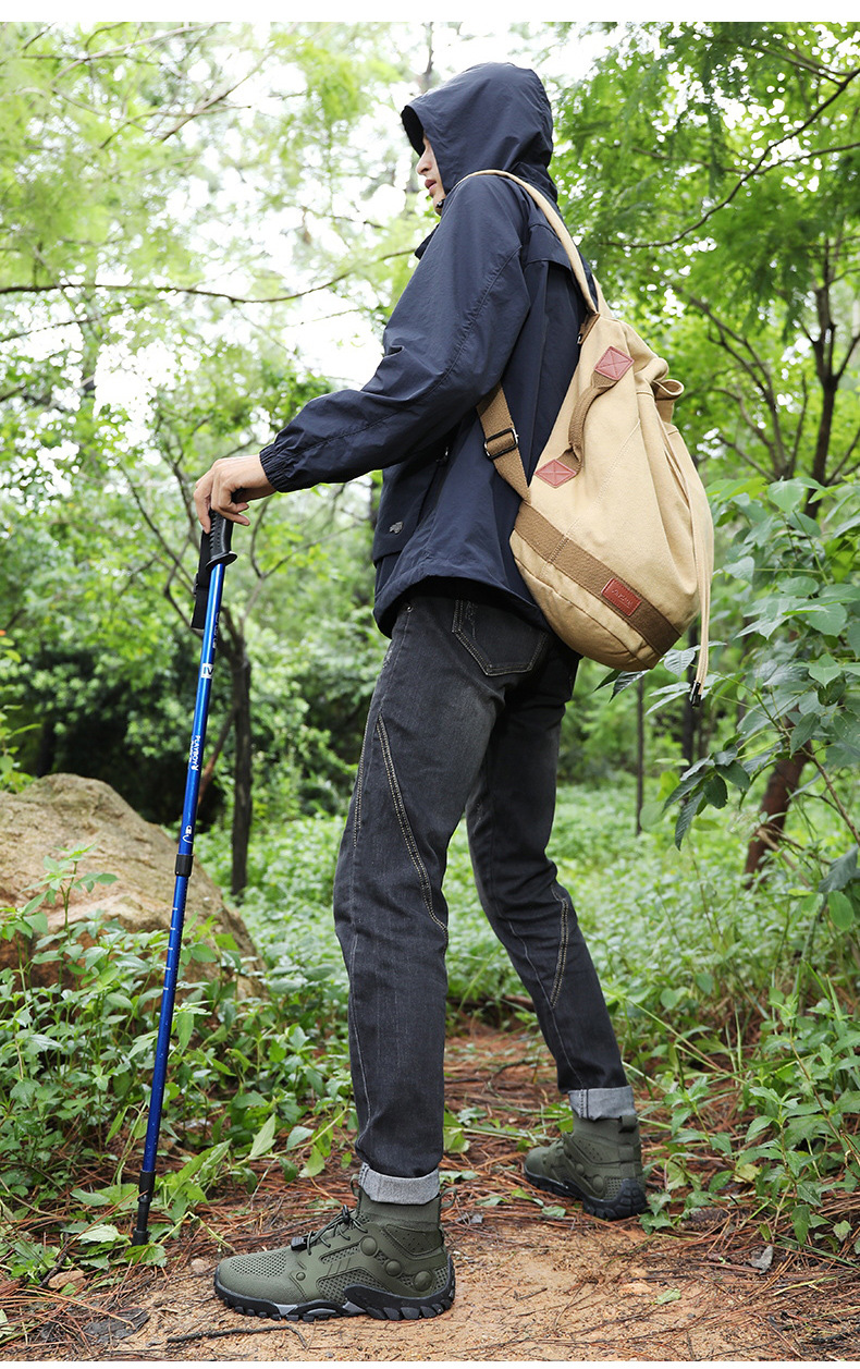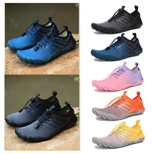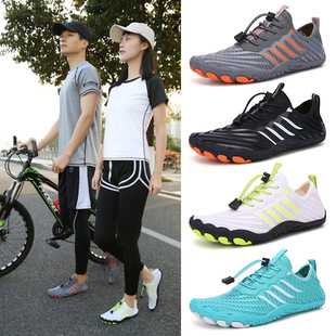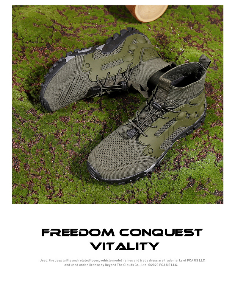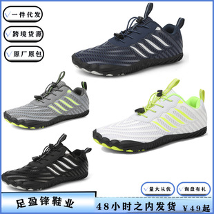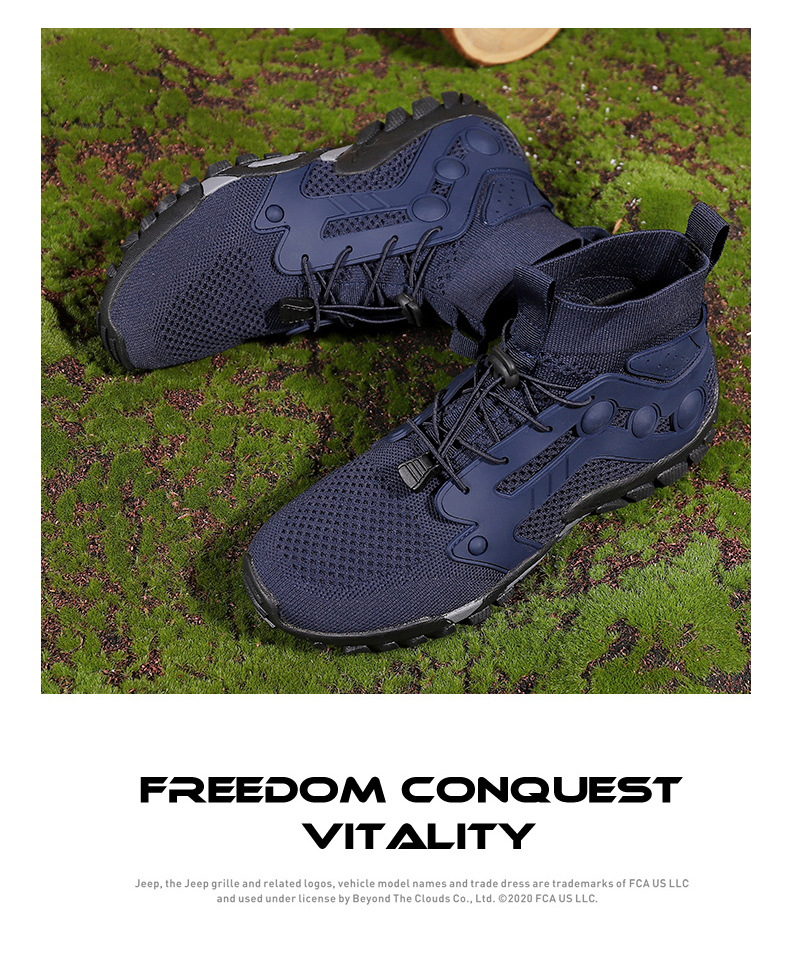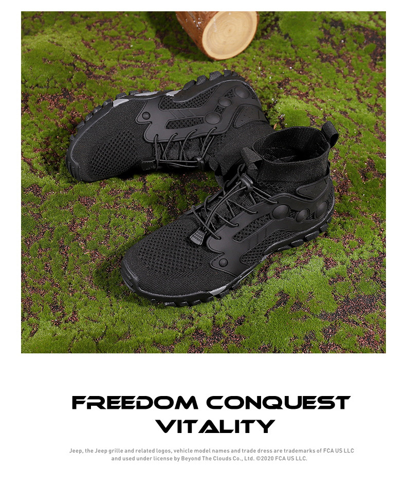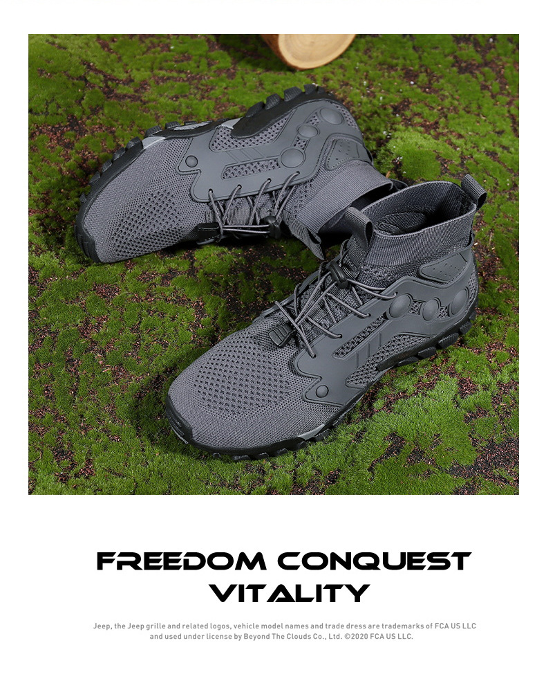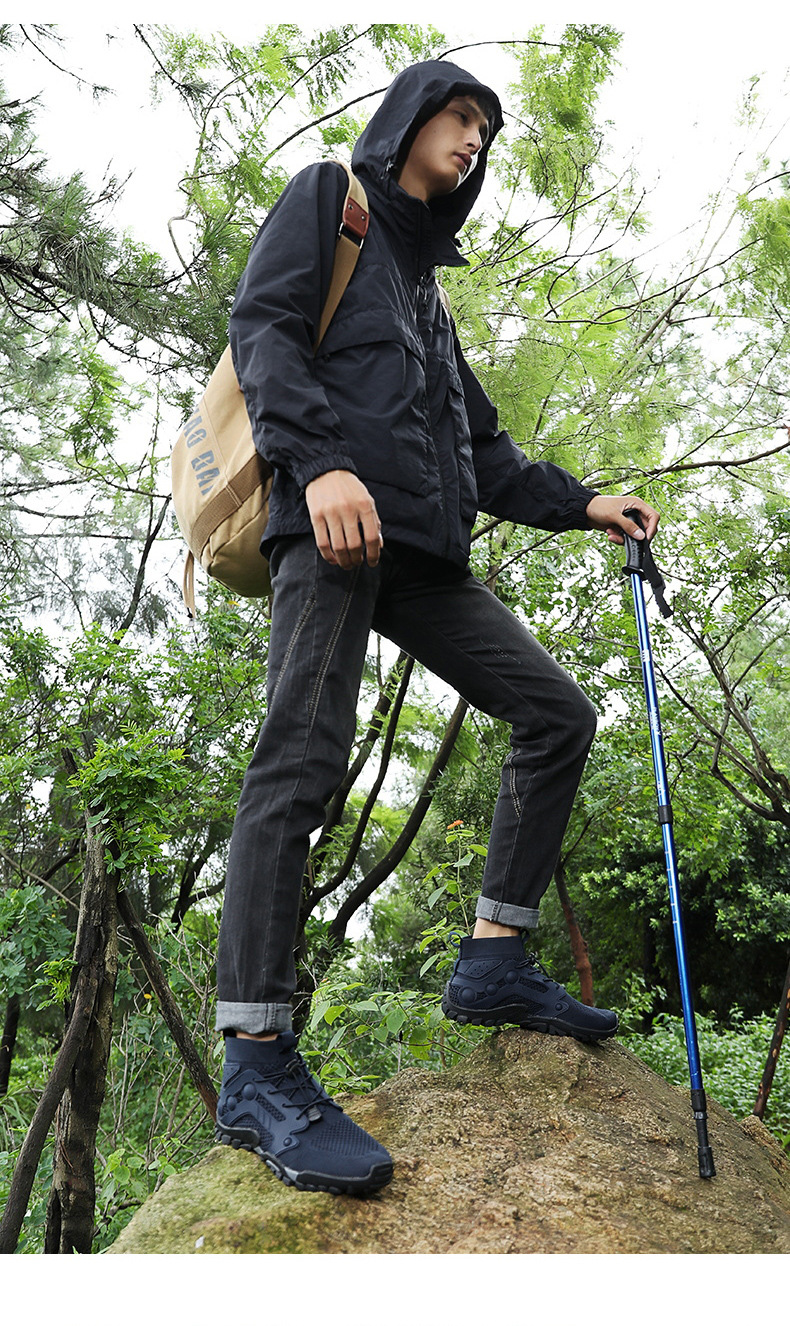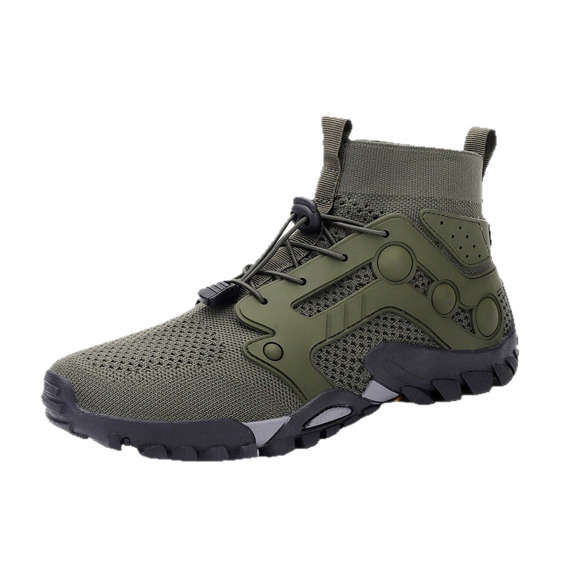 크로스보더 아웃도어 커플용 플라이니트 등산화 남성용 통기성 중간굽 트레킹화 여성용 도매 경량 속건성 신발 오프로드