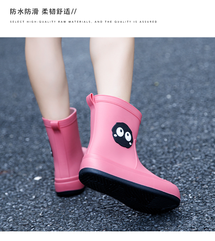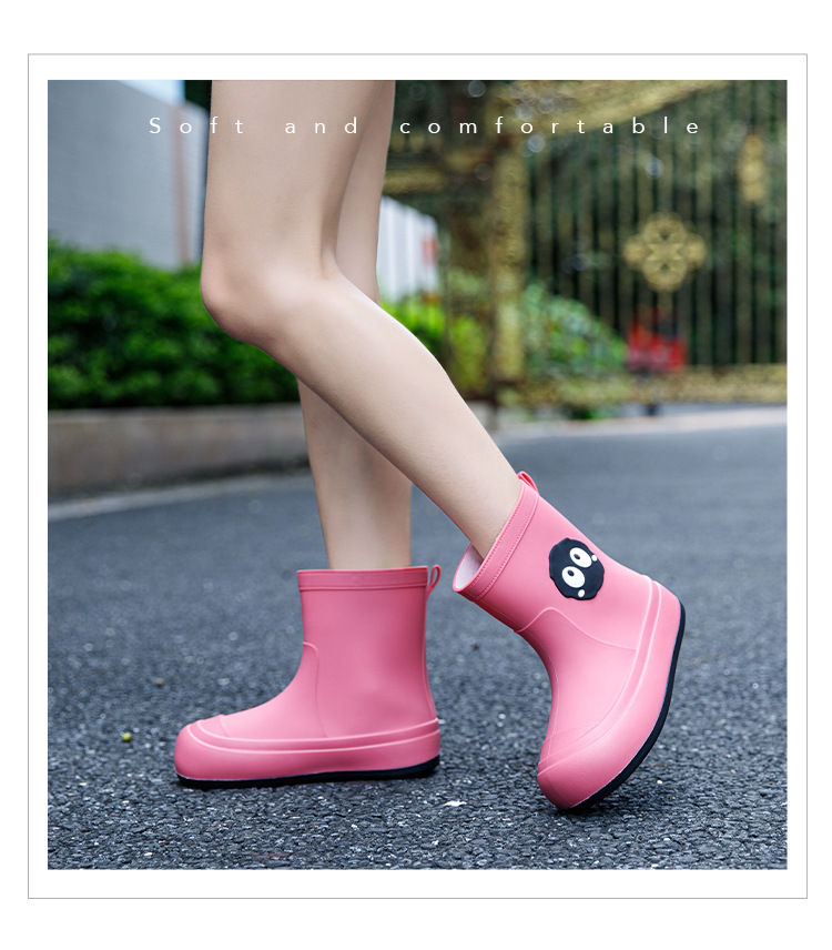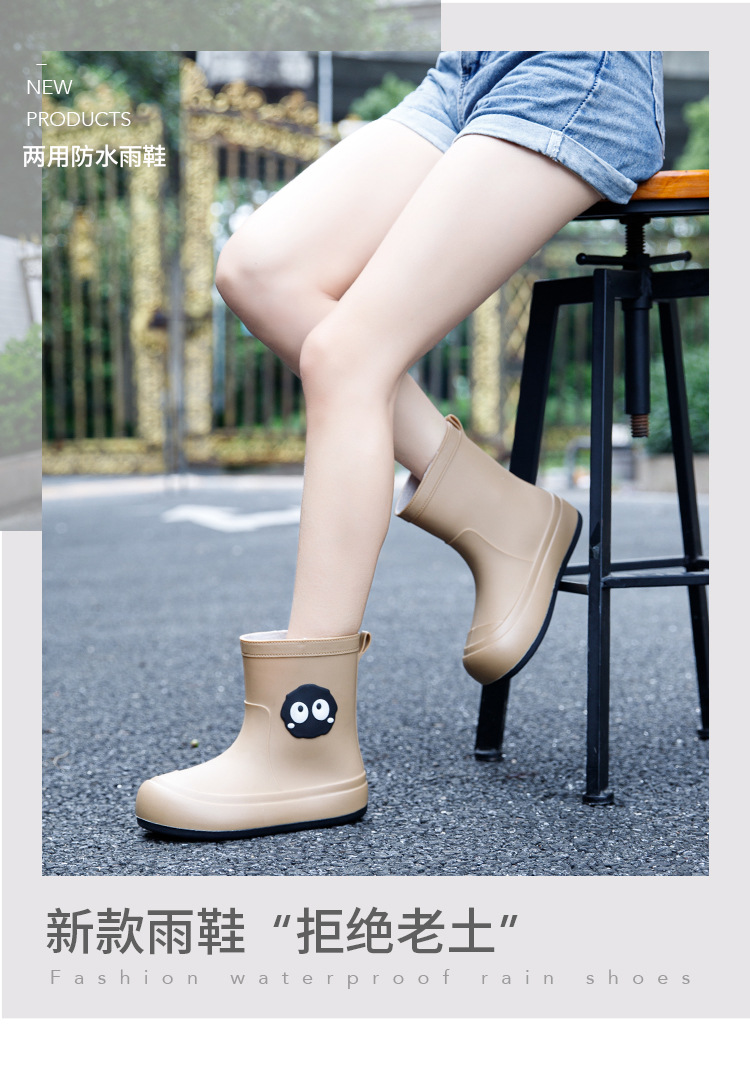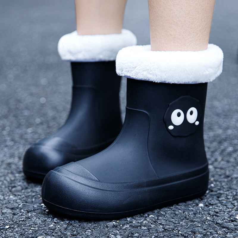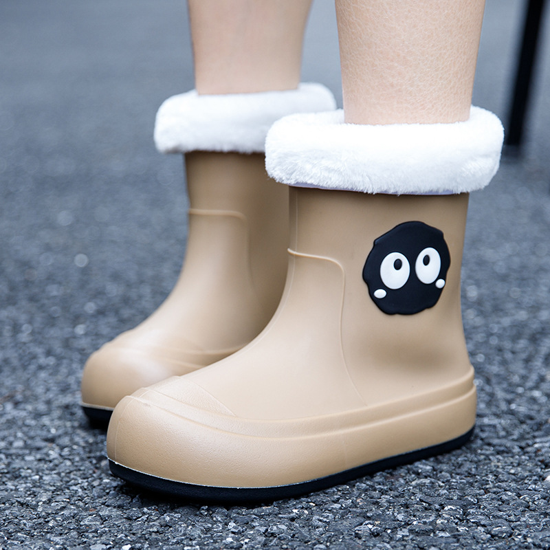 한국 스타일 2023 새로운 장화 여자의 귀여운 만화 미끄럼 방지 방수 신발 야외 기모 따뜻한 장화 야외 물 장화