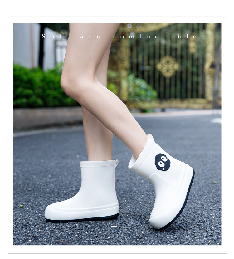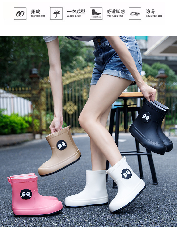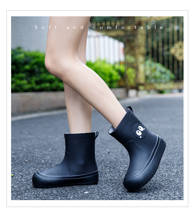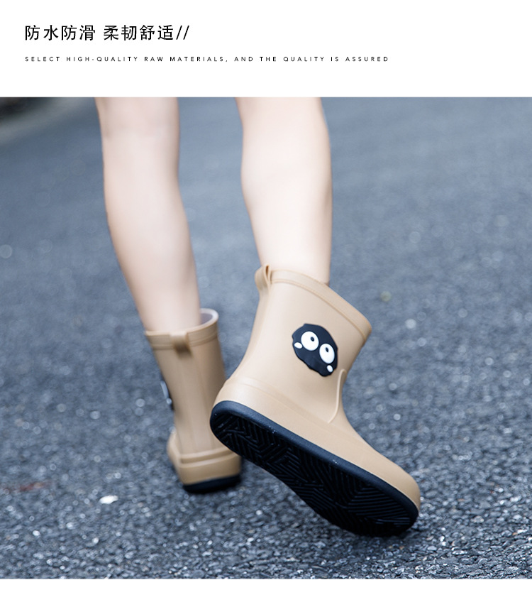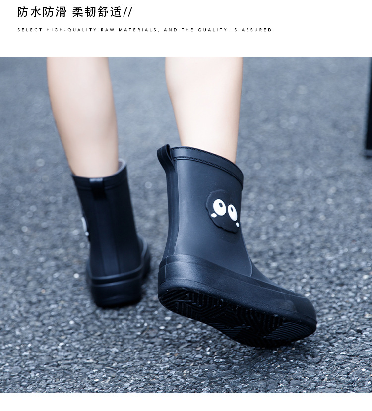 한국 스타일 2023 새로운 장화 여자의 귀여운 만화 미끄럼 방지 방수 신발 야외 기모 따뜻한 장화 야외 물 장화
