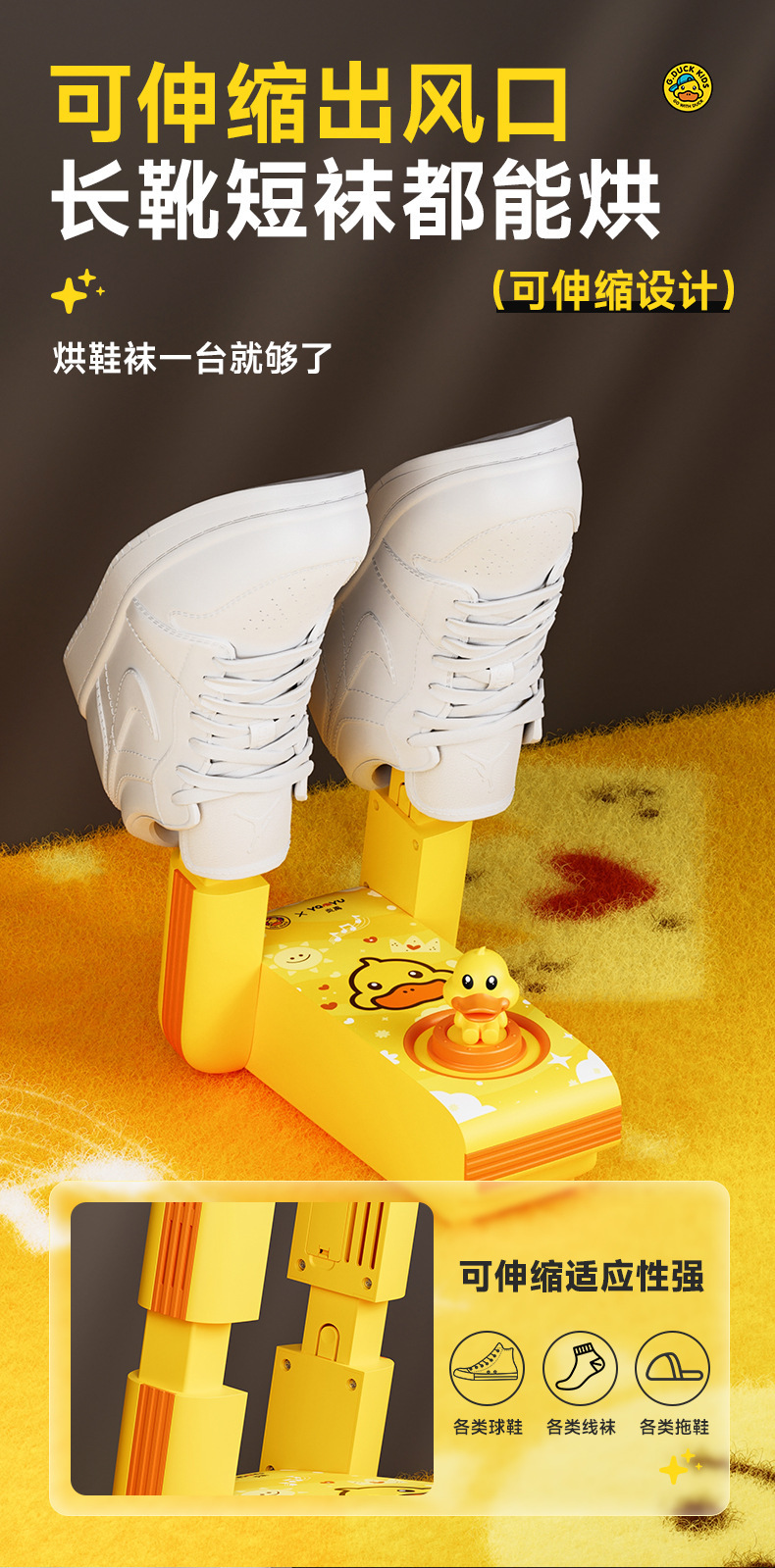 신발 건조기 작은 노란 오리 접이식 텔레스코픽 가정용 신발 건조기 건조기 살균 탈취 발 워머 신발 건조기