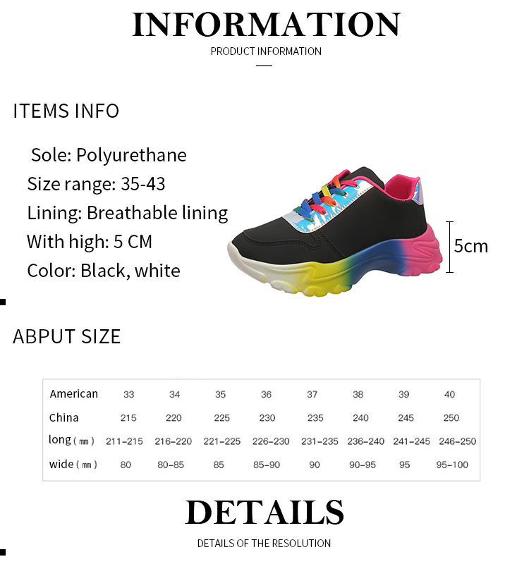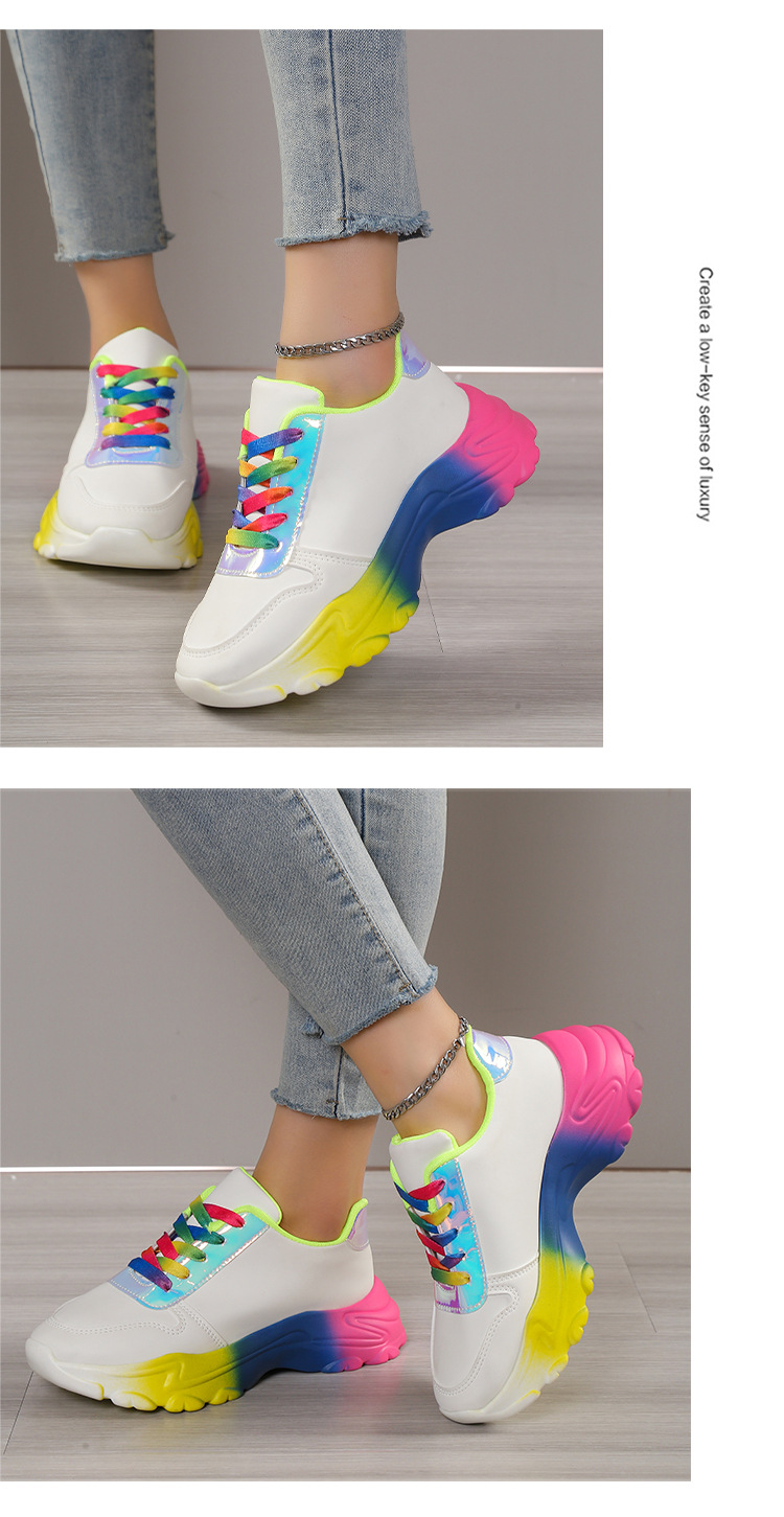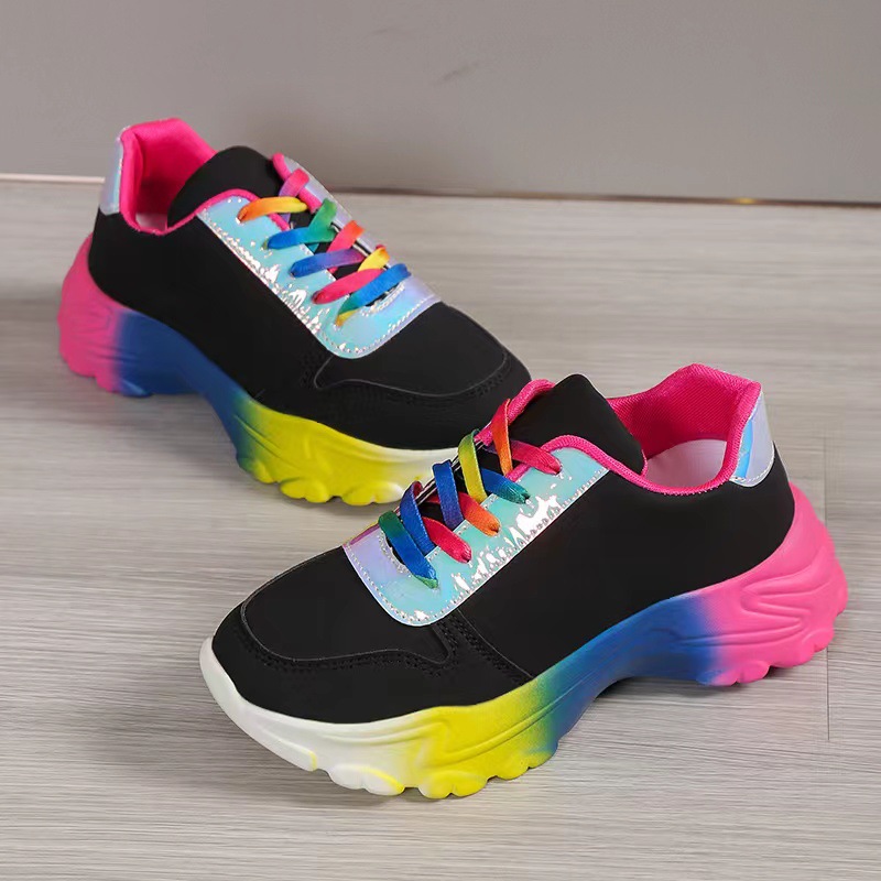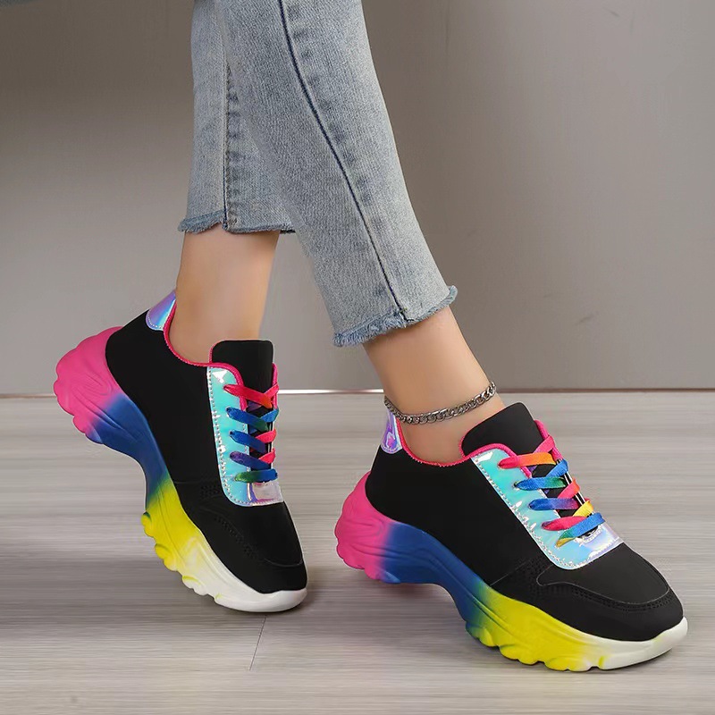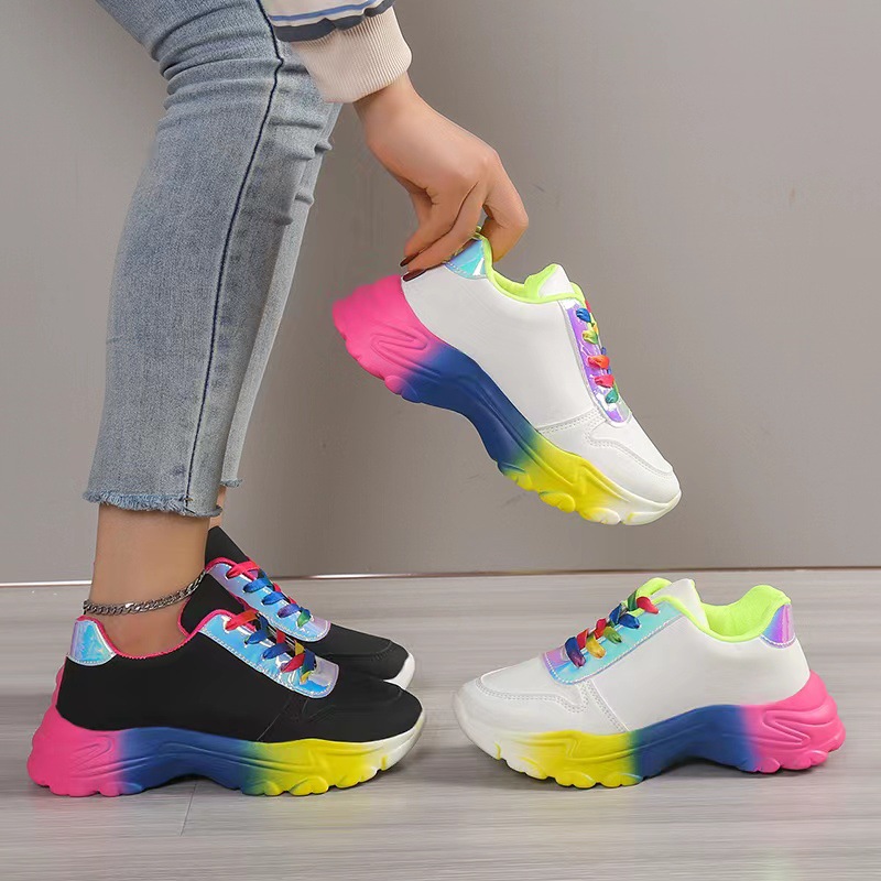 가을 새로운 색상 일치 토레 신발 여성의 대외 무역 플러스 사이즈 레인보우 솔 운동화 실행 여성 신발 트렌디 한 재고 신발