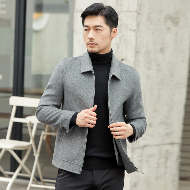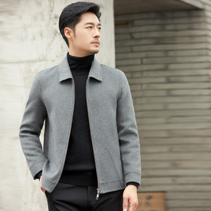 2024 가을 겨울 신상 양면 울 코트 남성용 지퍼 재킷 중년 비즈니스 짧은 스타일 라펠 모직 재킷