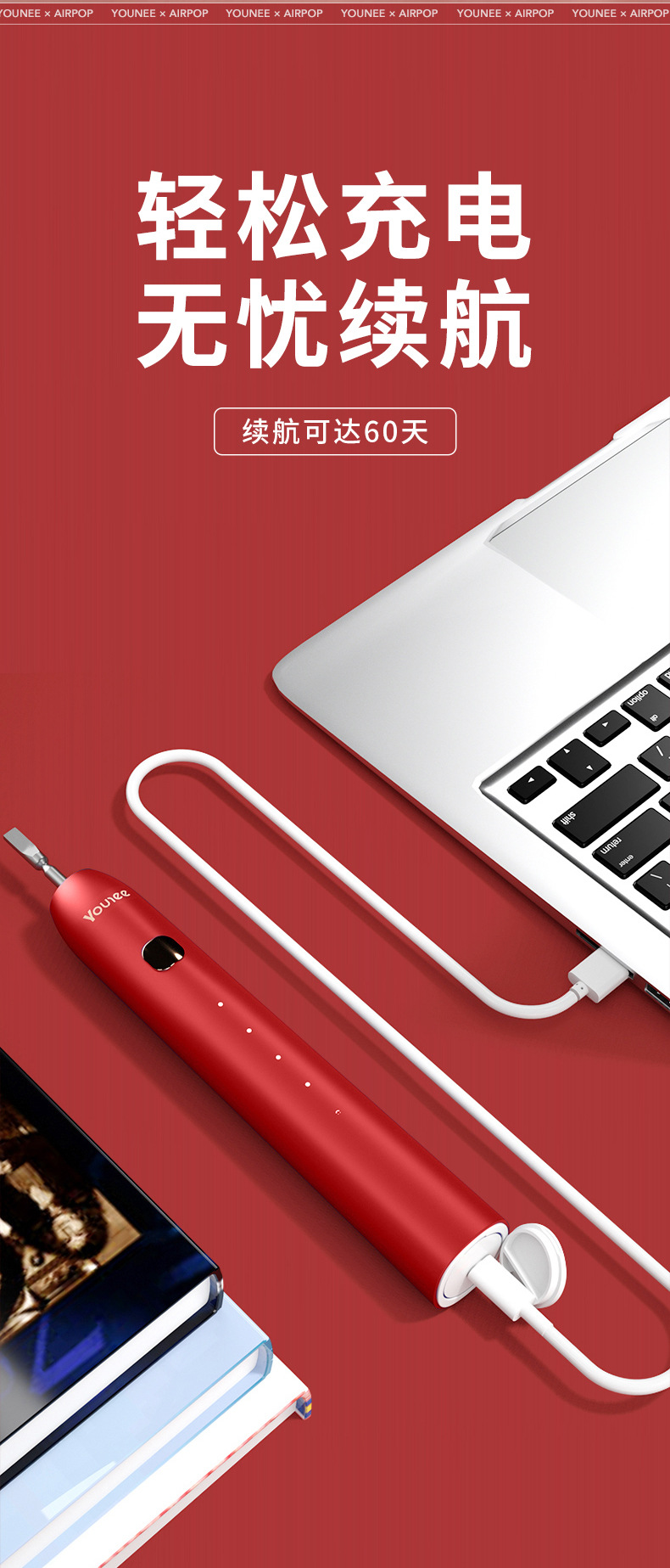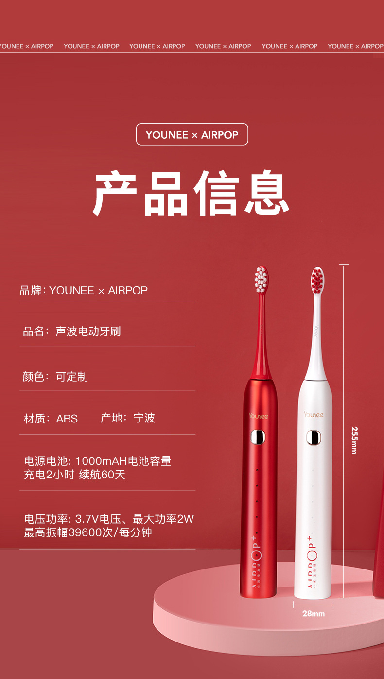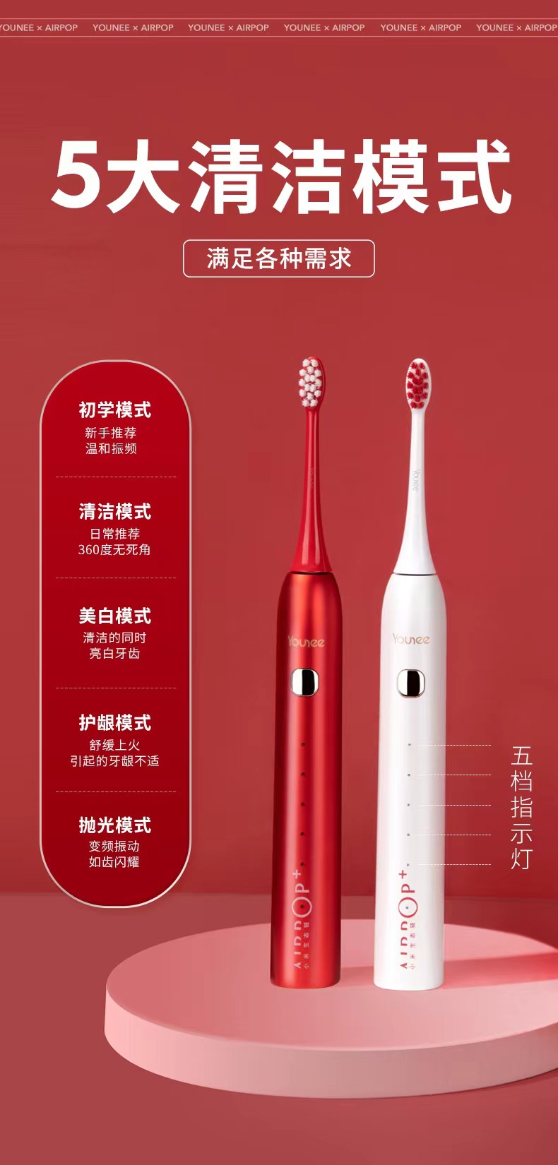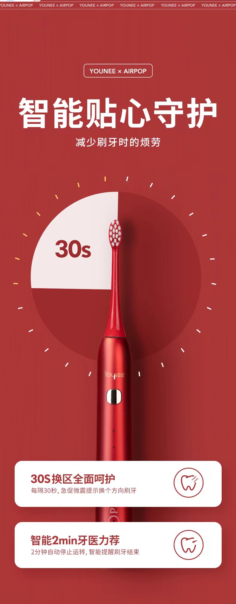 청소년 에어팝 생태 체인 커플 전동 칫솔 멀티 기어 조절 자기 서스펜션 전동 칫솔