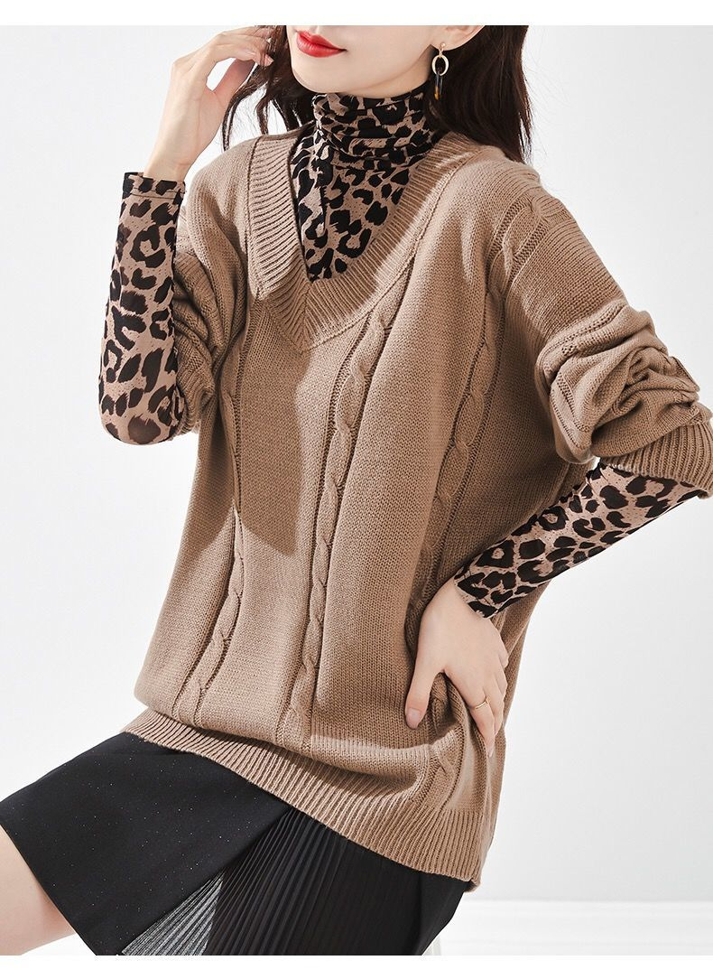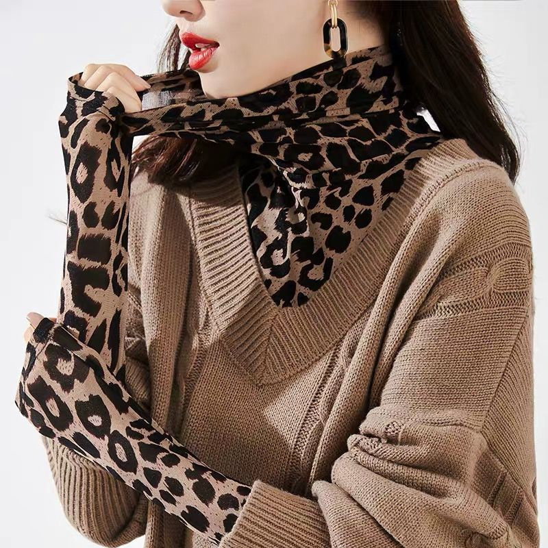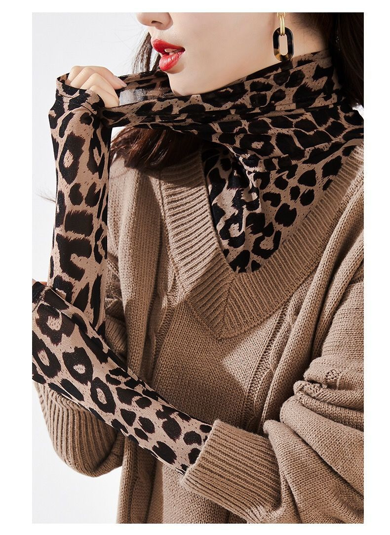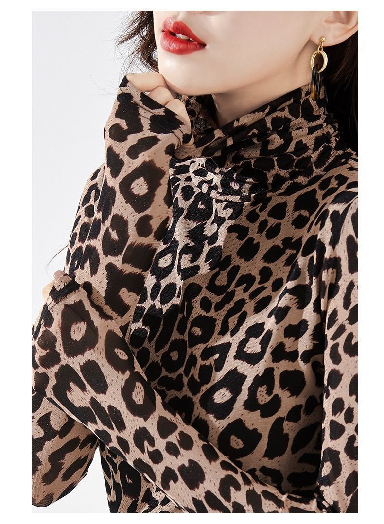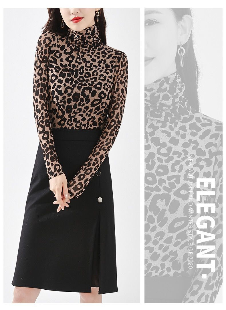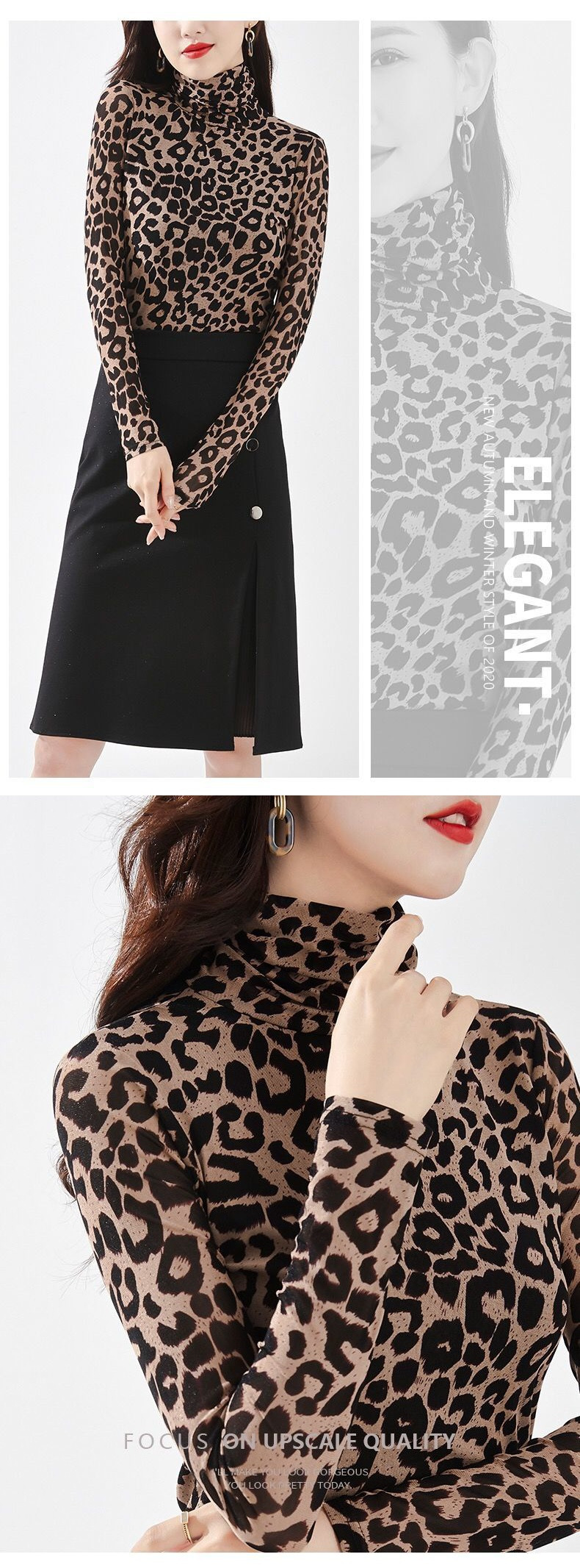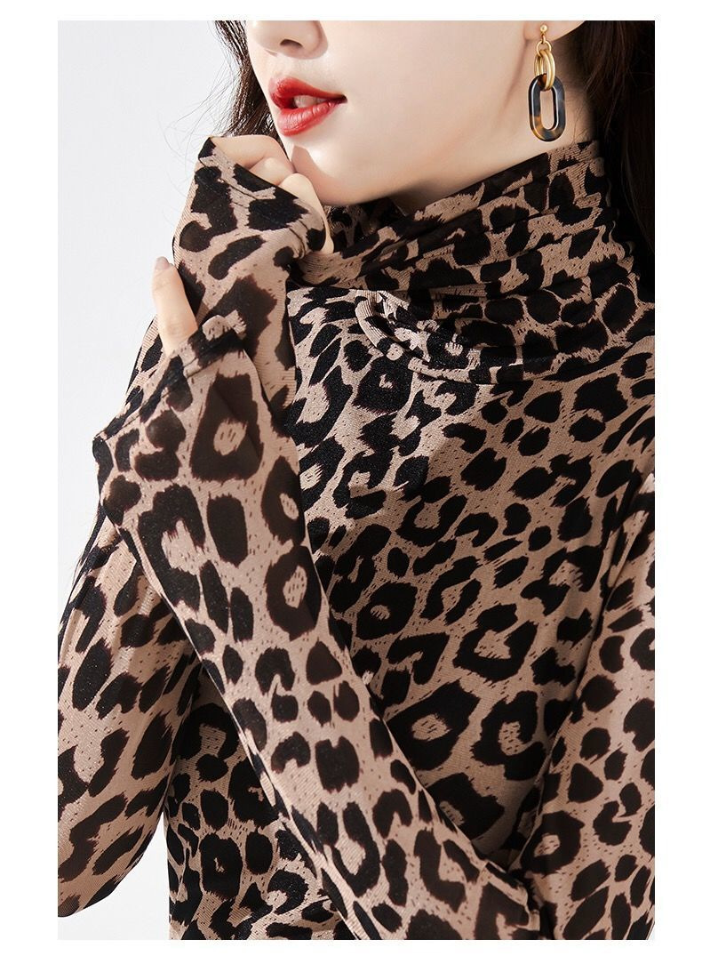하이 칼라 레오파드 무늬 메쉬 얇은 베이스 셔츠 여성의 2023 가을과 겨울 새로운 티셔츠 스타일 내부 탑 트렌디
