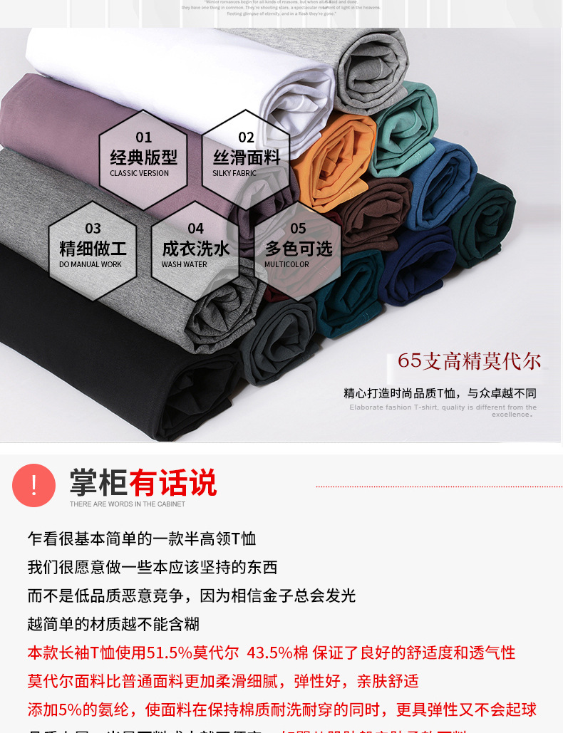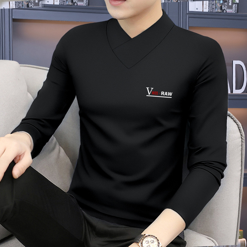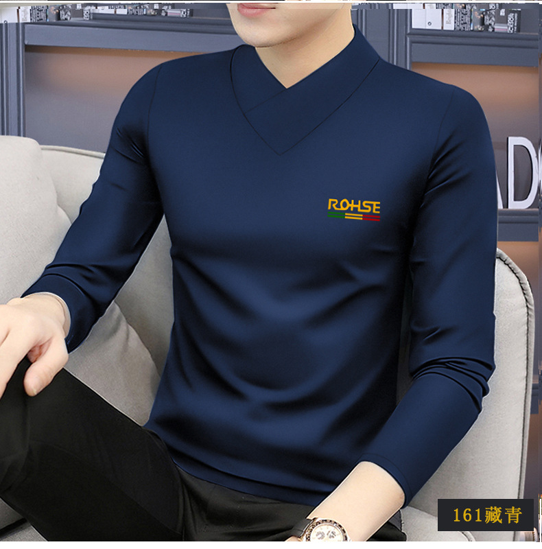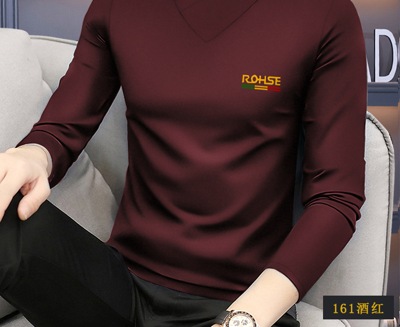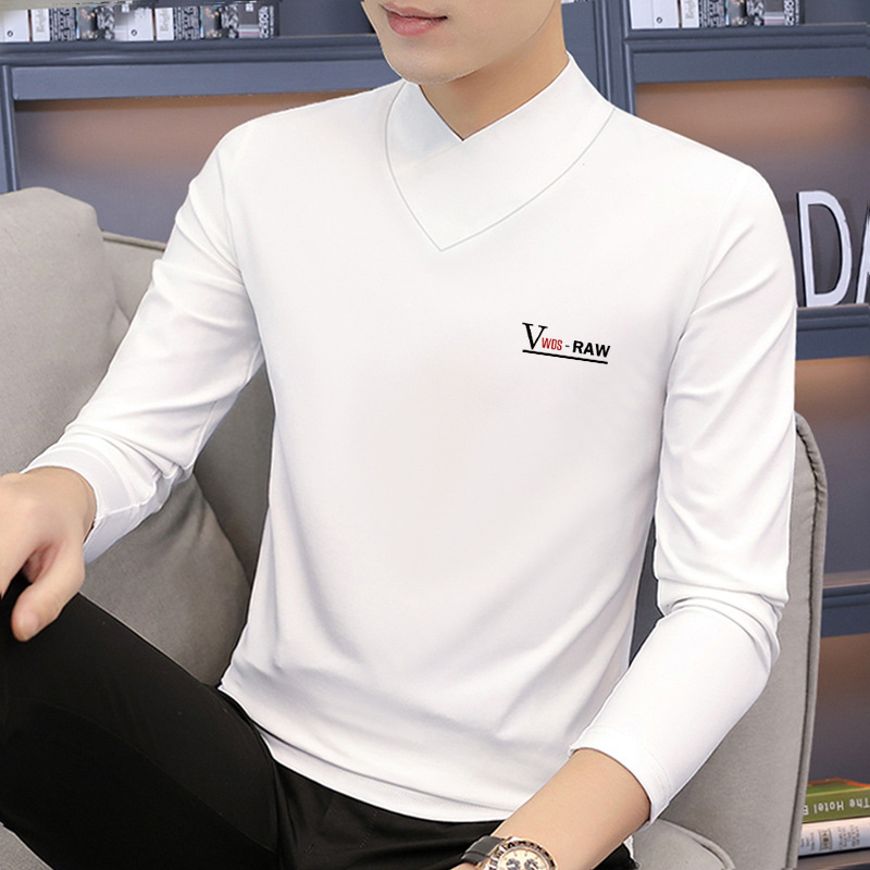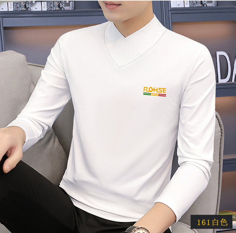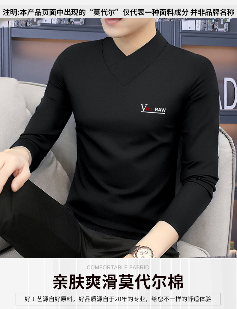 모달 긴팔 티셔츠 남성용 하프 하이 칼라 가을베이스 셔츠 가을 옷 남성용 탑 중간 칼라 면 순수 가을 옷