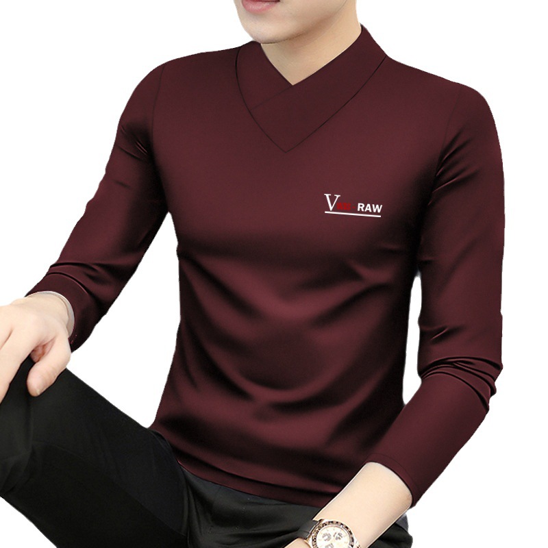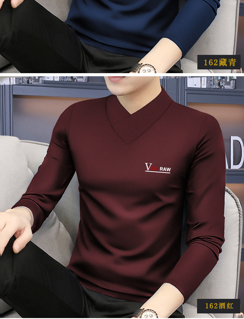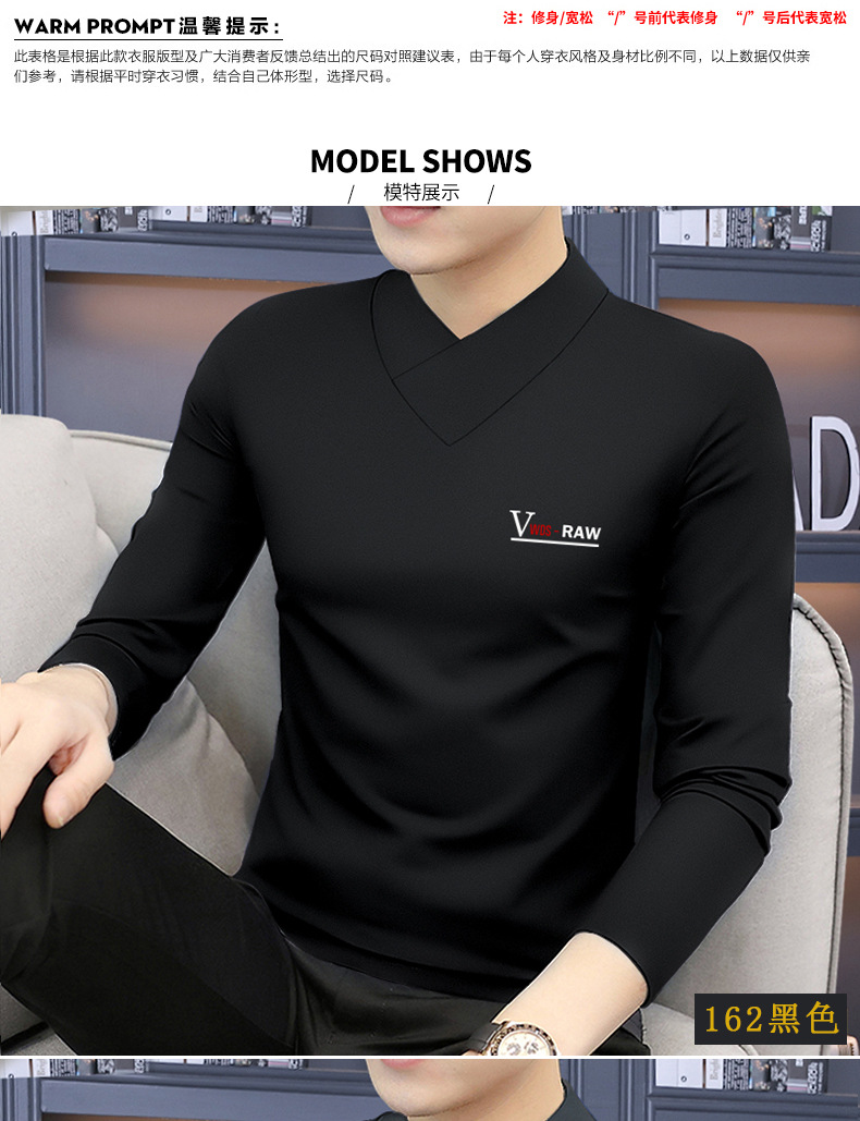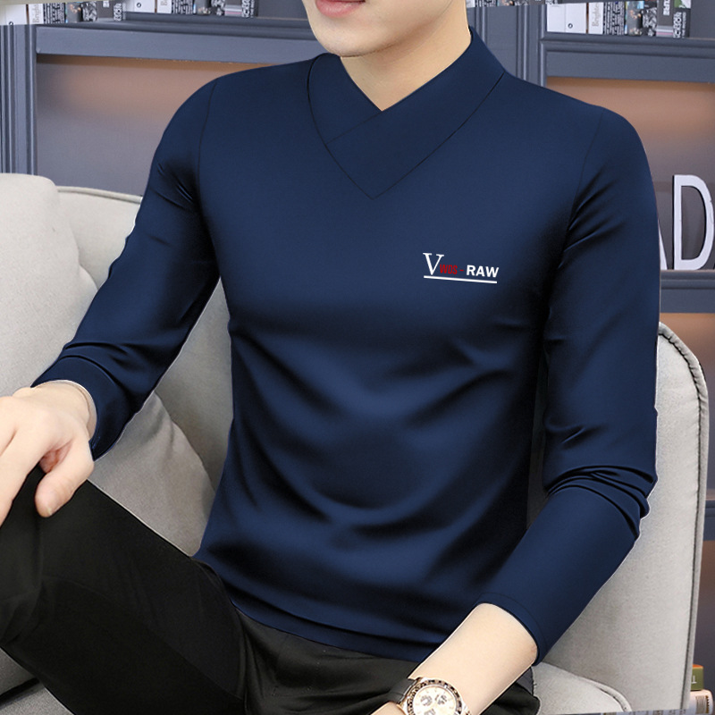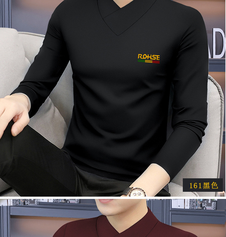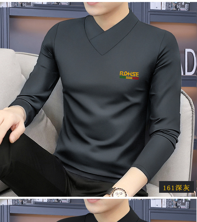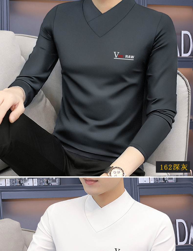 모달 긴팔 티셔츠 남성용 하프 하이 칼라 가을베이스 셔츠 가을 옷 남성용 탑 중간 칼라 면 순수 가을 옷