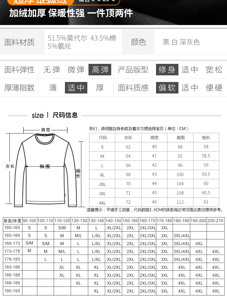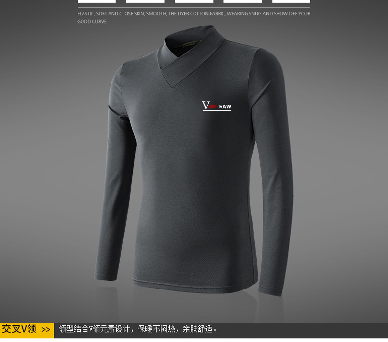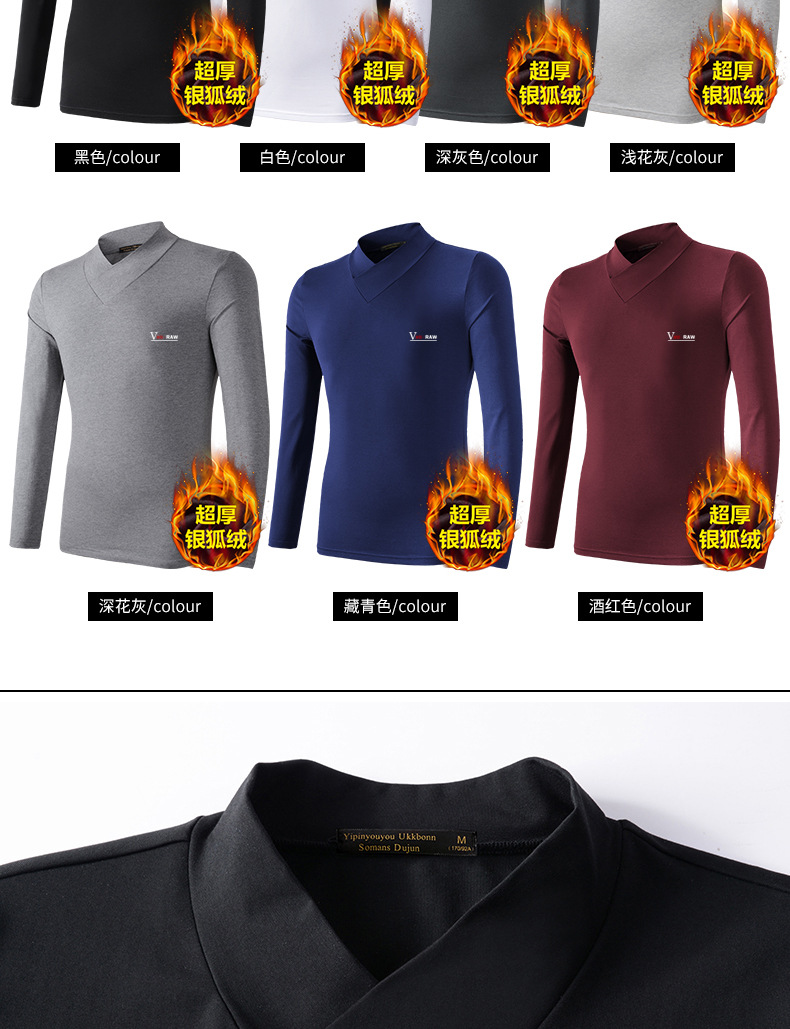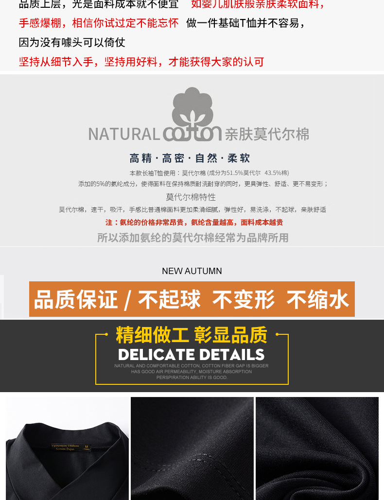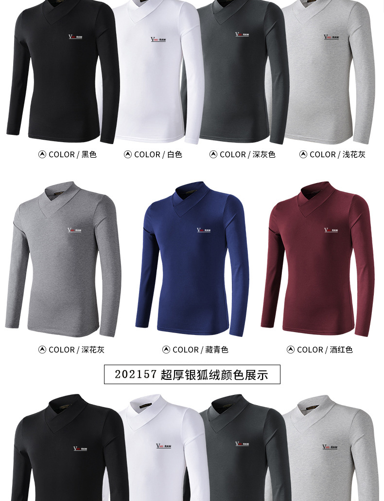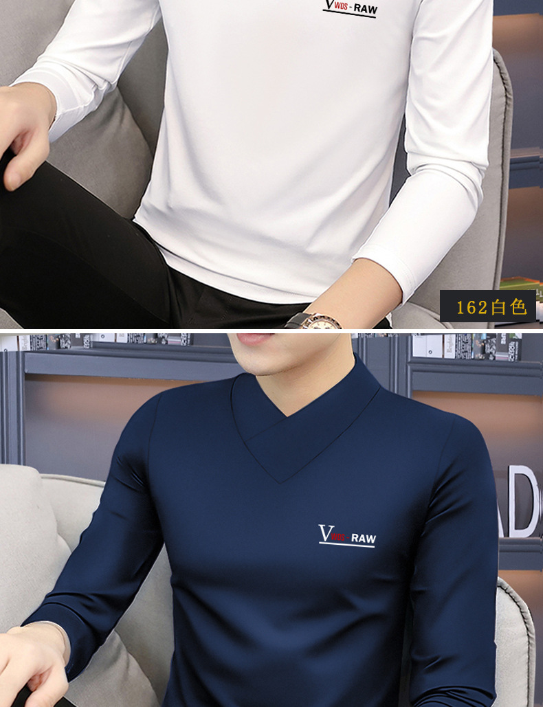 모달 긴팔 티셔츠 남성용 하프 하이 칼라 가을베이스 셔츠 가을 옷 남성용 탑 중간 칼라 면 순수 가을 옷