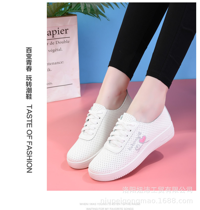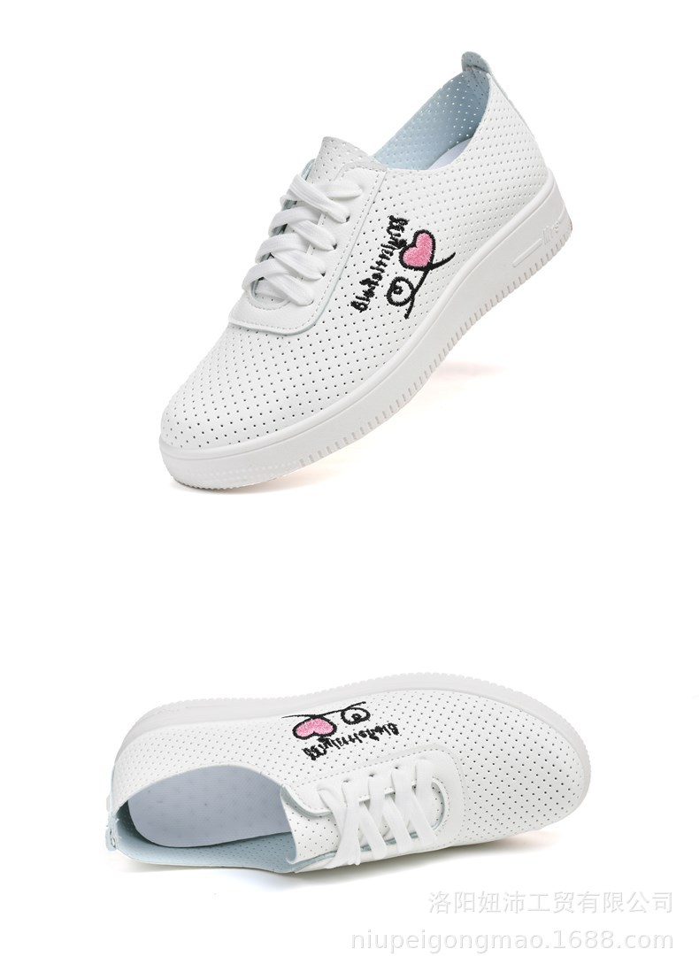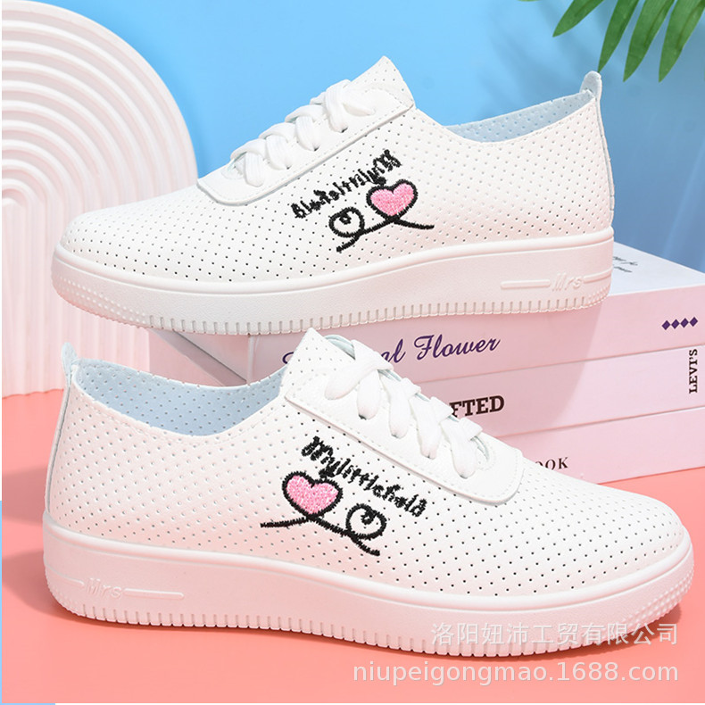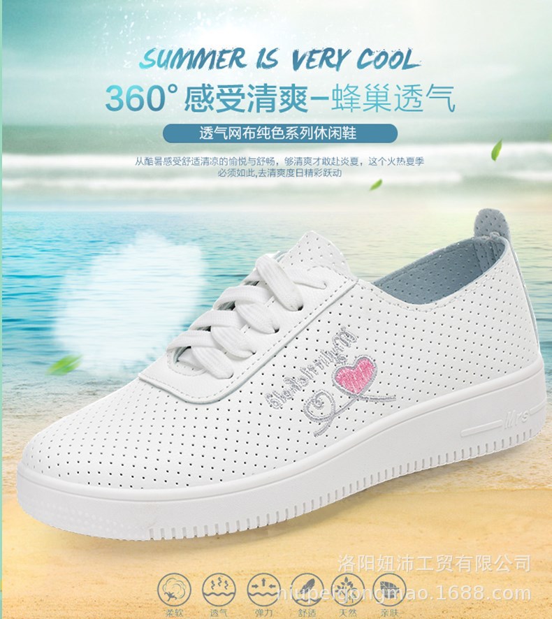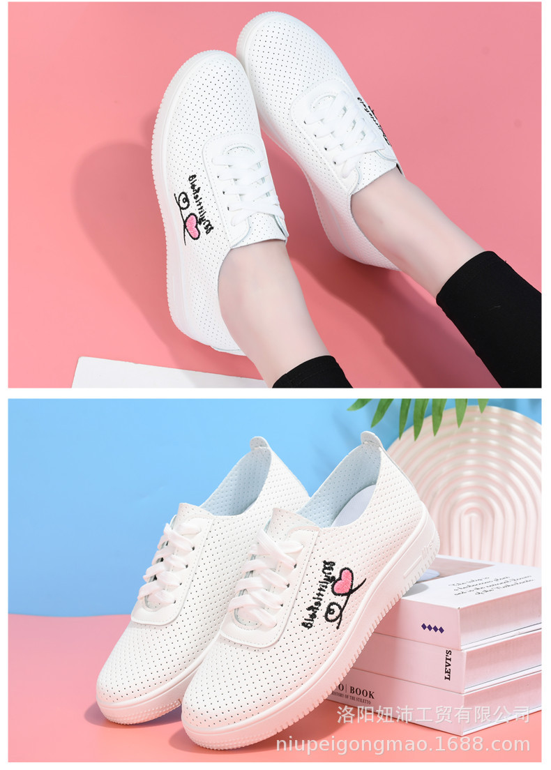 흰색 신발 여성용 봄과 여름 통기성 중공 메쉬 신발 부드러운 단독 경량 한국식 모든 일치 학교 신발 운동화