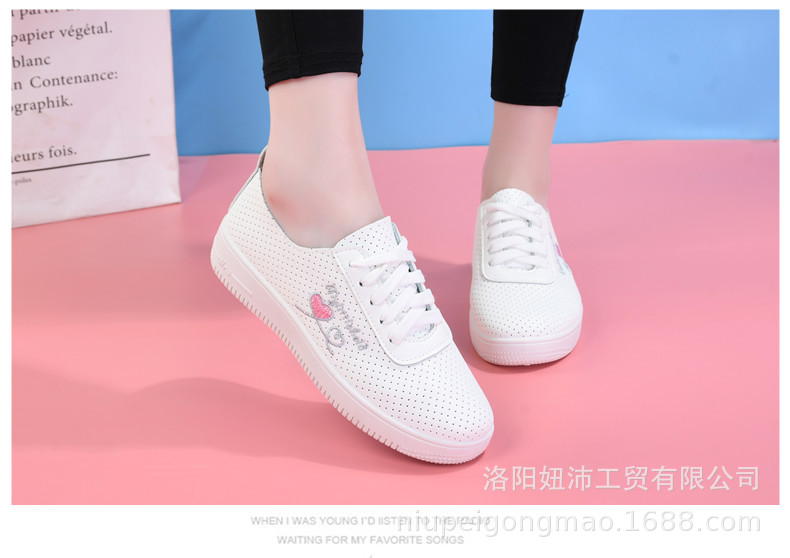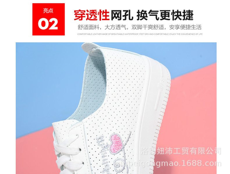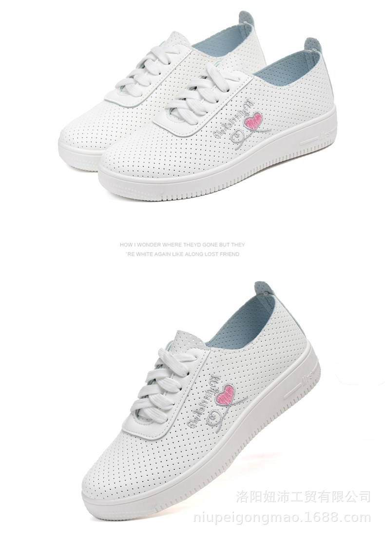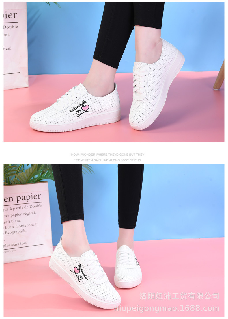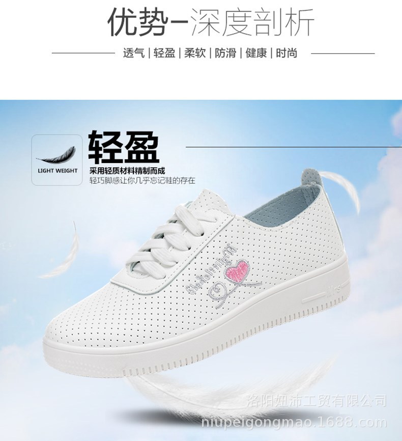흰색 신발 여성용 봄과 여름 통기성 중공 메쉬 신발 부드러운 단독 경량 한국식 모든 일치 학교 신발 운동화