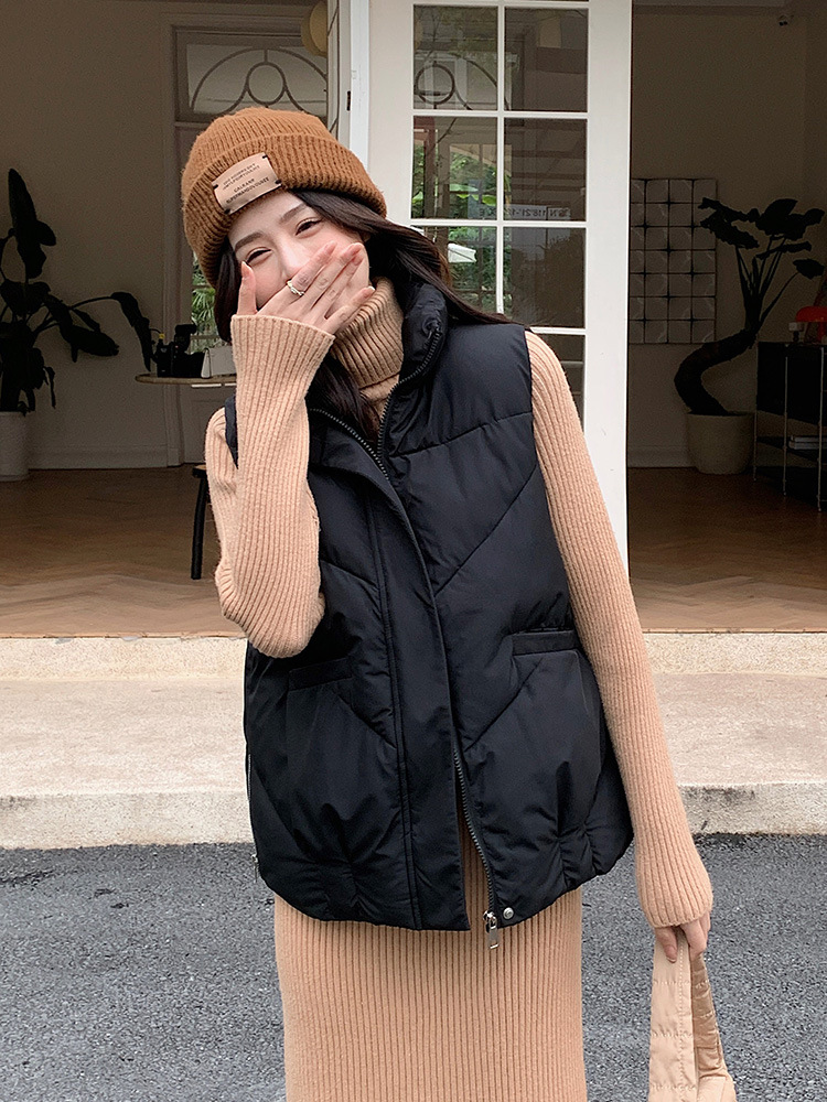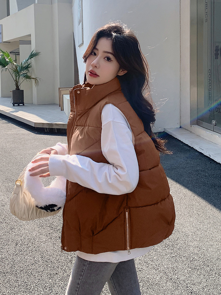 다운 코튼 조끼 여성 겨울 짧은 스타일 가을, 겨울 느슨한 겉옷 스탠드 칼라 조끼 양복 조끼 조끼 따뜻한 재킷 유행