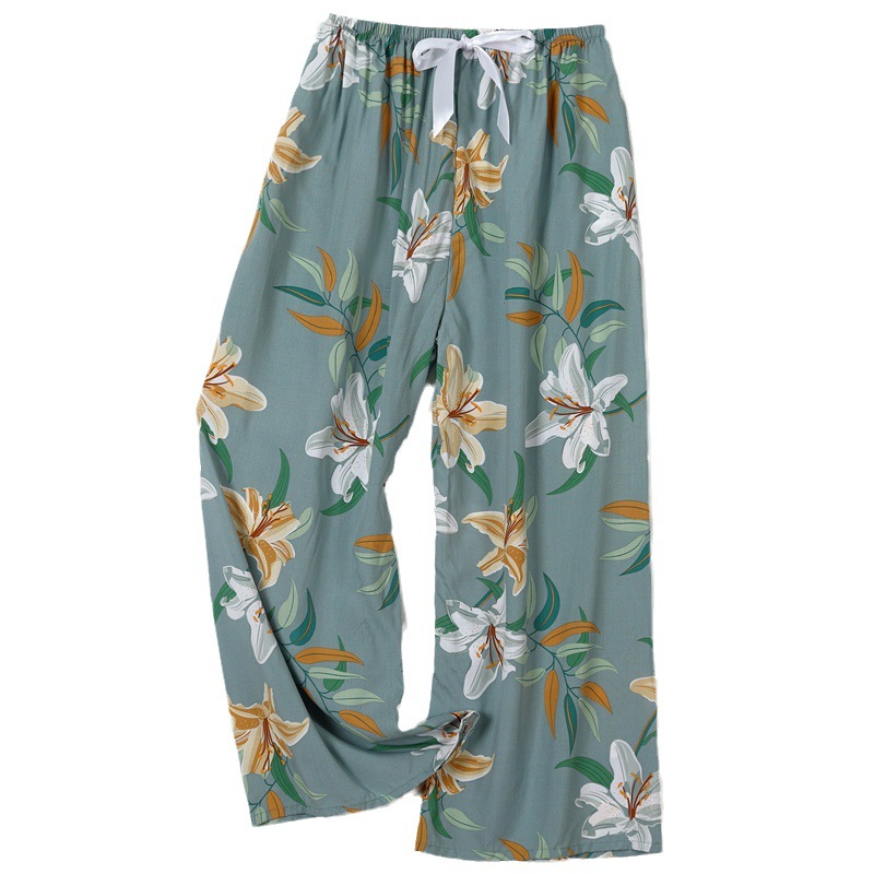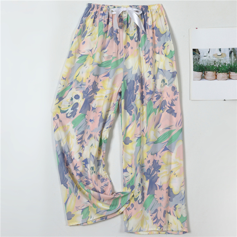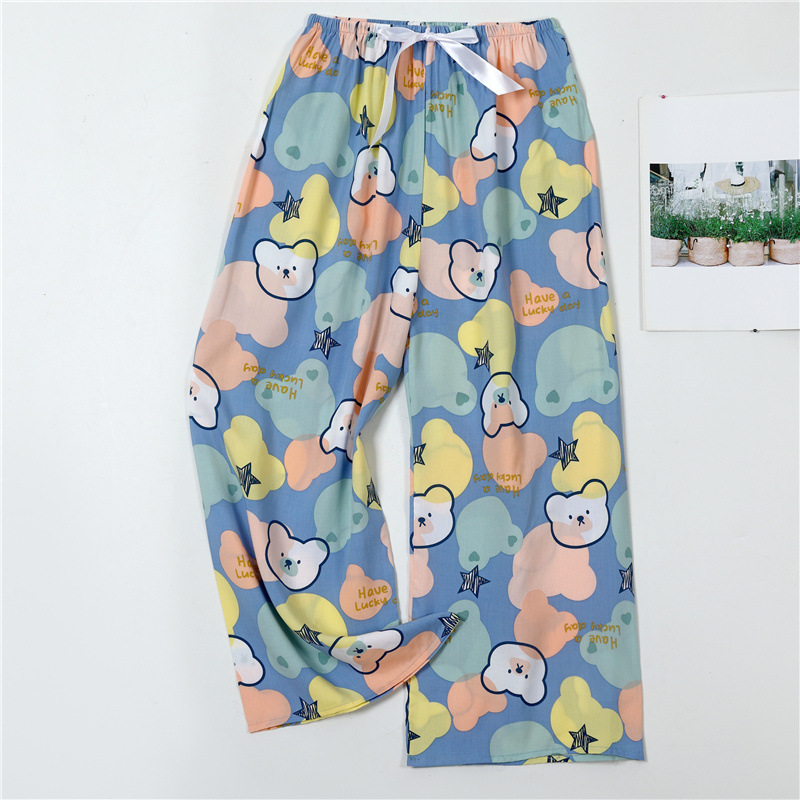새로운 면 실크 파자마 바지 여성의 봄과 여름 얇은 만화 인쇄 바지 아웃웨어 봄과 가을 느슨한 플러스 사이즈 와이드 팬츠