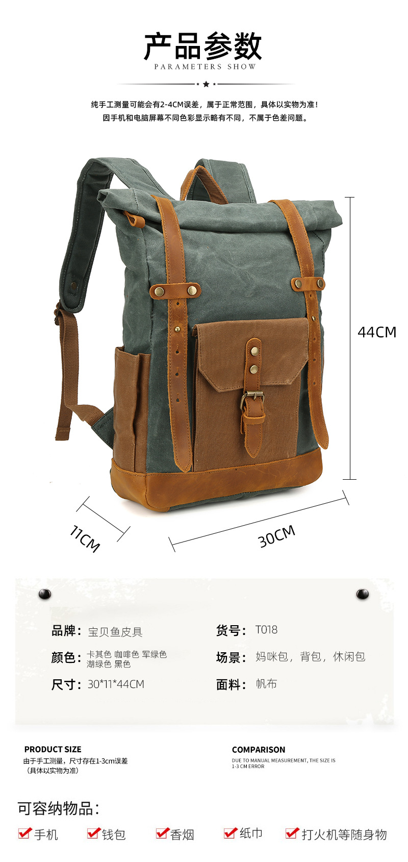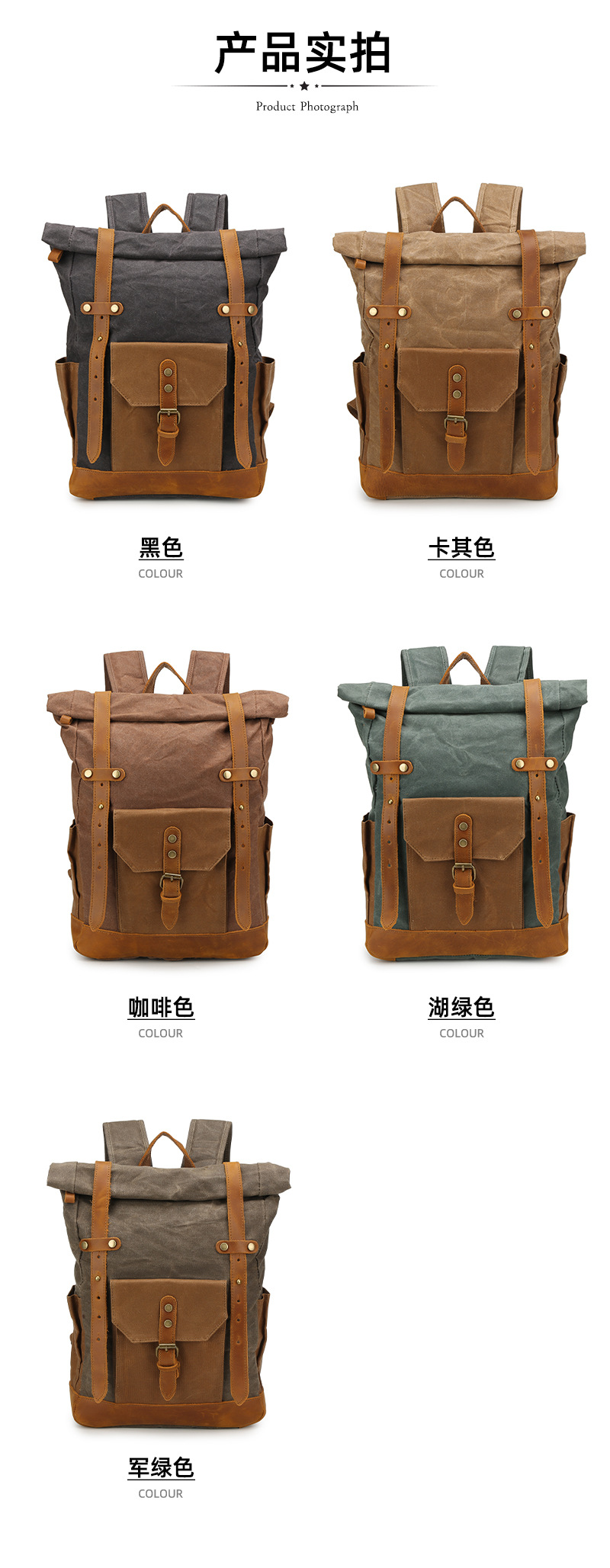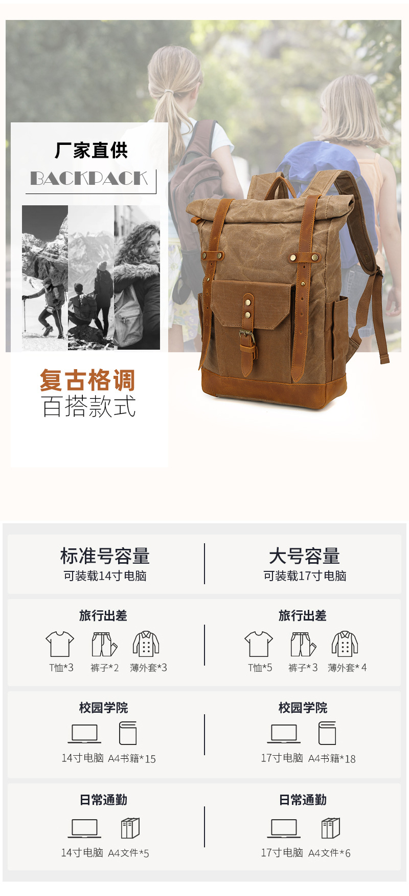 후추 소금 배낭 빈티지 야외 여행 배낭 미친 말 가죽 대용량 배낭 가방 왁스 캔버스 가방 재고